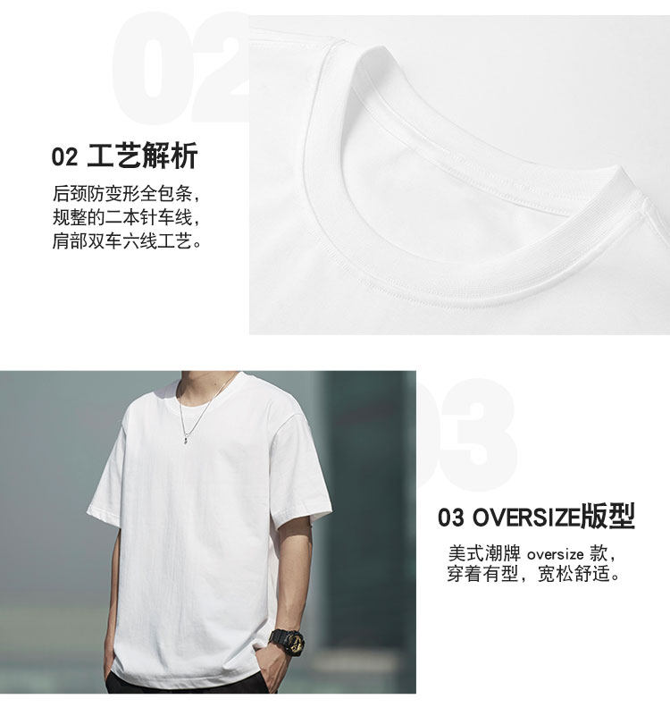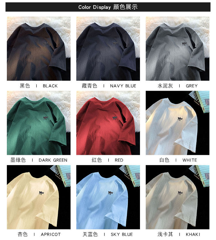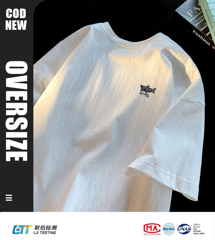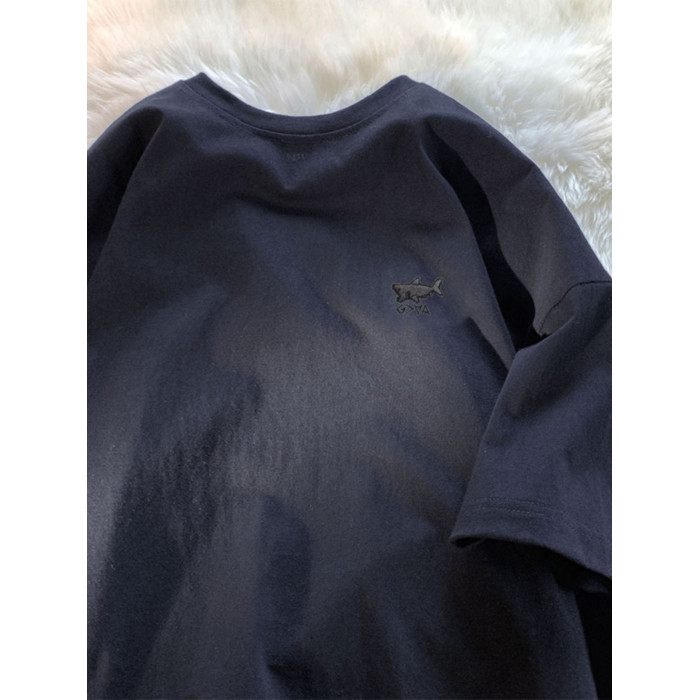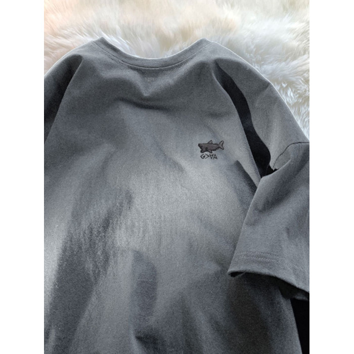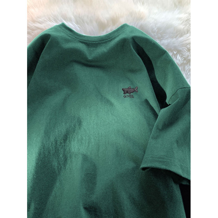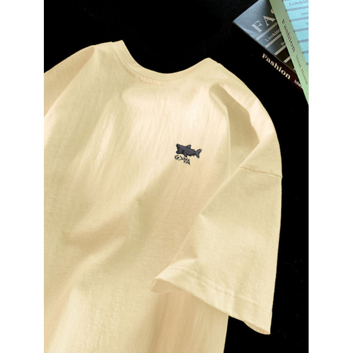刺綉重磅100%純棉短袖T恤男美式潮牌ins寬松體恤鯊魚綉花體恤上衣