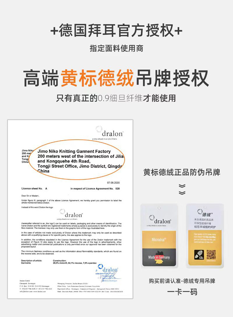 | 材質成分 | 再生纖維素纖維58.2% 棉19.9% 聚丙烯腈纖維(腈綸)16.6% 聚氨酯彈性纖維(氨綸)5.3% |