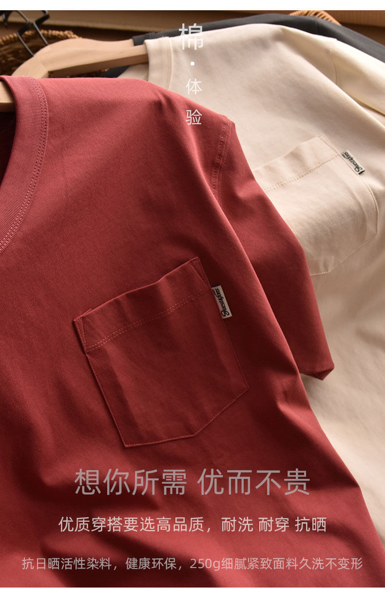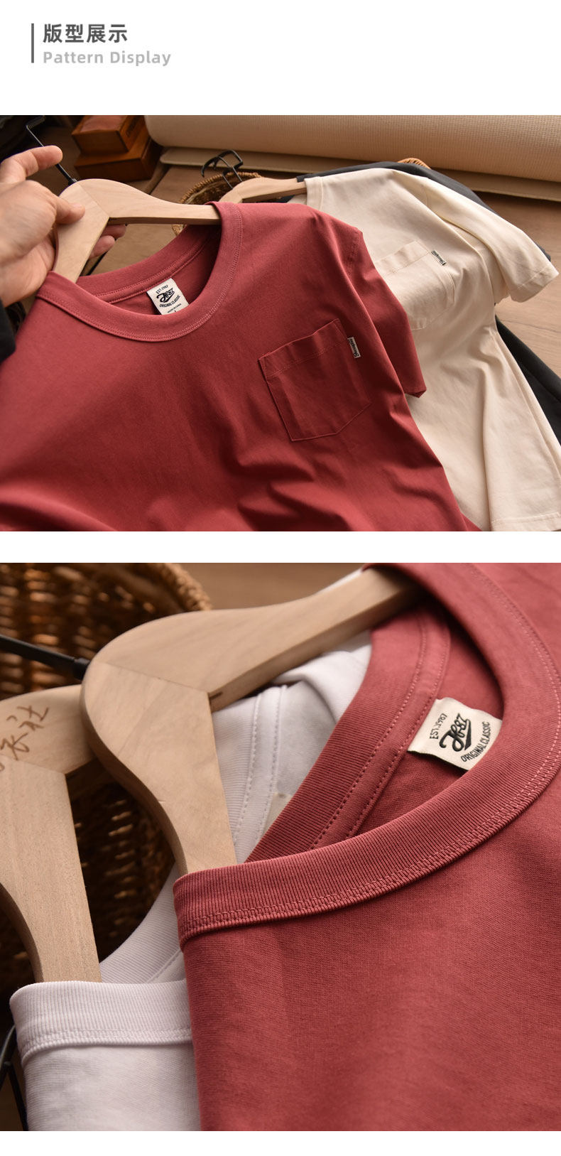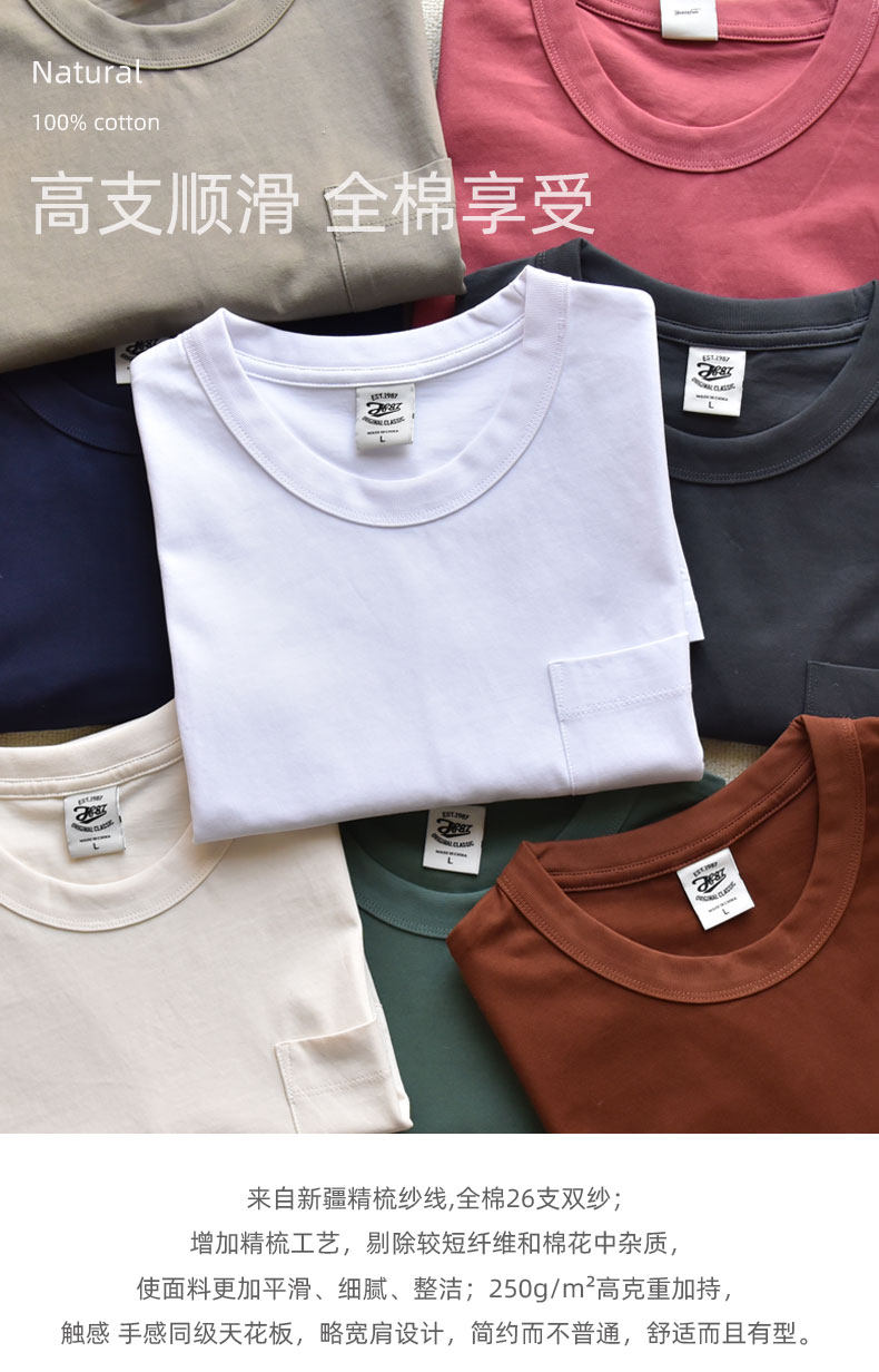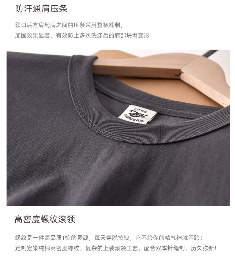 美式重磅250g基礎款高支純棉短袖T恤男純色圓領微濶肩寬松白色T