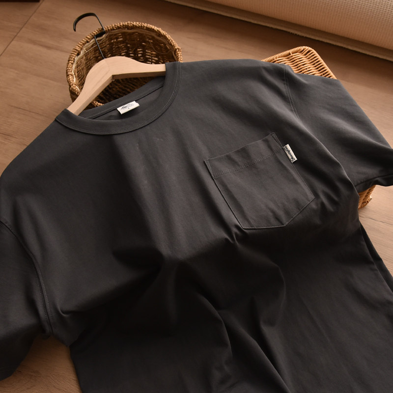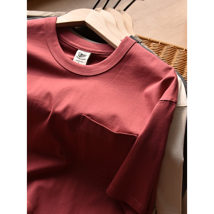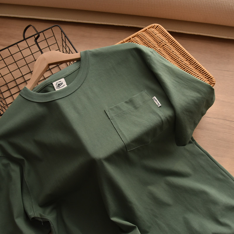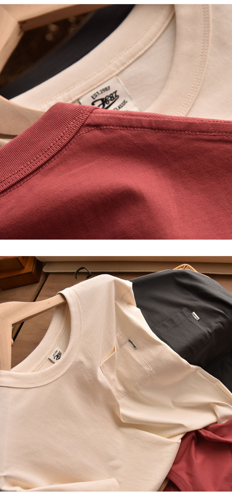 美式重磅250g基礎款高支純棉短袖T恤男純色圓領微濶肩寬松白色T
