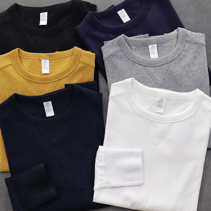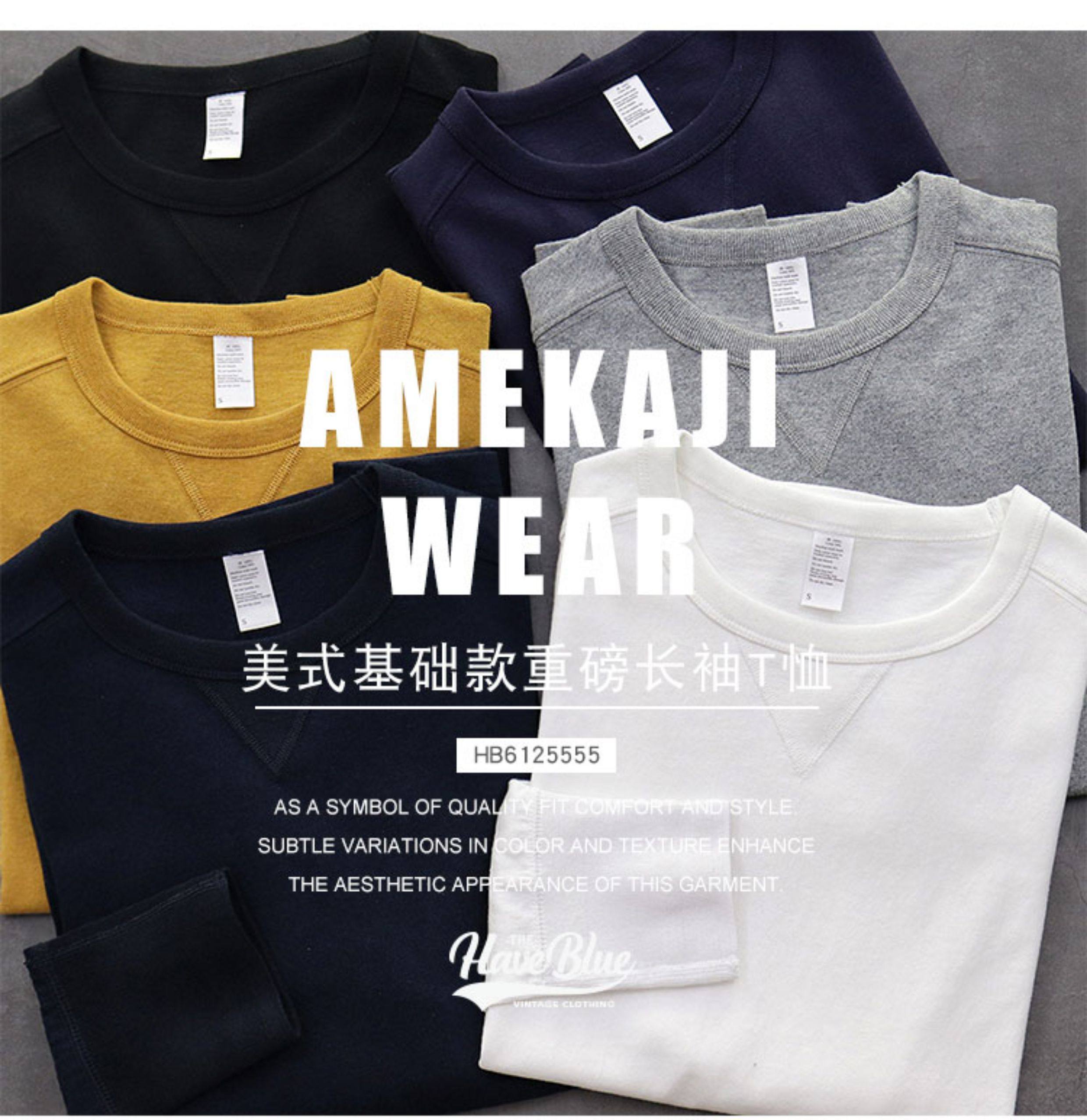 阿美哢嘰修身長袖T恤男280g美式復古休閒重磅打底衫厚實純棉TEE