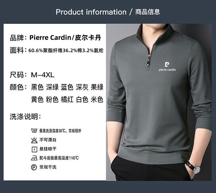 皮爾卡丹絲光棉立領衛衣男士春秋潮流休閒半拉鍊長袖T恤衫上衣男