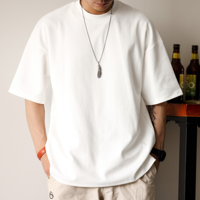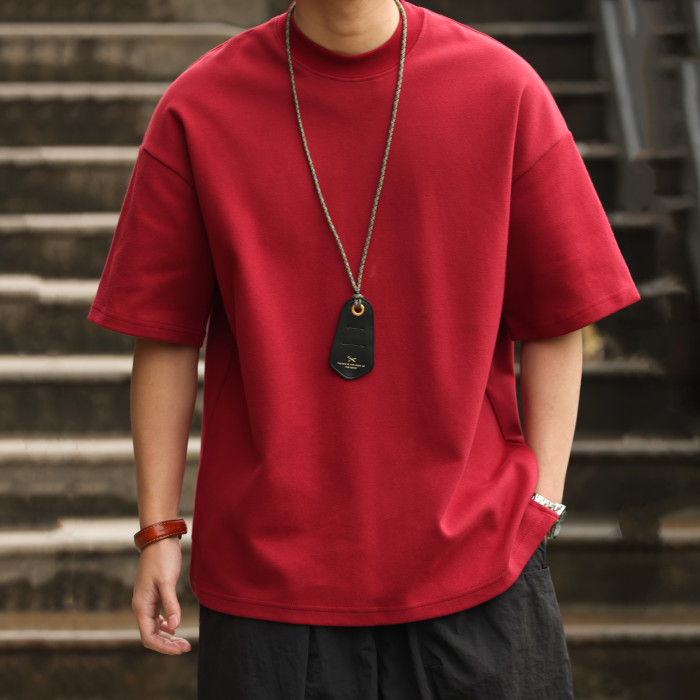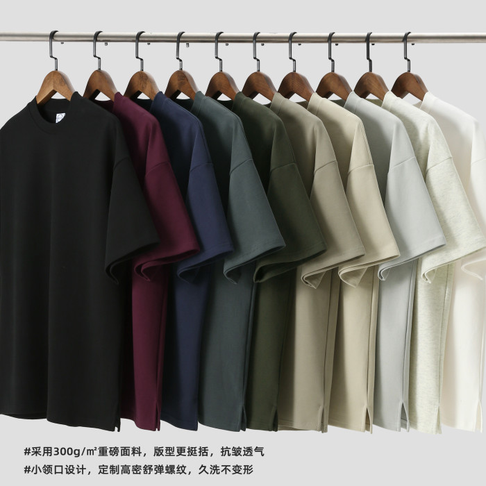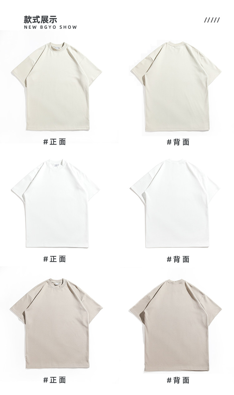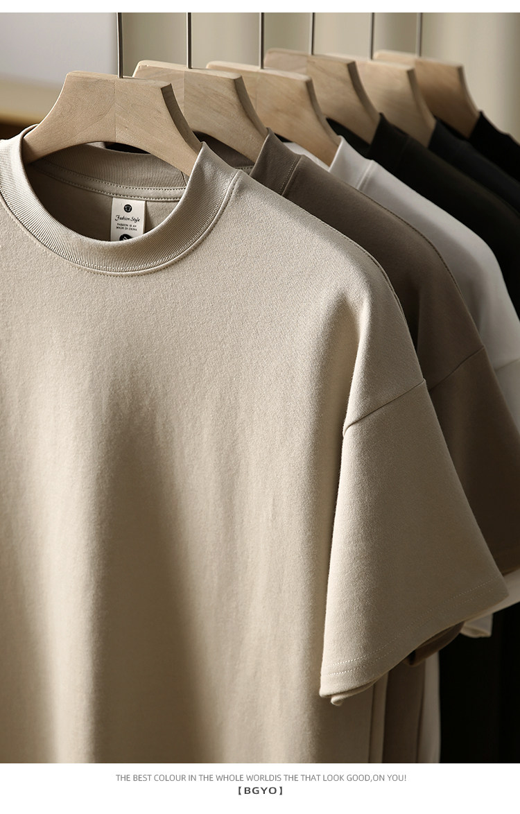 BGYO 美式300g重磅小領口短袖T恤男寬松夏季休閒純色抗皺大碼體恤