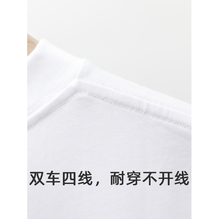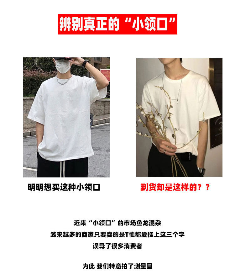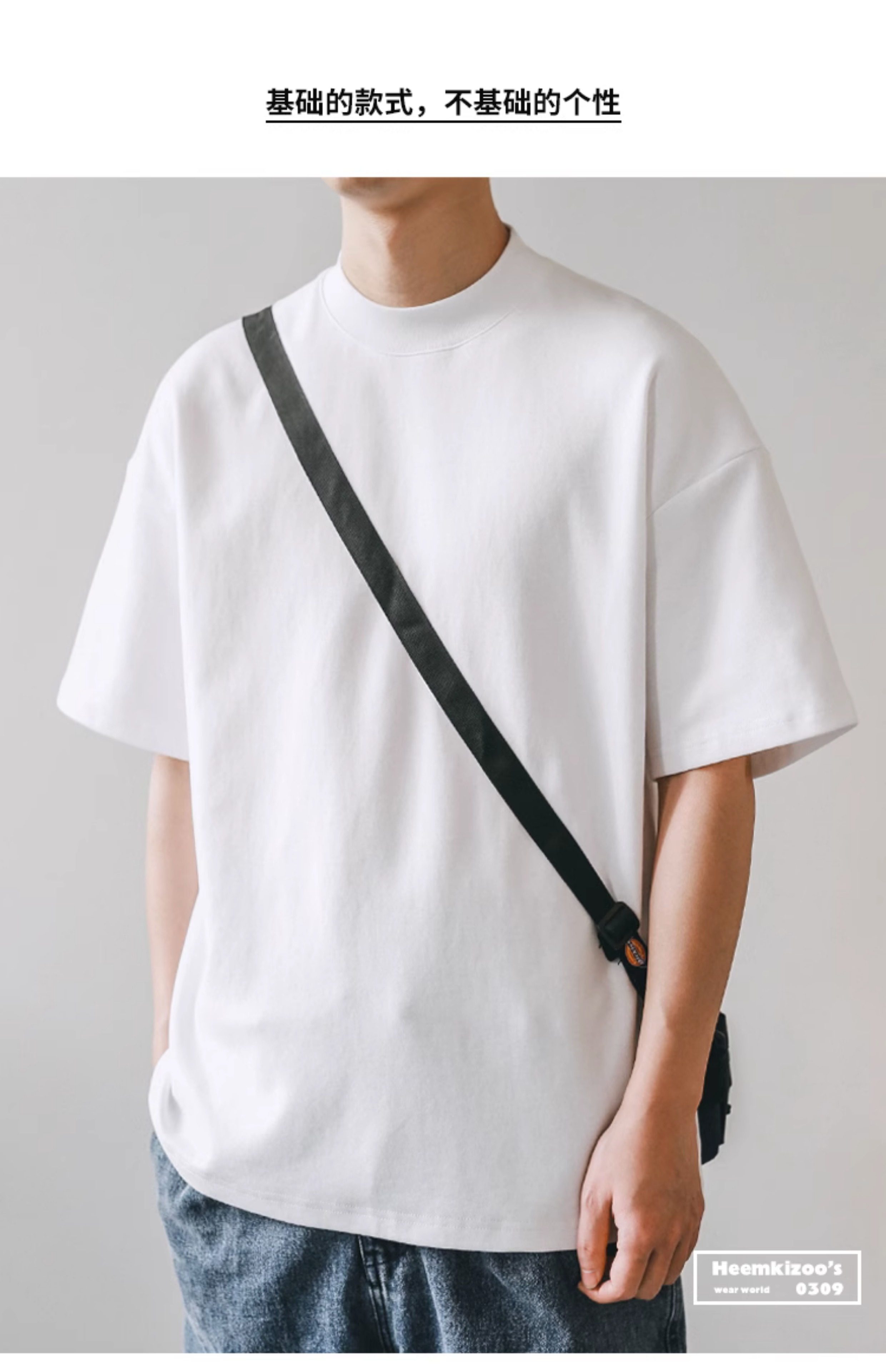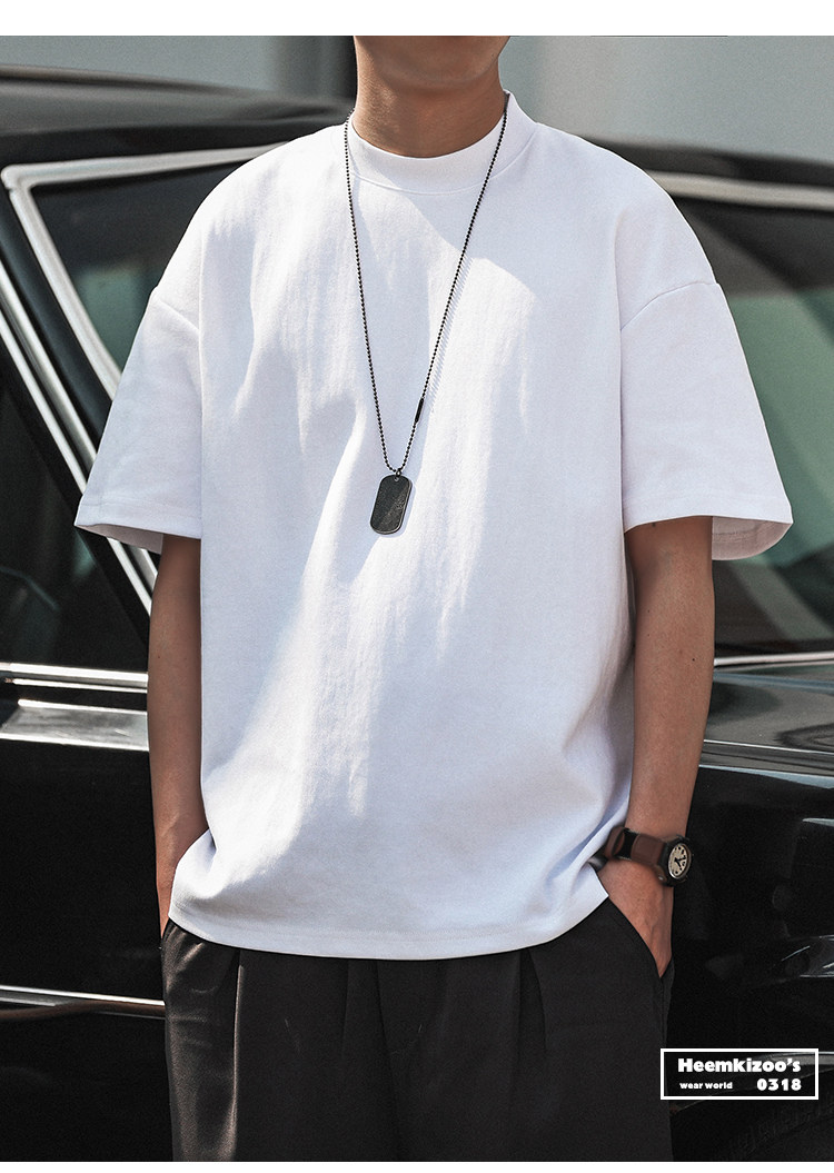 美式小領口 300g重磅純棉短袖T恤男寬鬆純白色內搭打底衫日系半袖