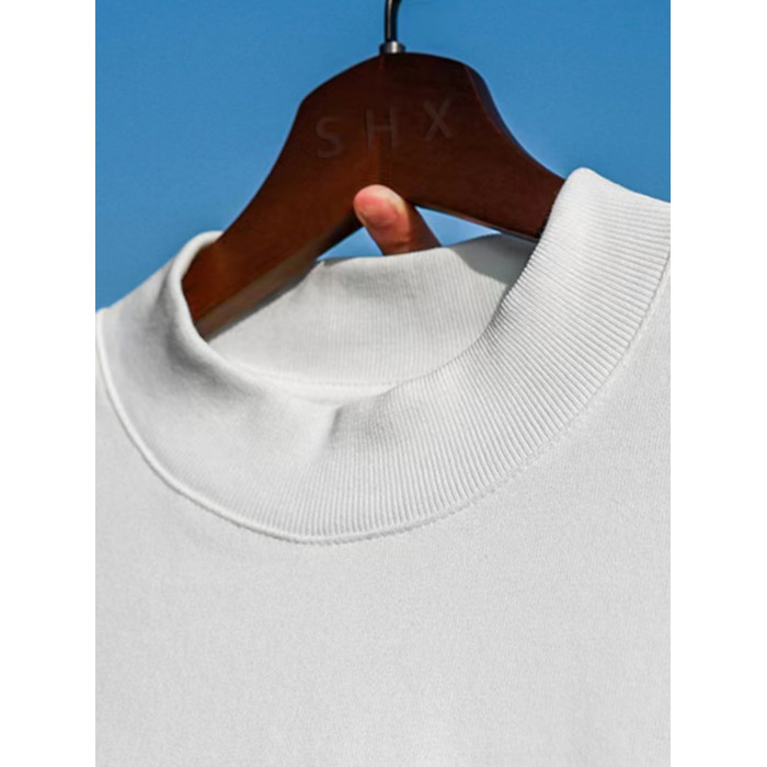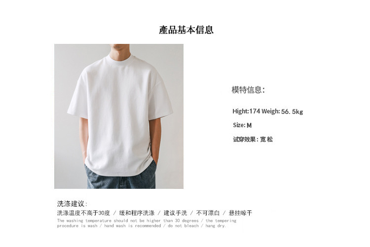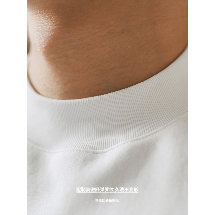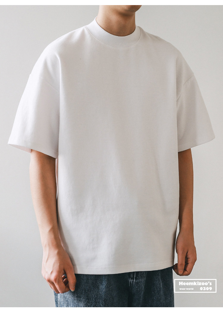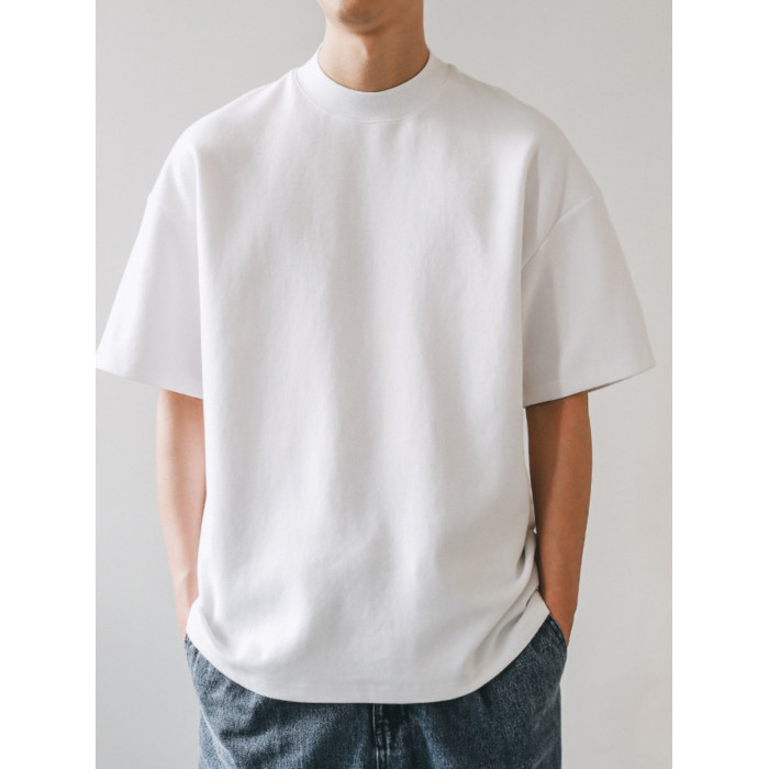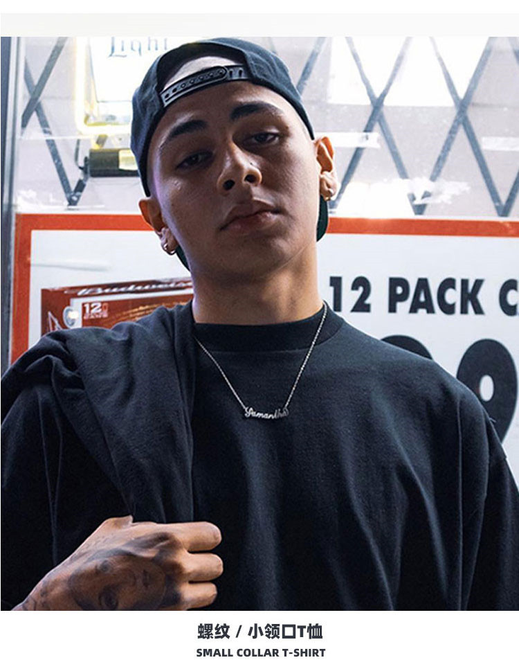 美式小領口 300g重磅純棉短袖T恤男寬鬆純白色內搭打底衫日系半袖