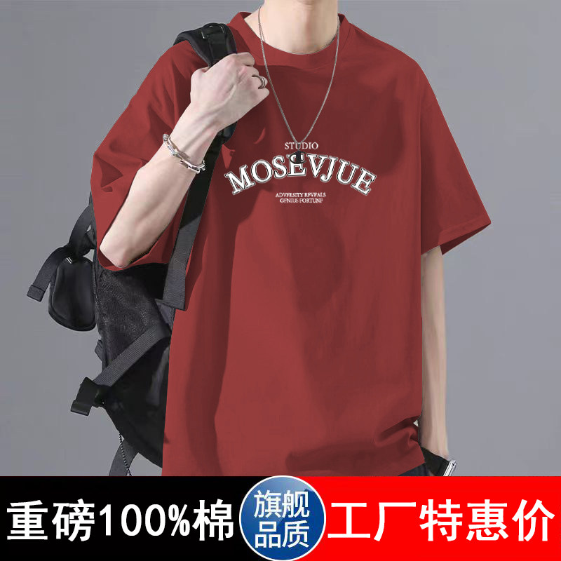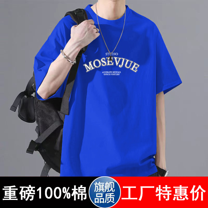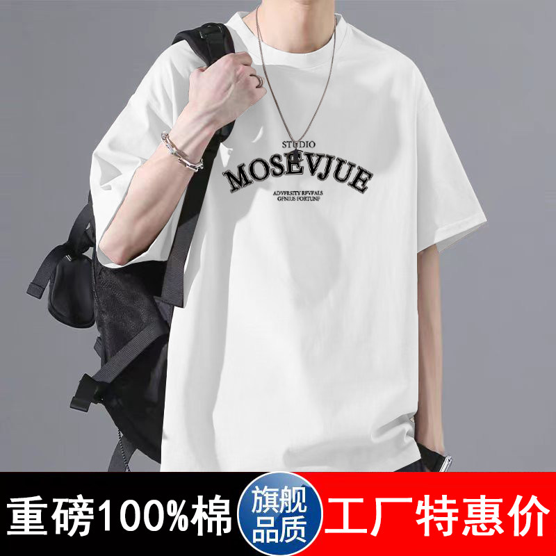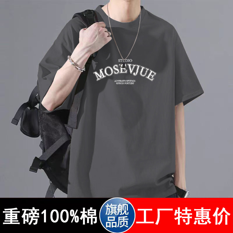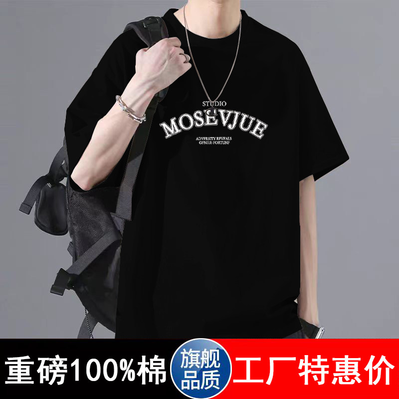100%純棉t恤男ins潮寬松高級感短袖體桖春夏季oversize半截袖上衣