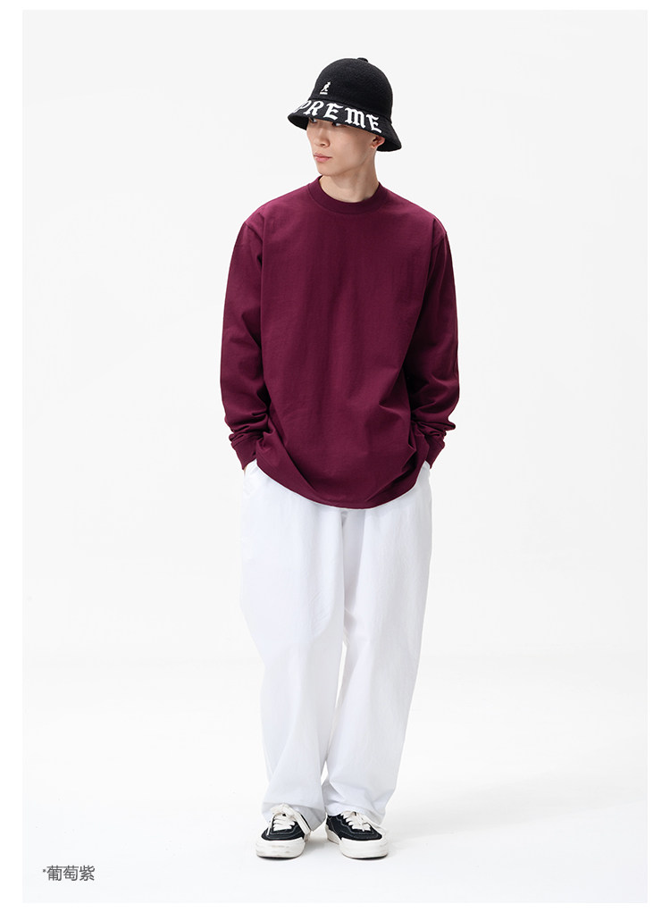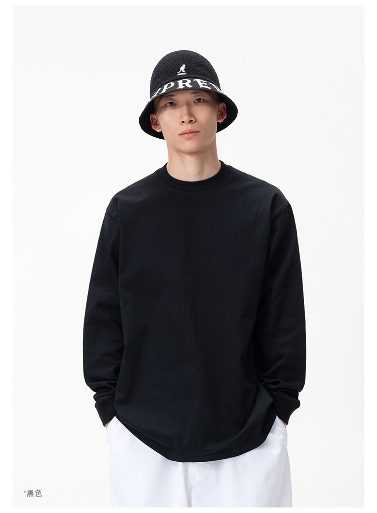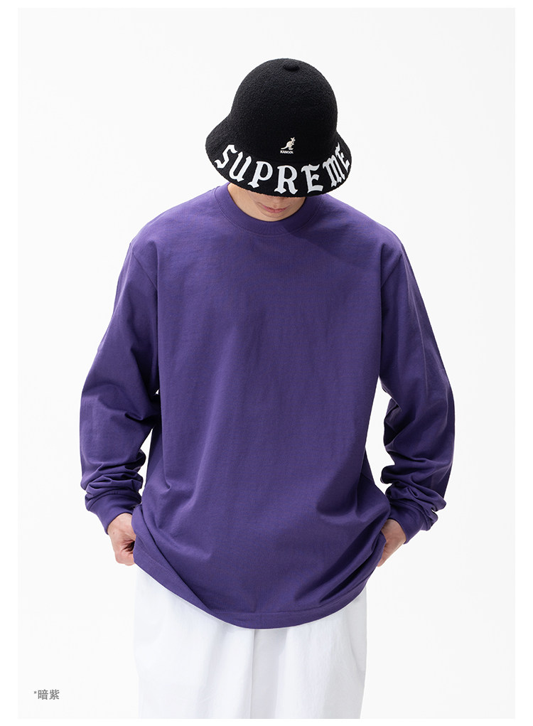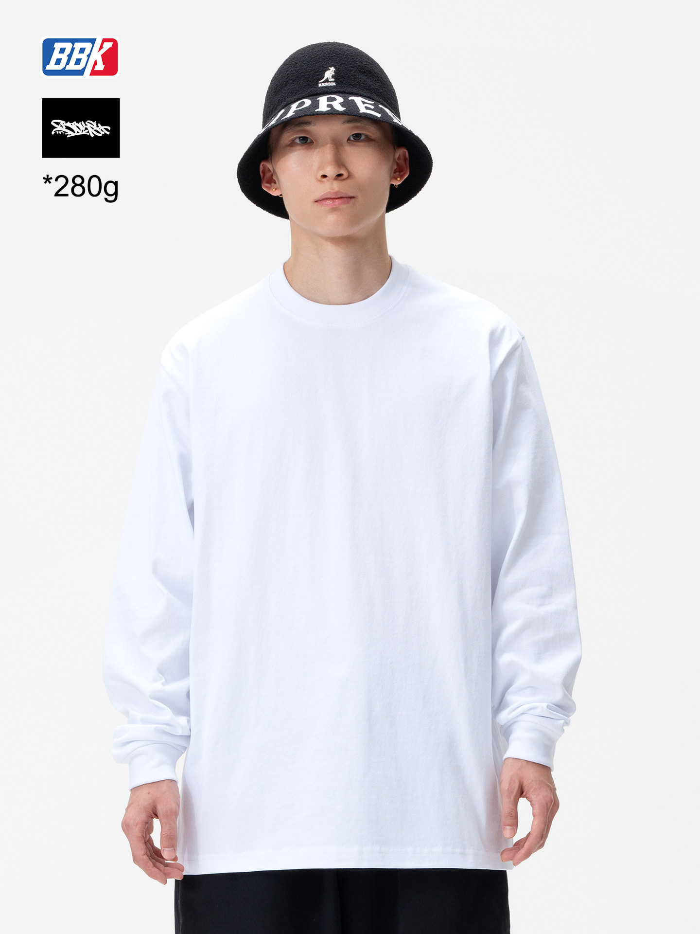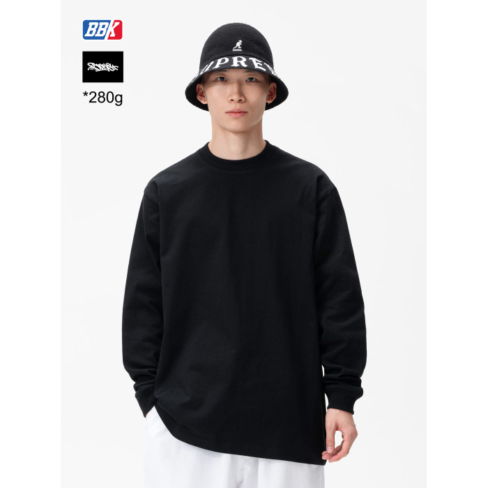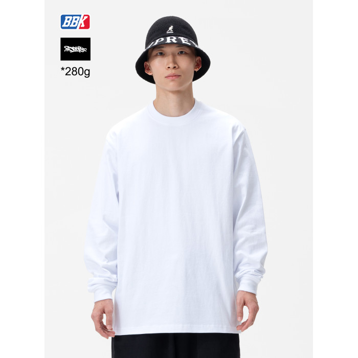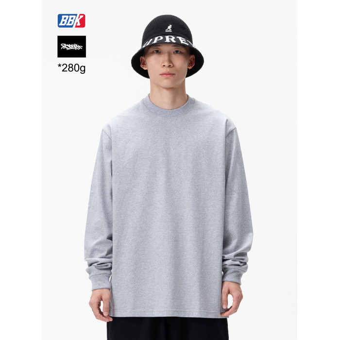 BBK 280g 寬松純色 滑板 重磅小領口t恤 街舞 圓領打底淨色長袖