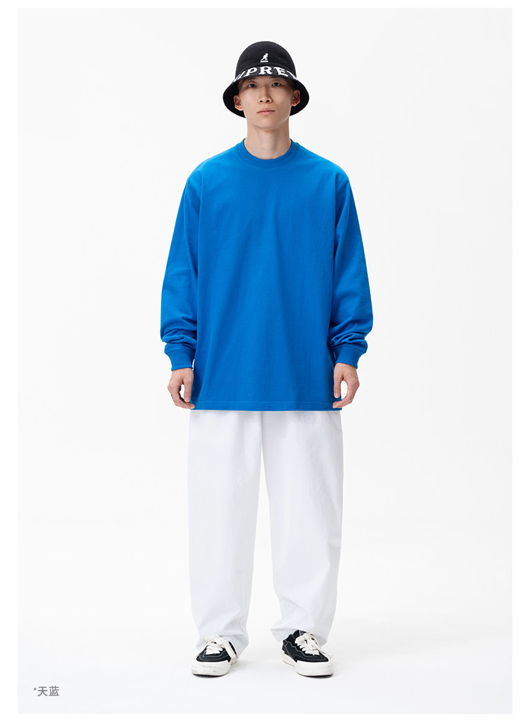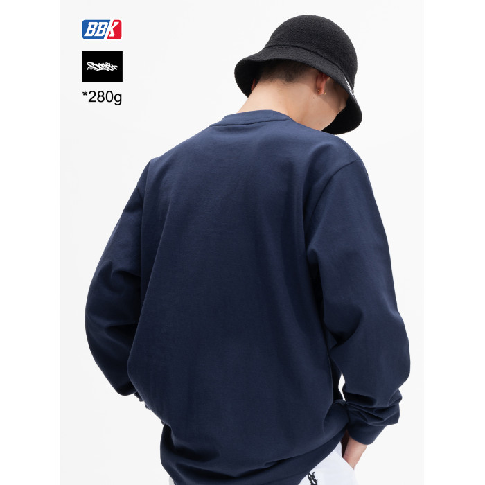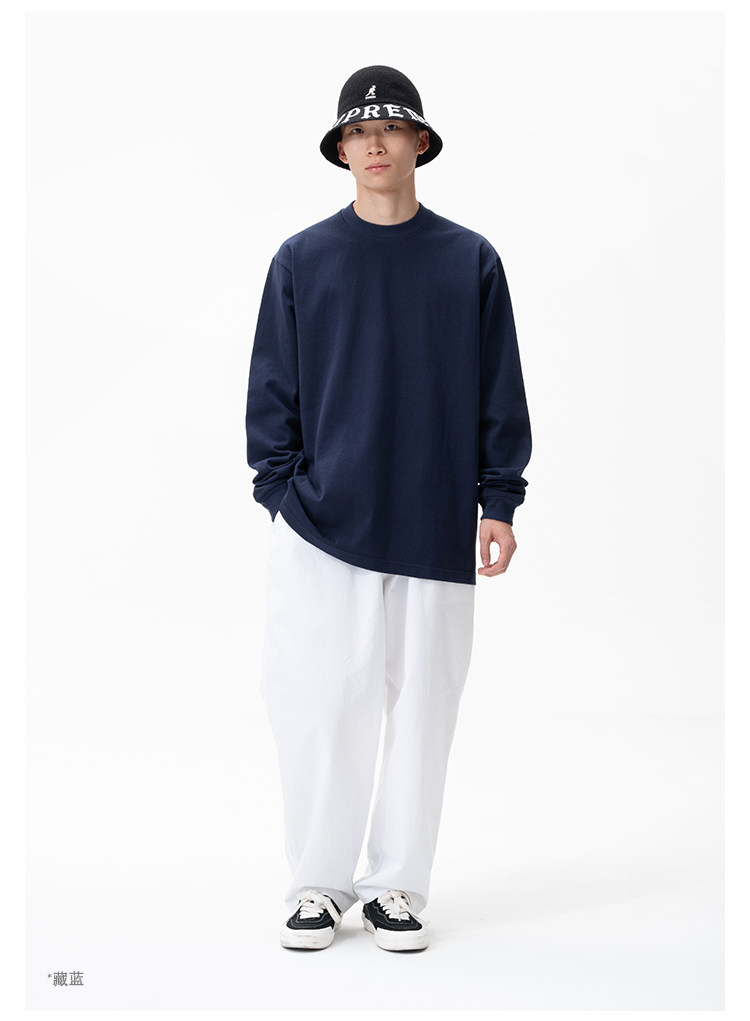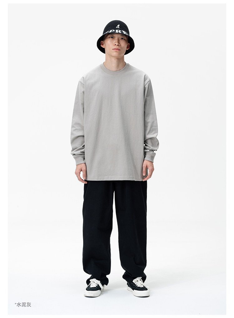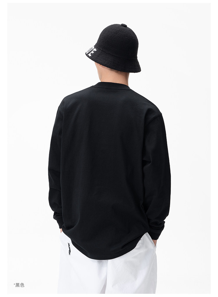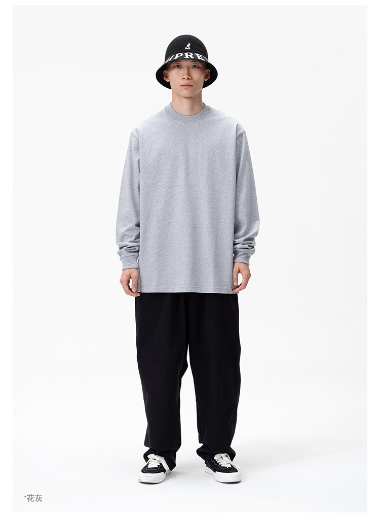 BBK 280g 寬松純色 滑板 重磅小領口t恤 街舞 圓領打底淨色長袖