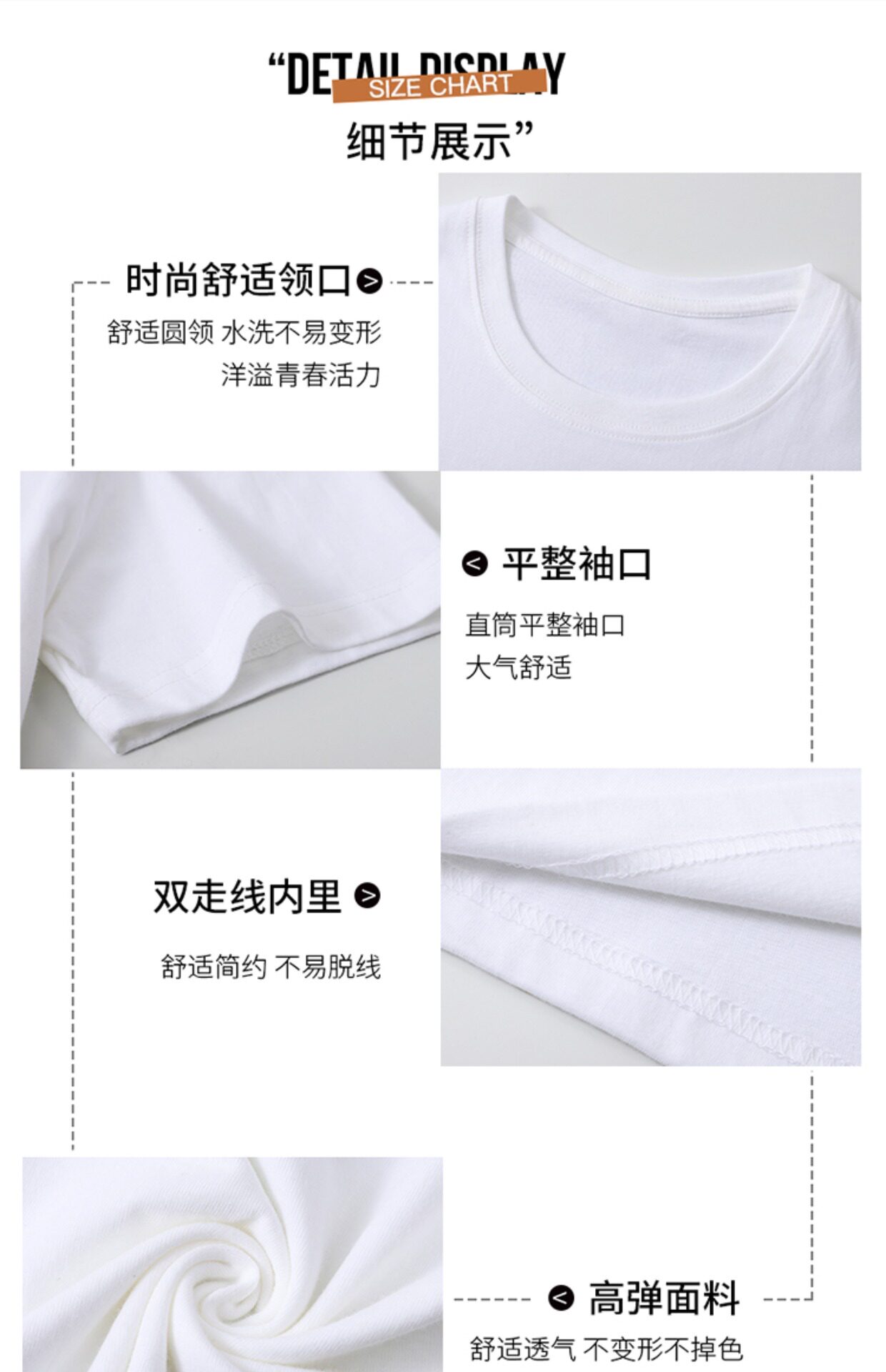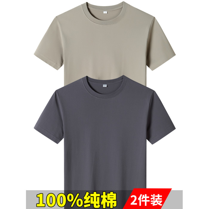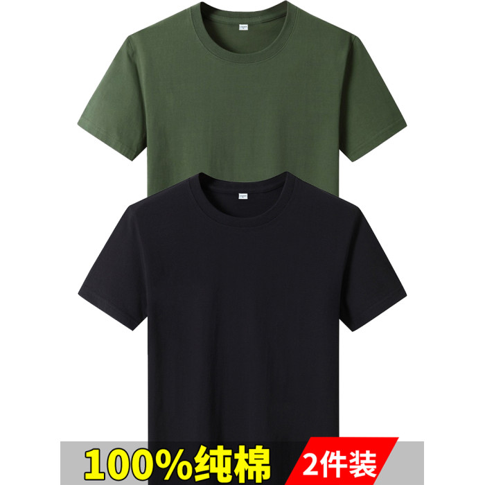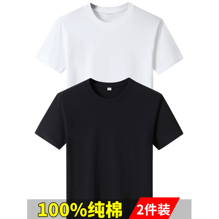 100%純棉短袖T恤男夏季白色圓領寬松純色大碼半袖打底衫上衣汗衫