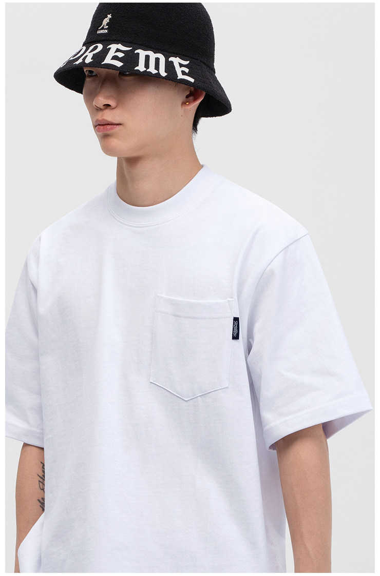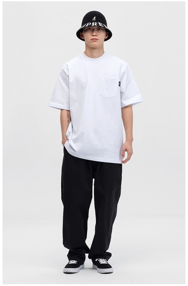BBK 280g bboy寬松 純色t恤重磅街舞嘻哈打底 小領口袋短袖滑板