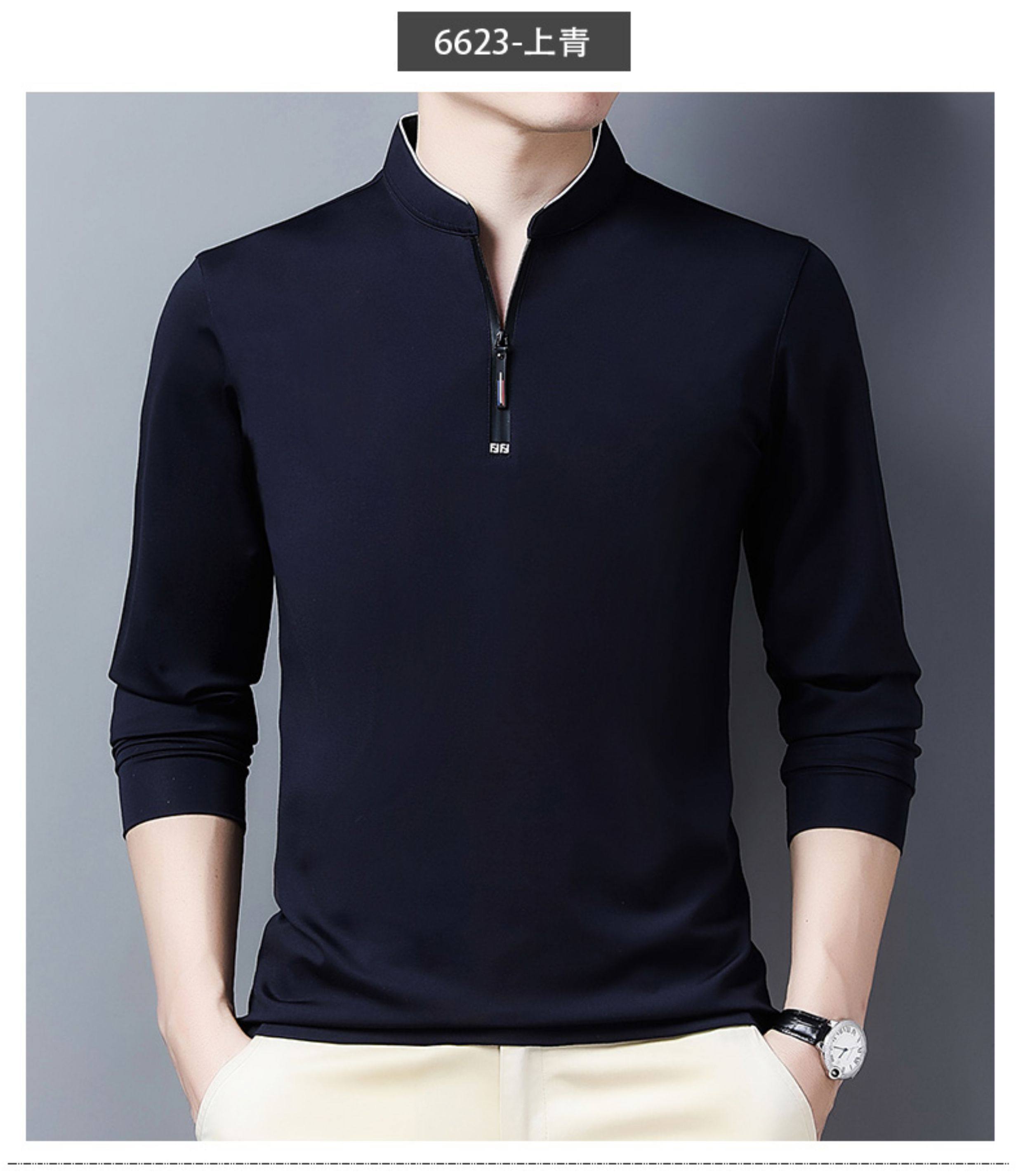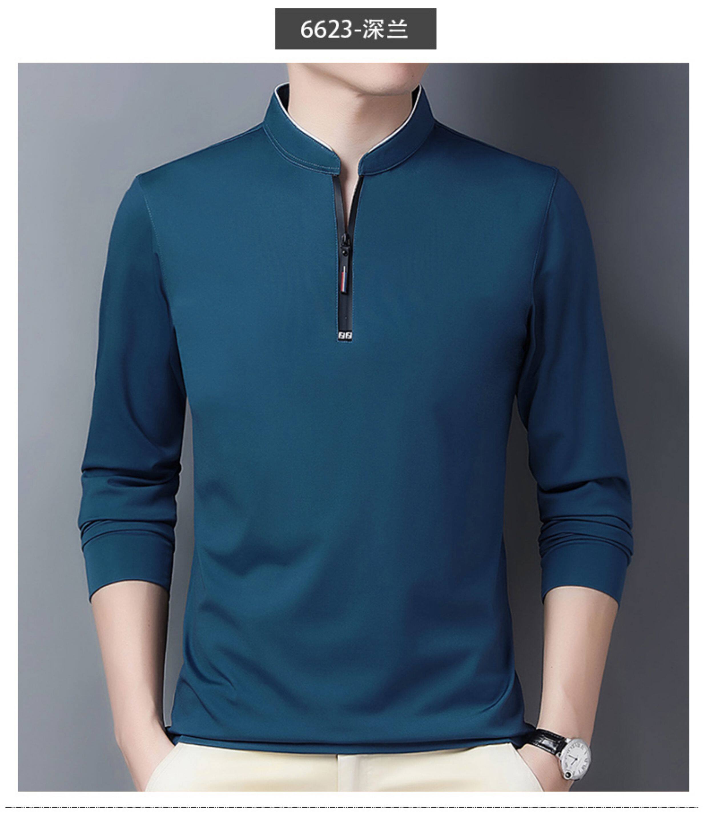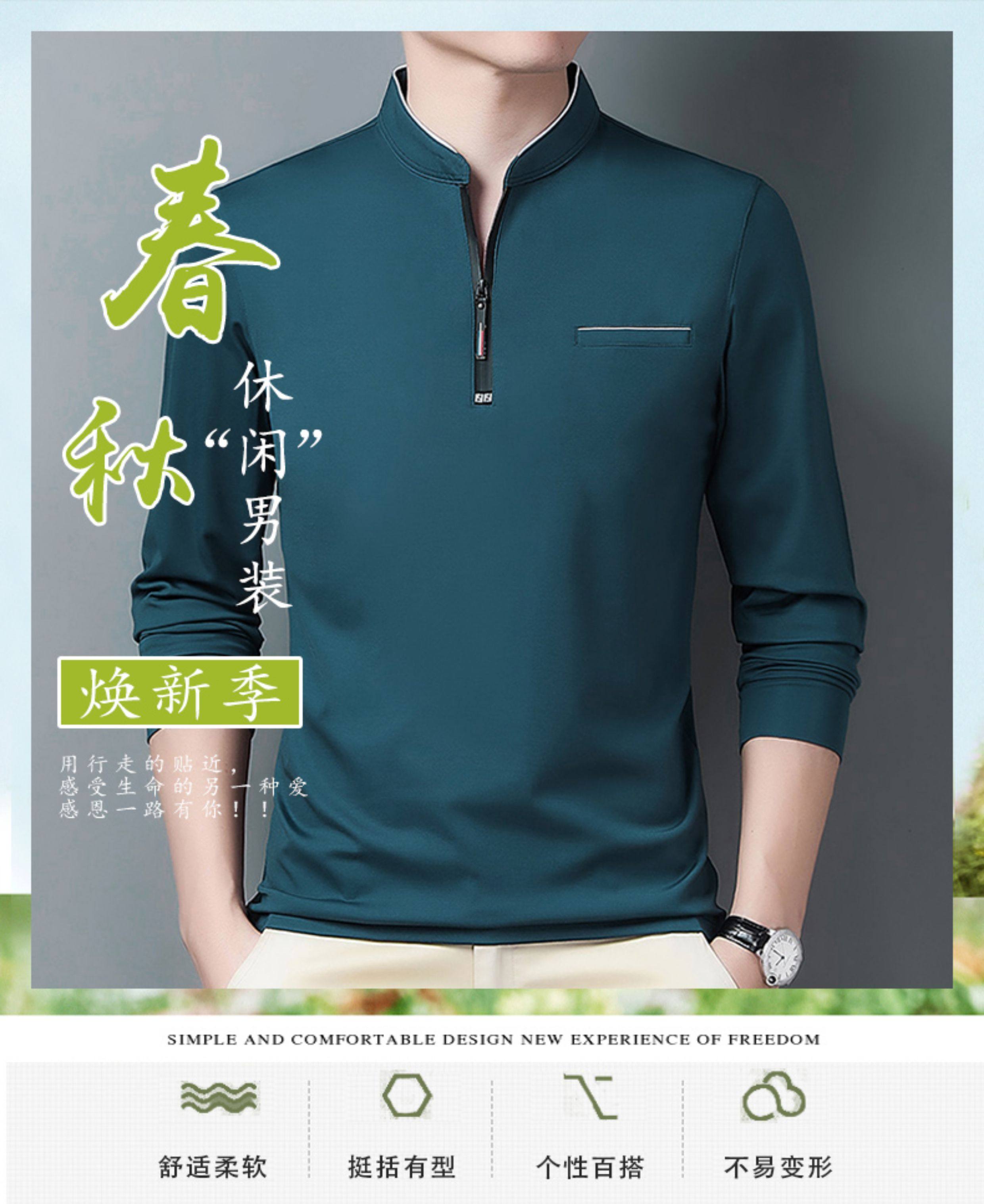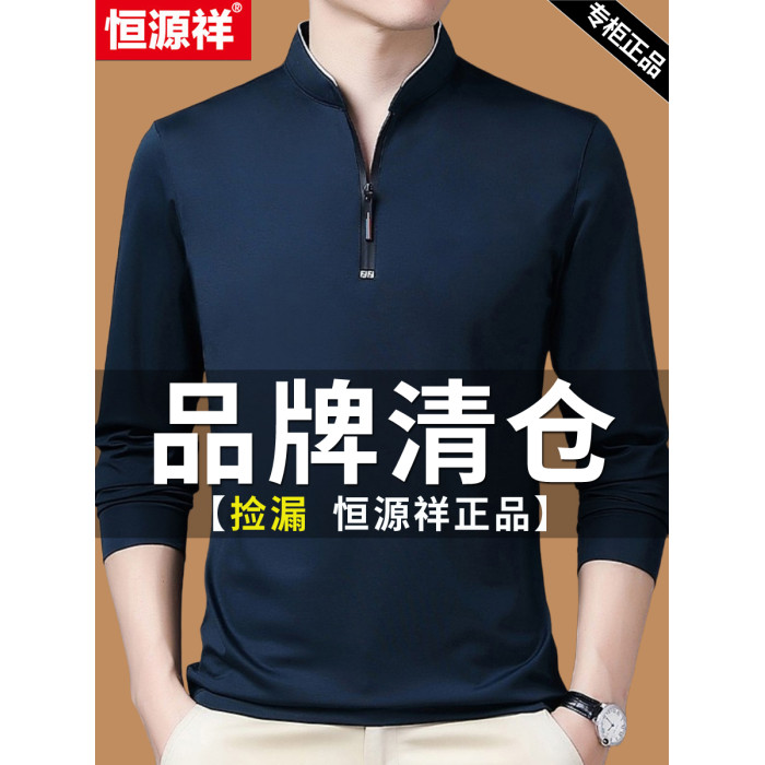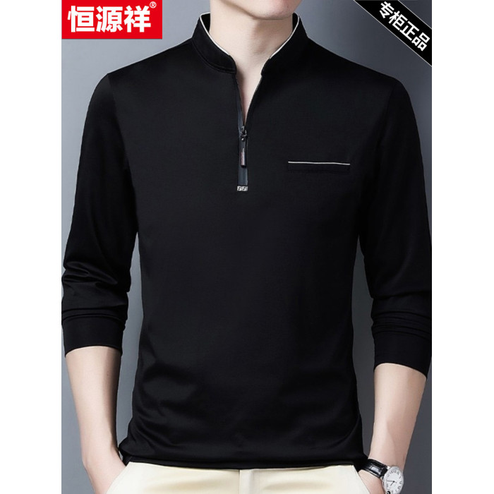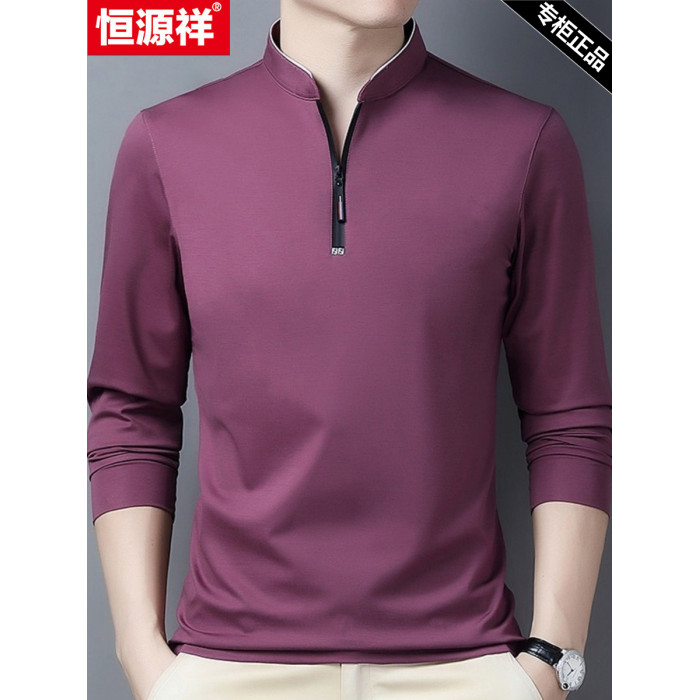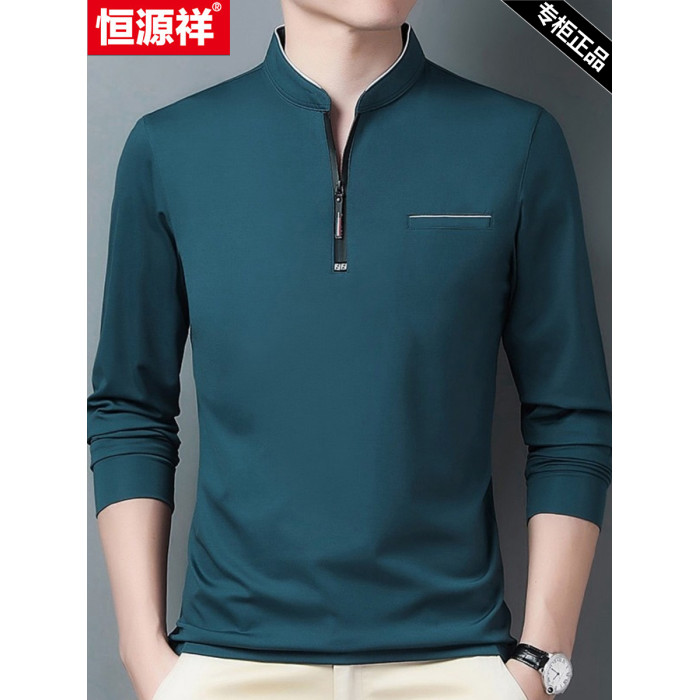 恒源祥高檔長袖t恤男休閒薄款體恤上衣春秋季中年男裝立領打底衫