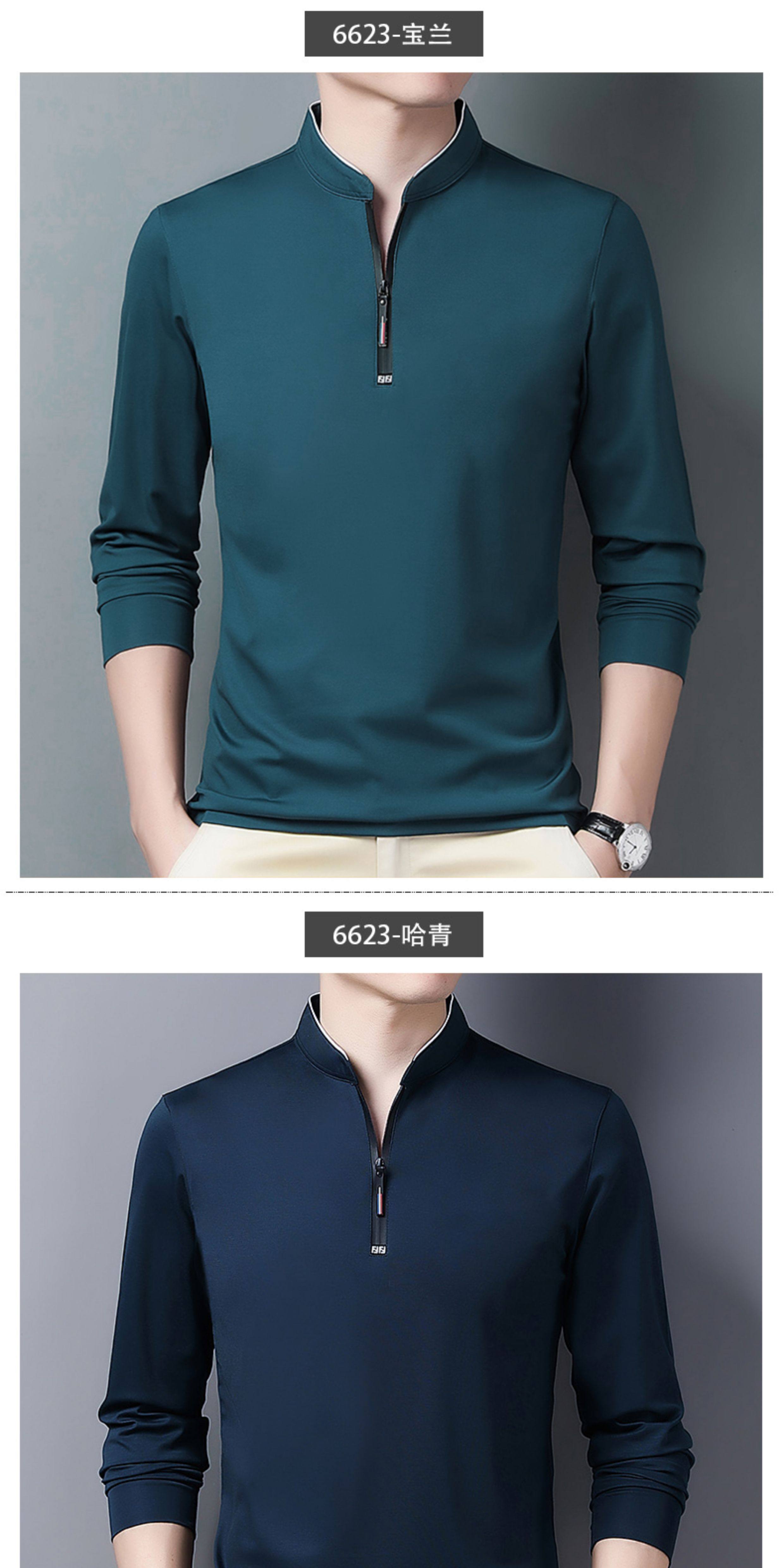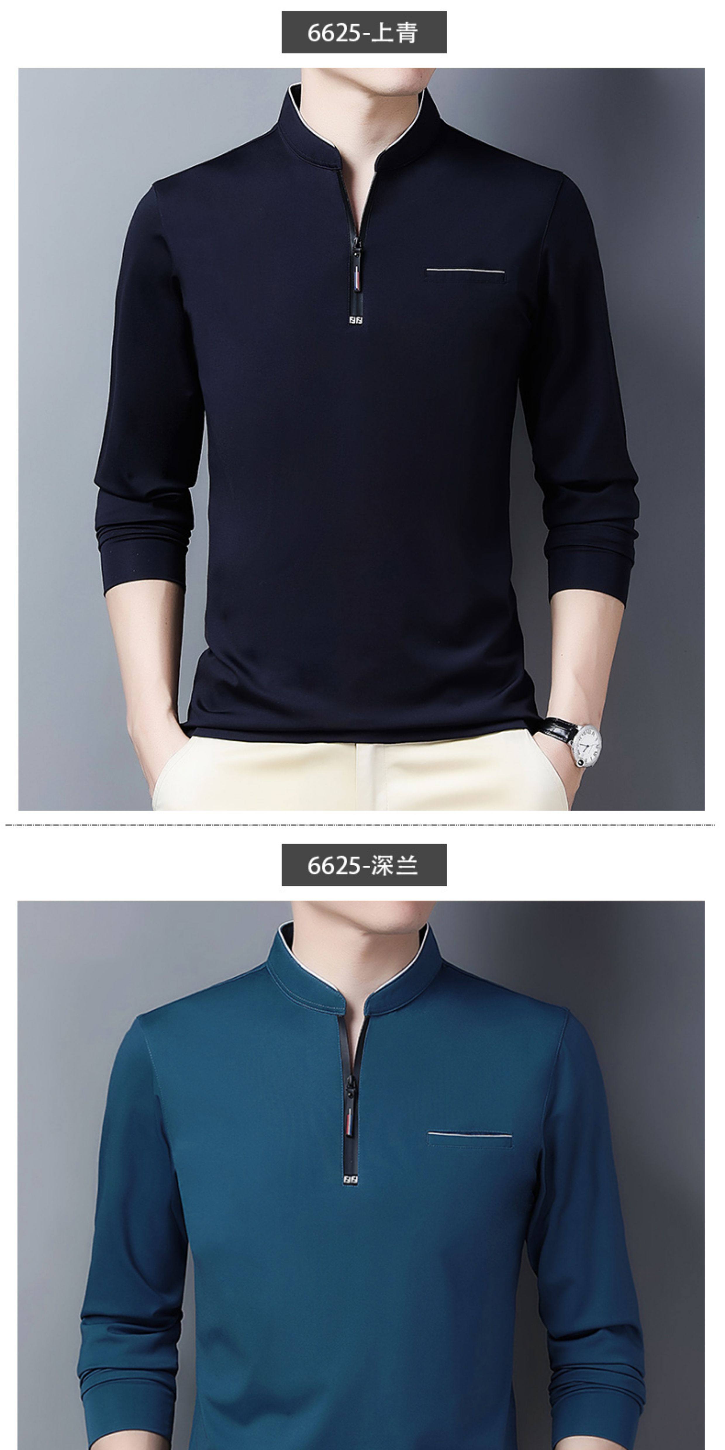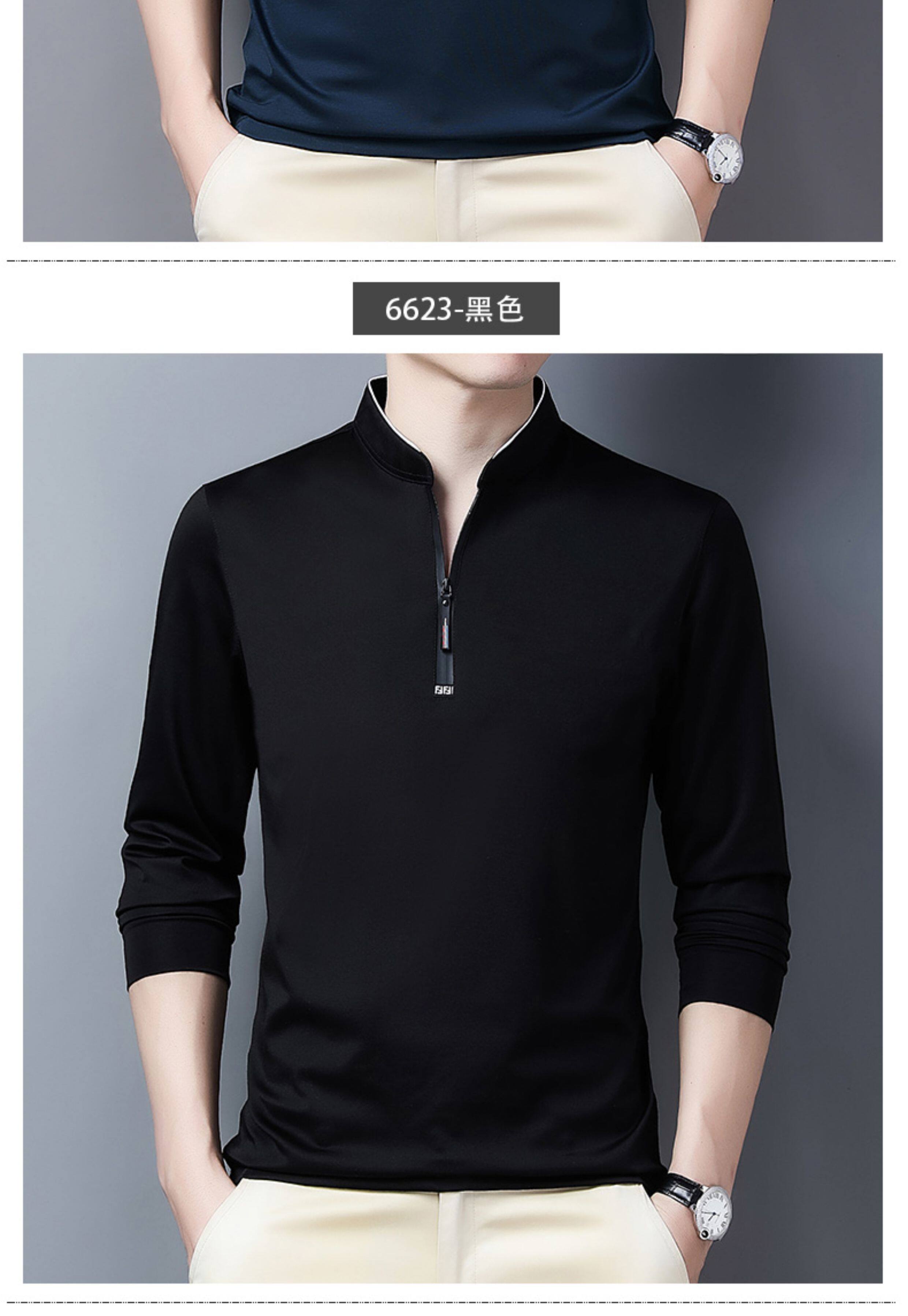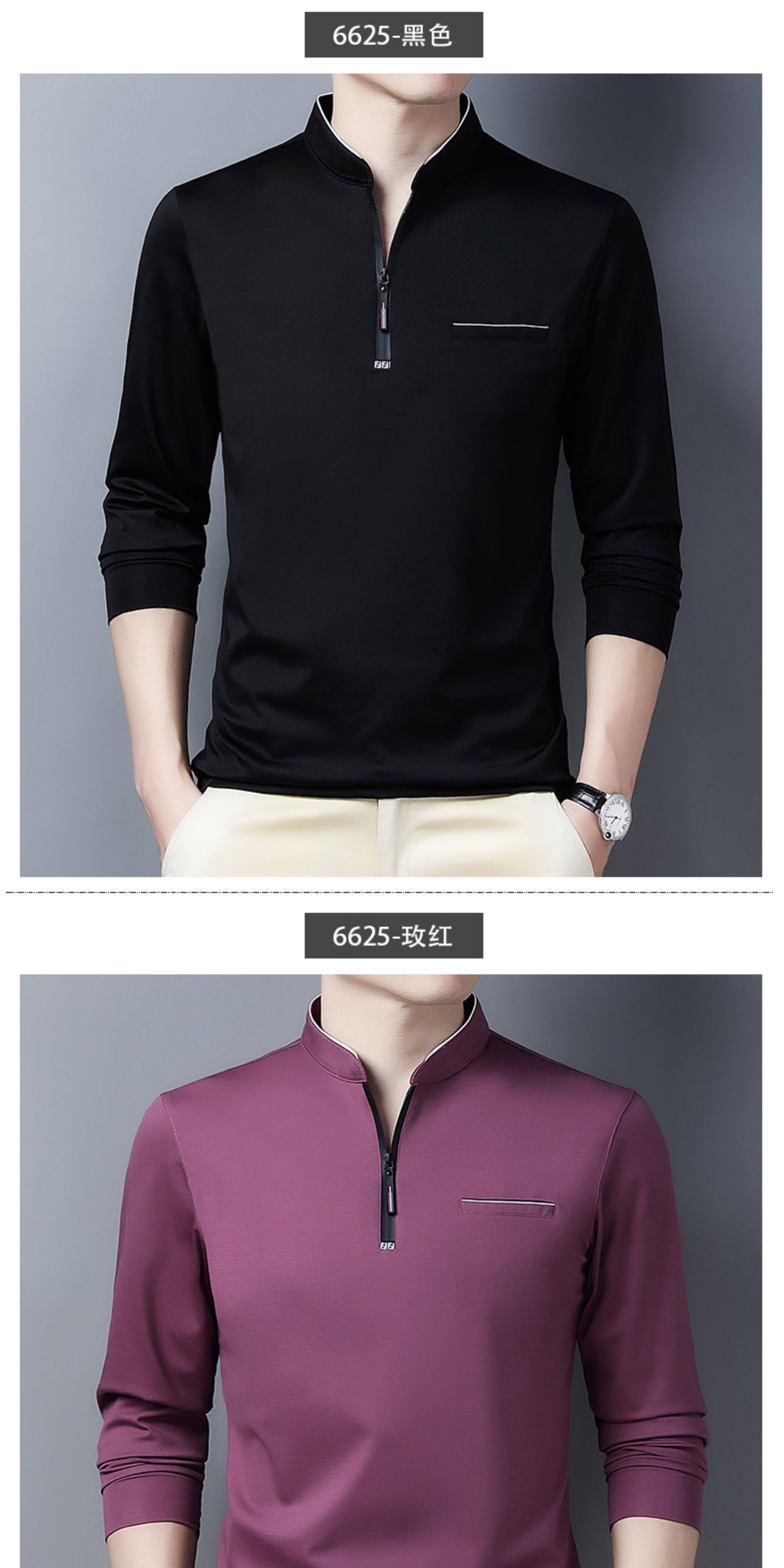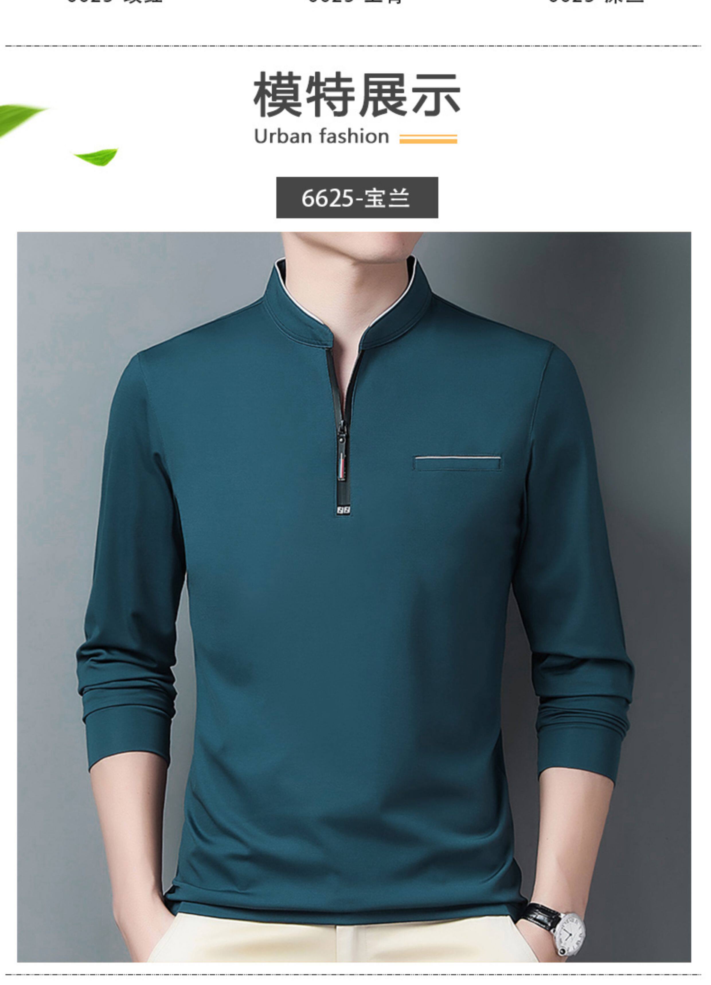 恒源祥高檔長袖t恤男休閒薄款體恤上衣春秋季中年男裝立領打底衫