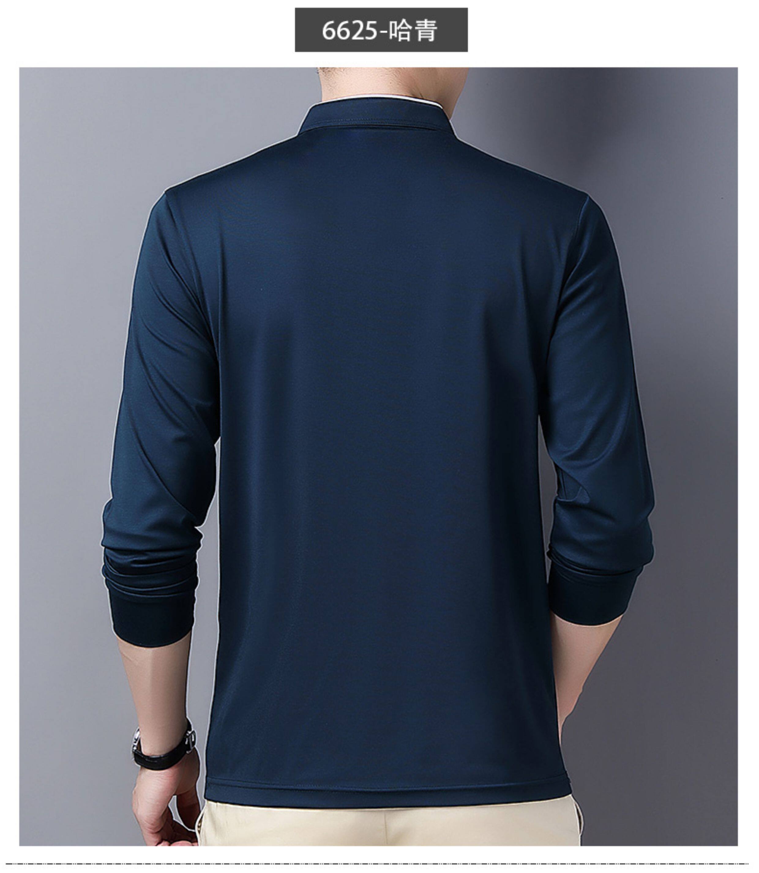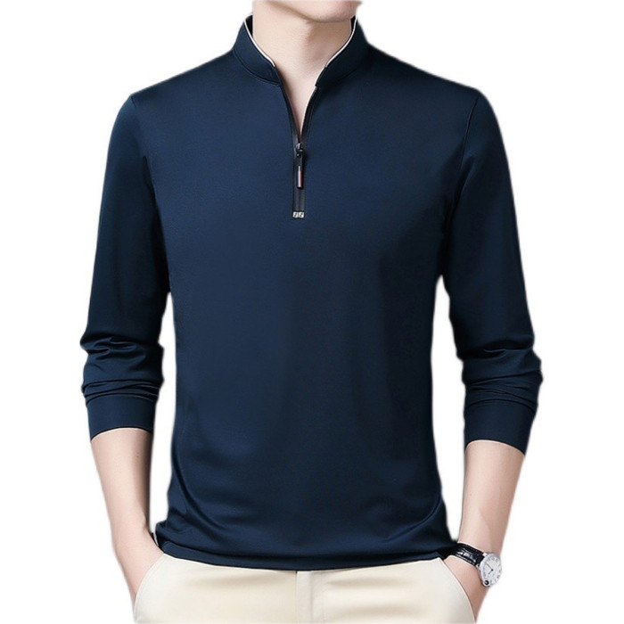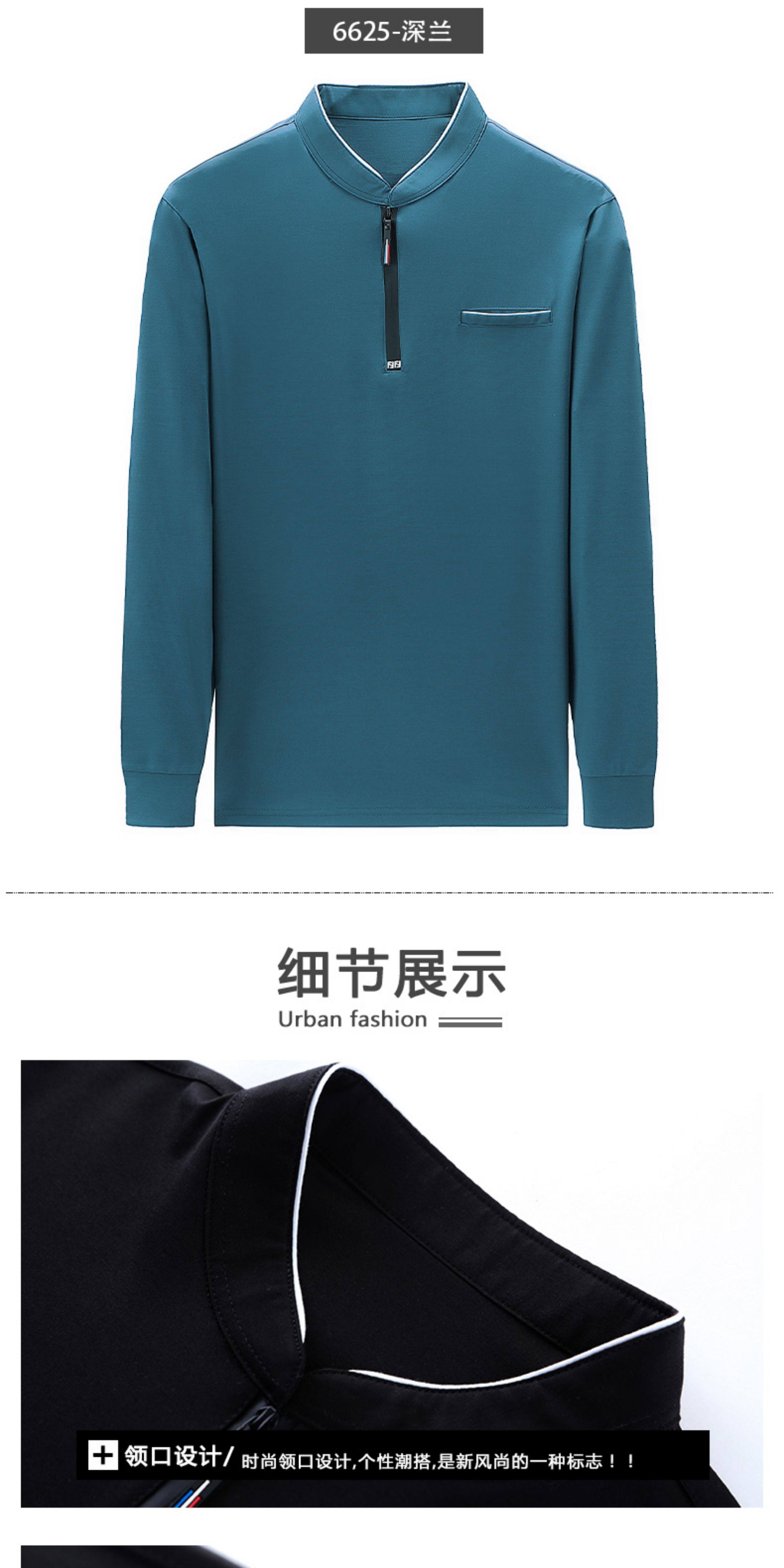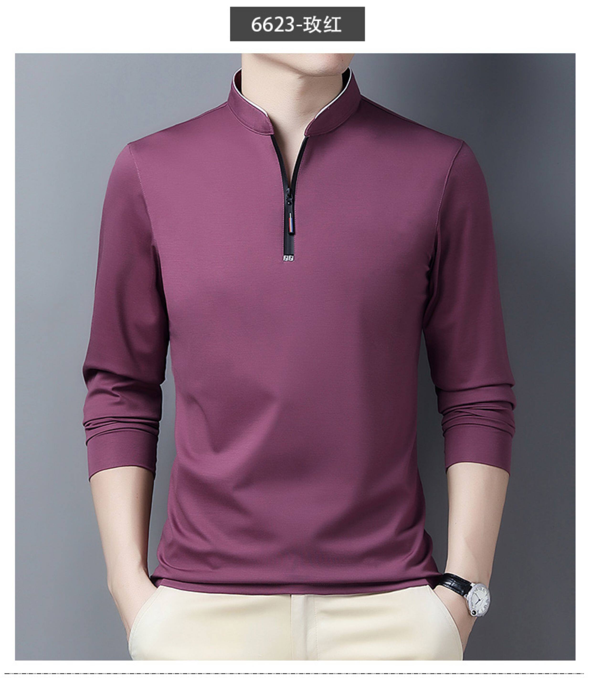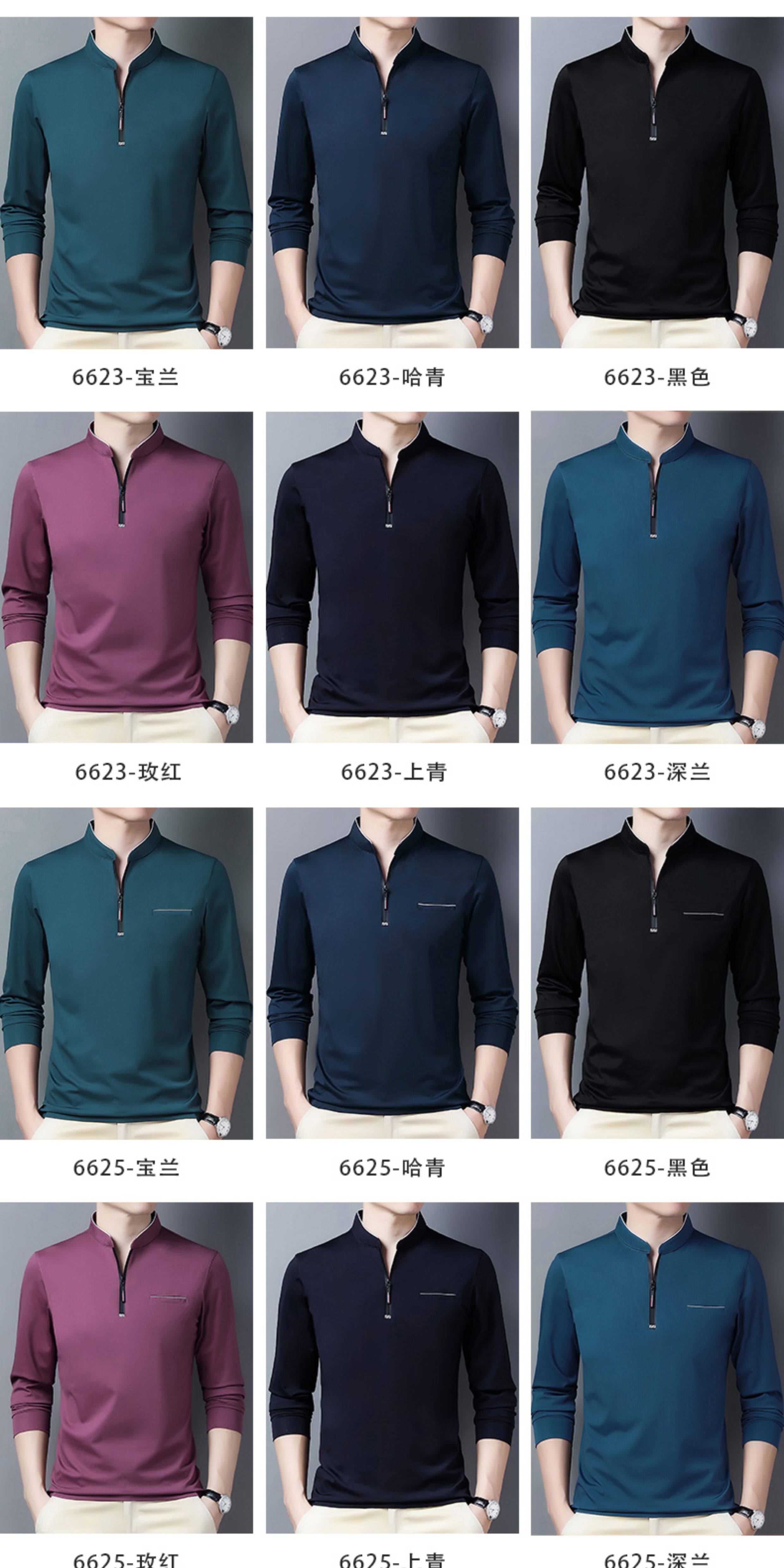 恒源祥高檔長袖t恤男休閒薄款體恤上衣春秋季中年男裝立領打底衫