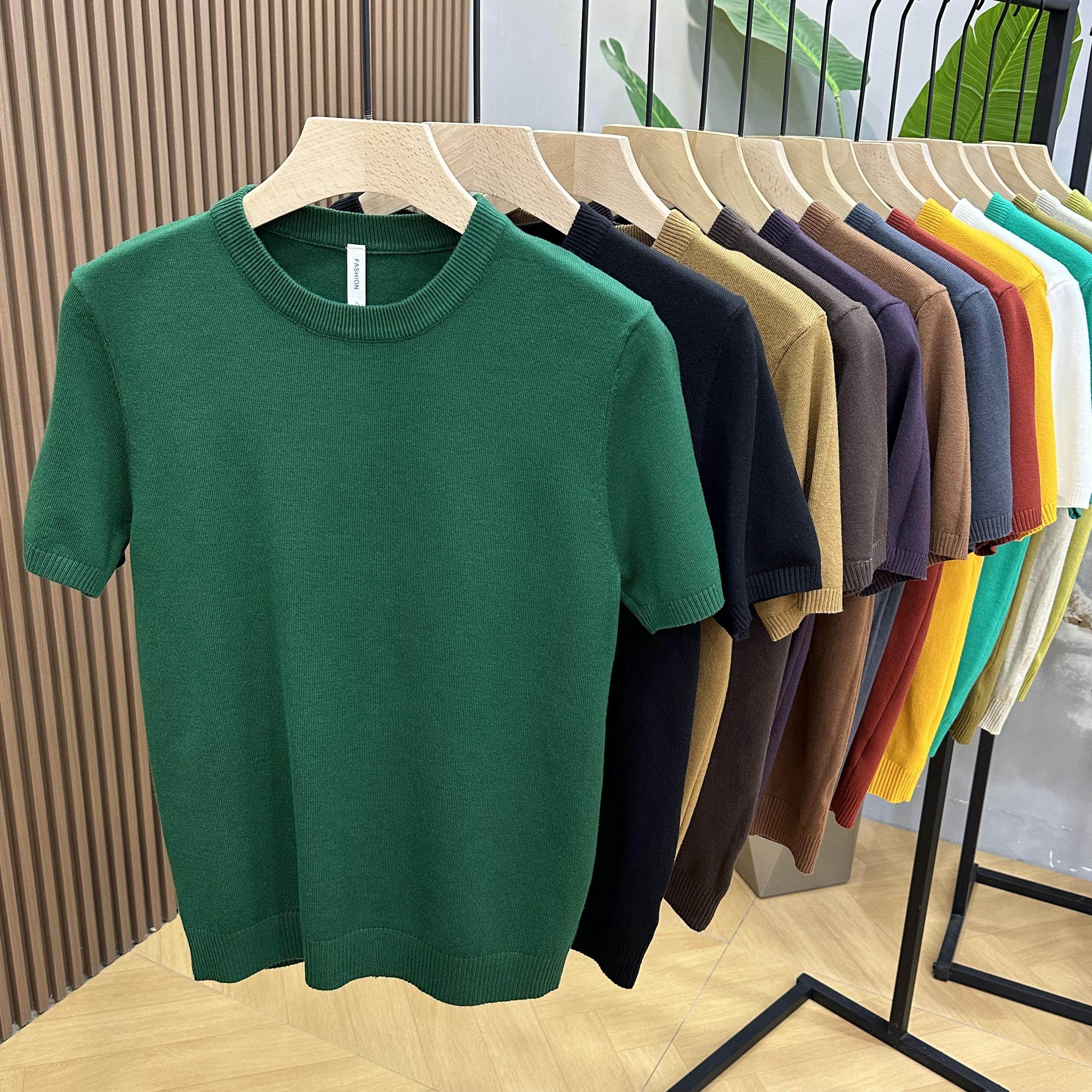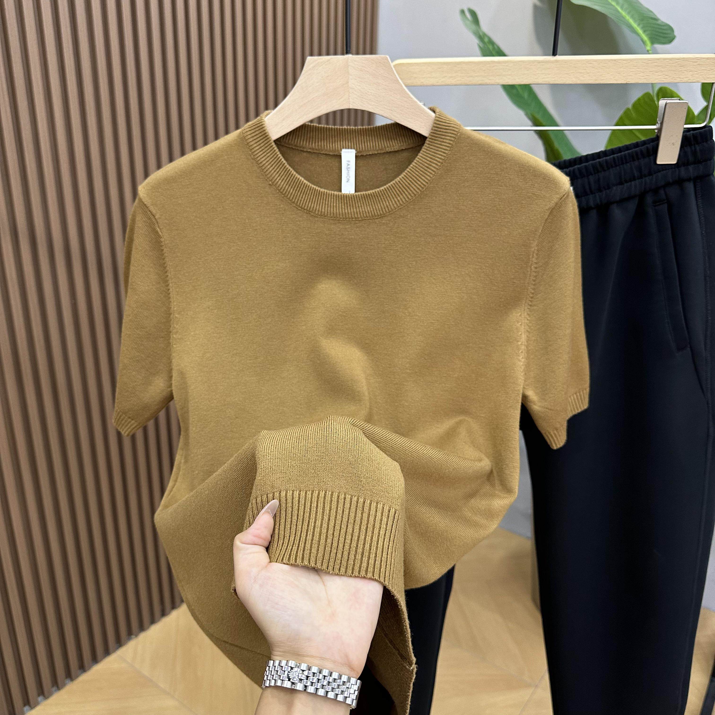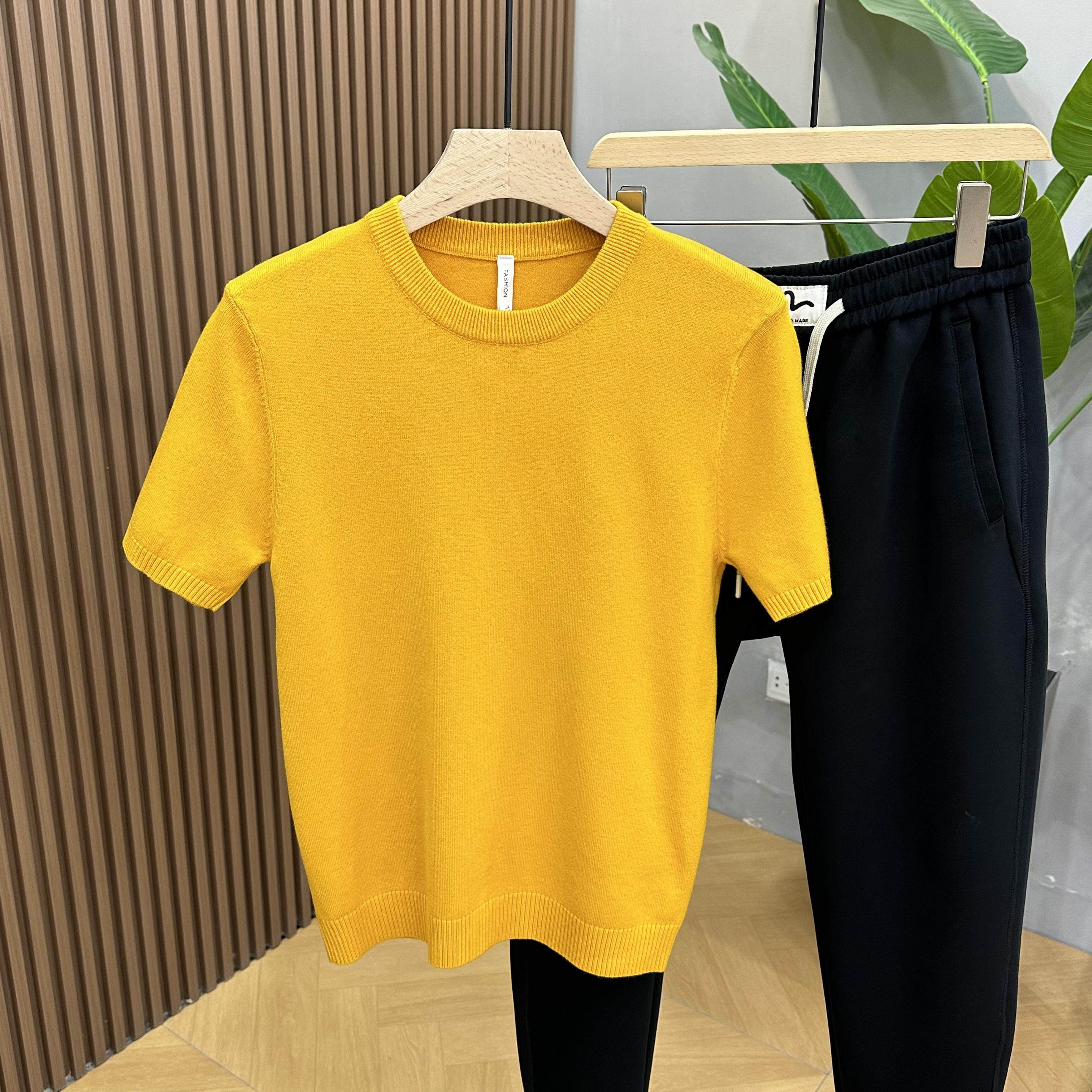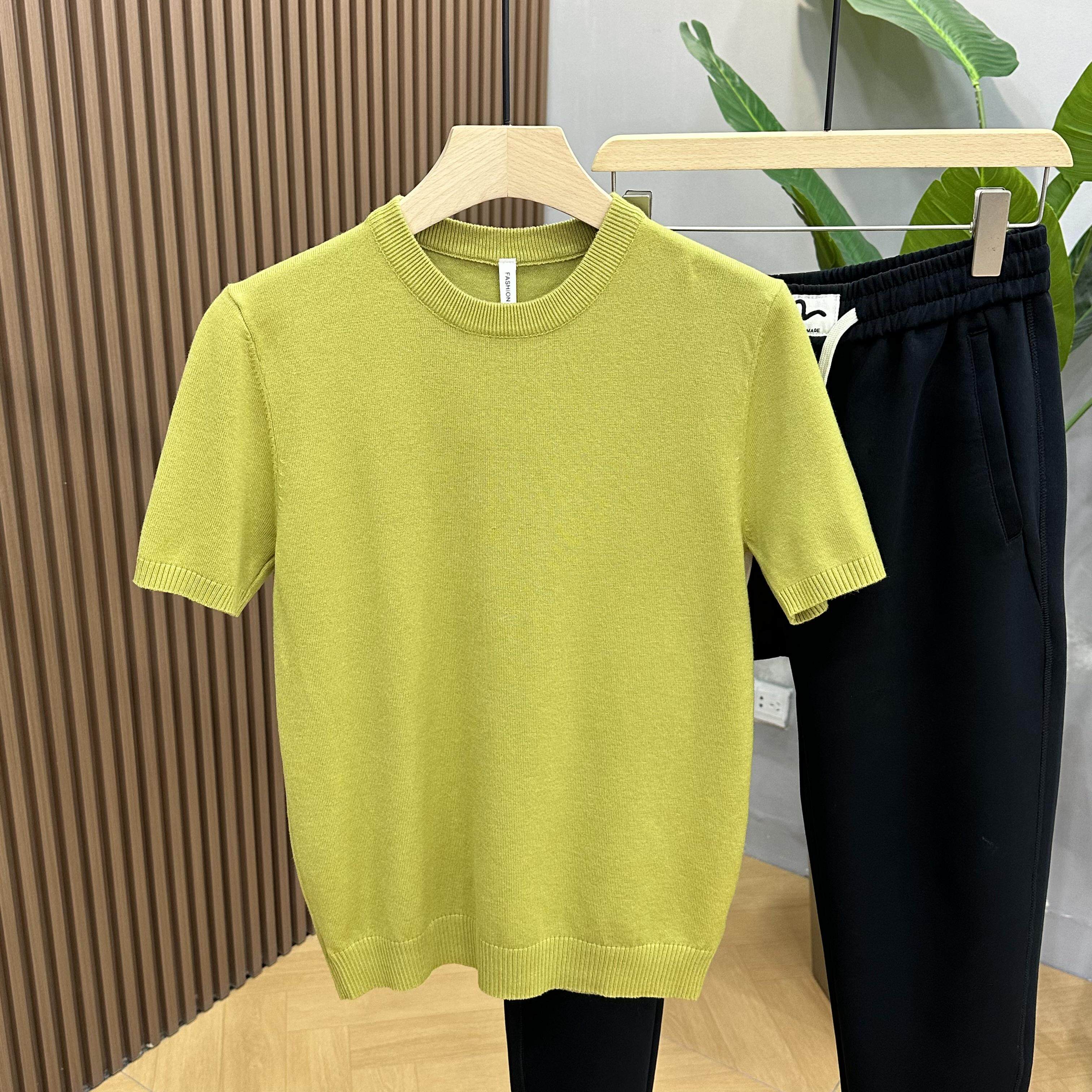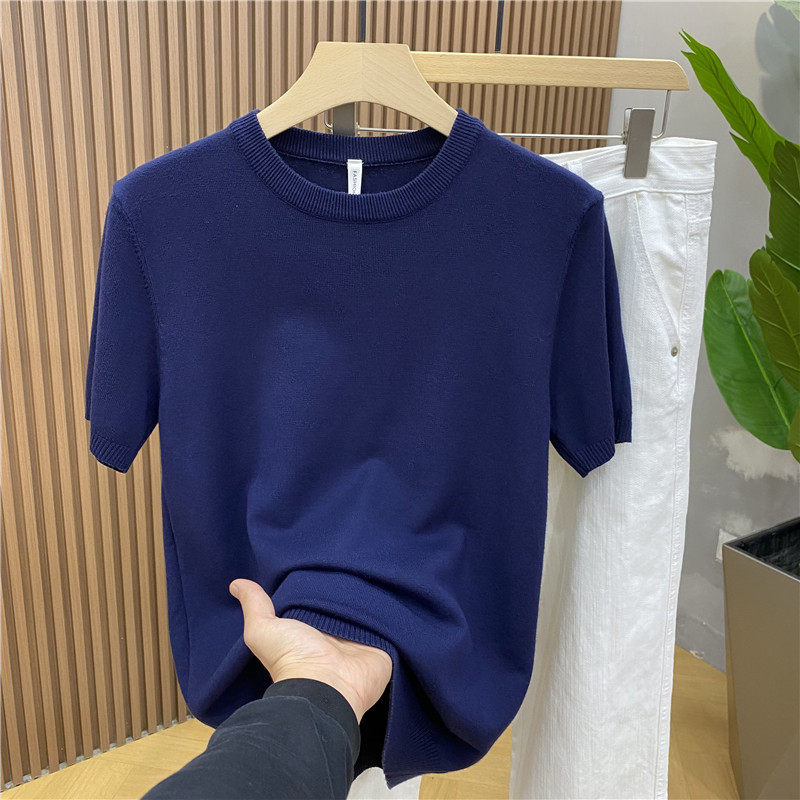 春秋季韓版潮流圓領毛衣情侶寬松百搭針織毛衫男士打底半袖針織衫