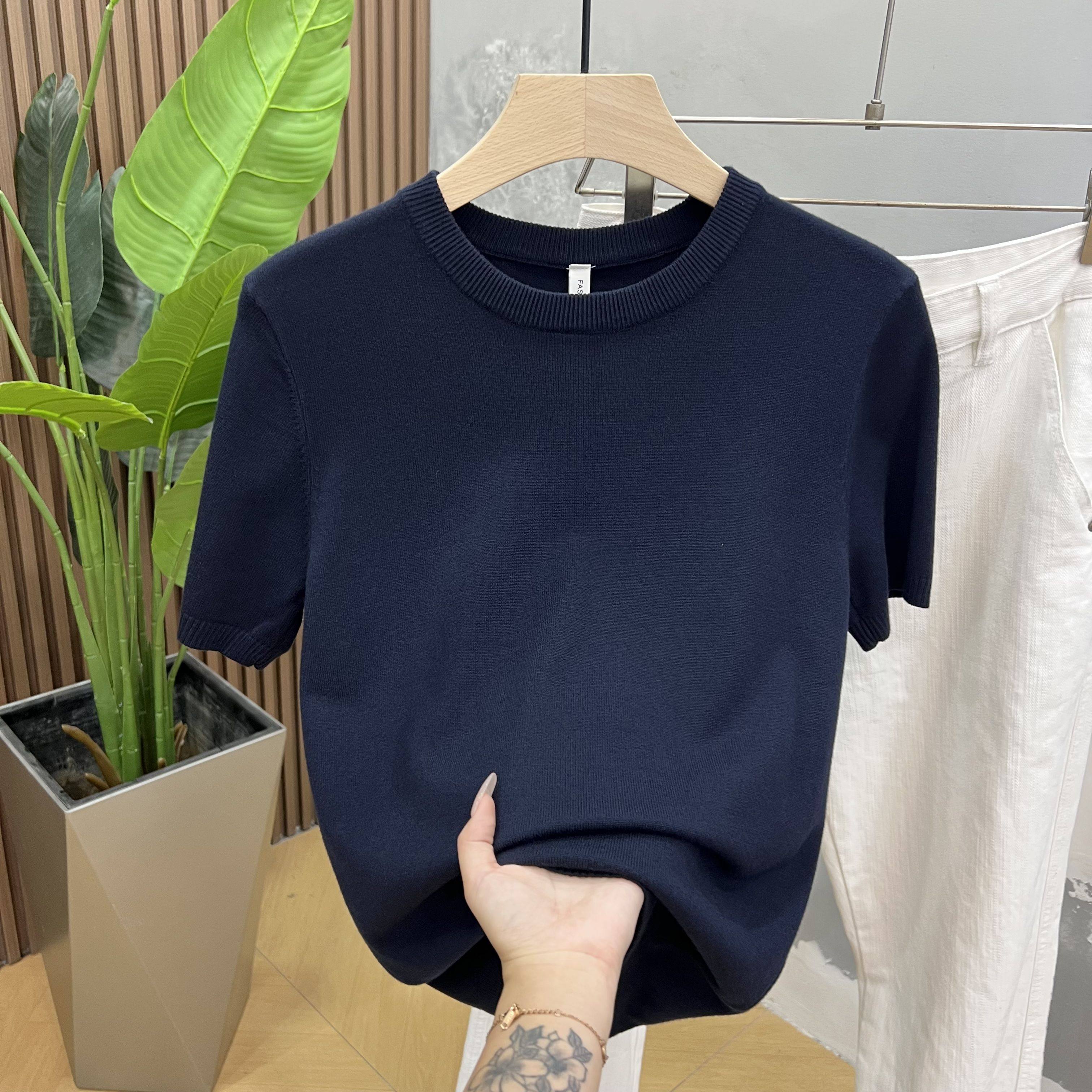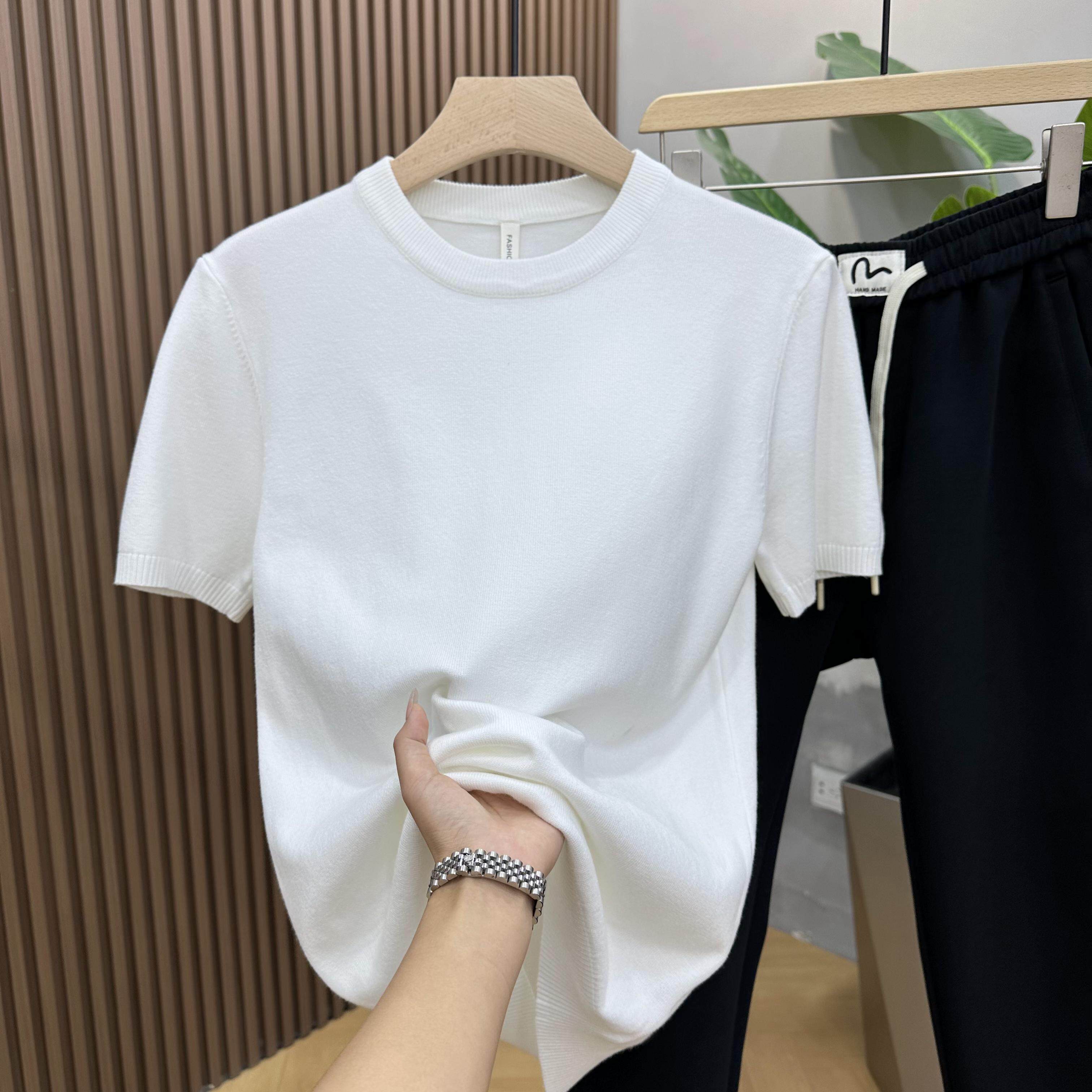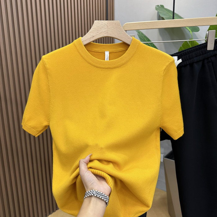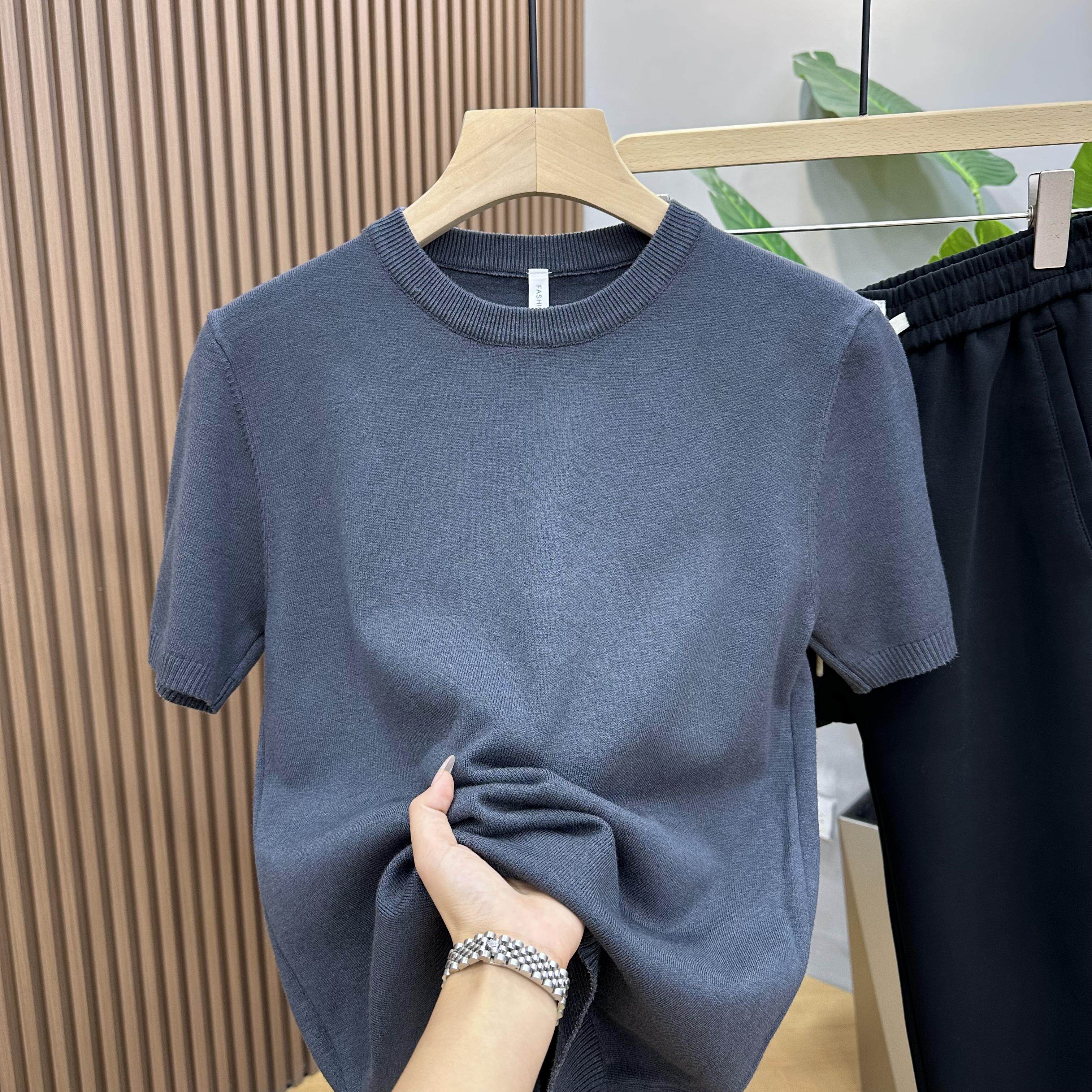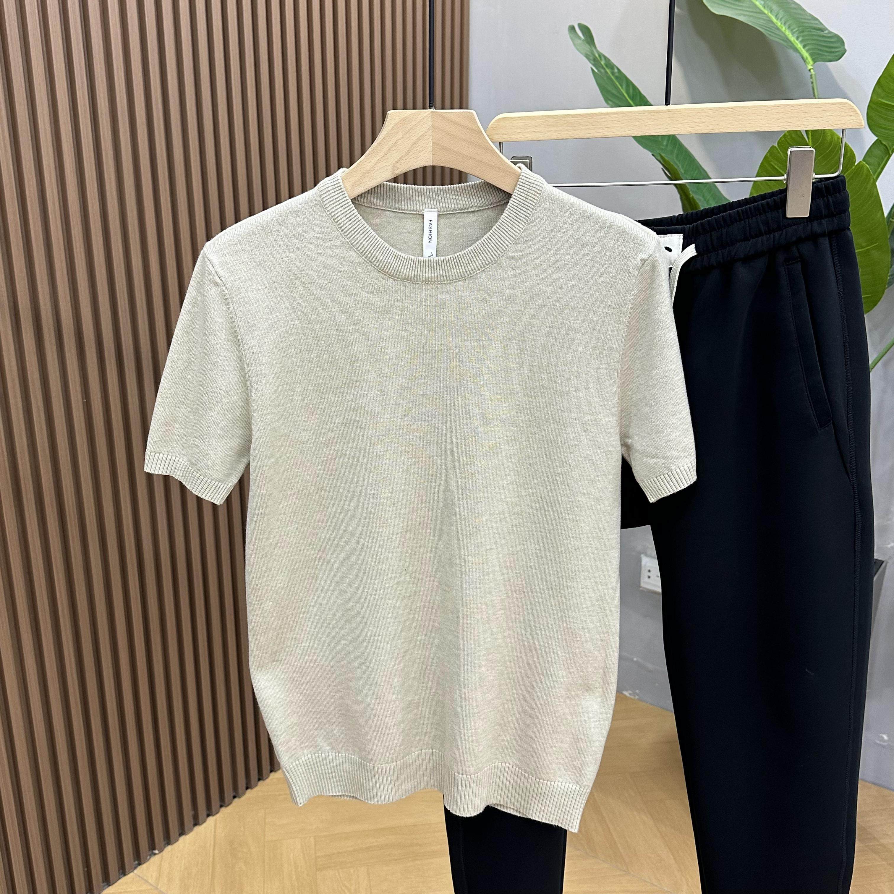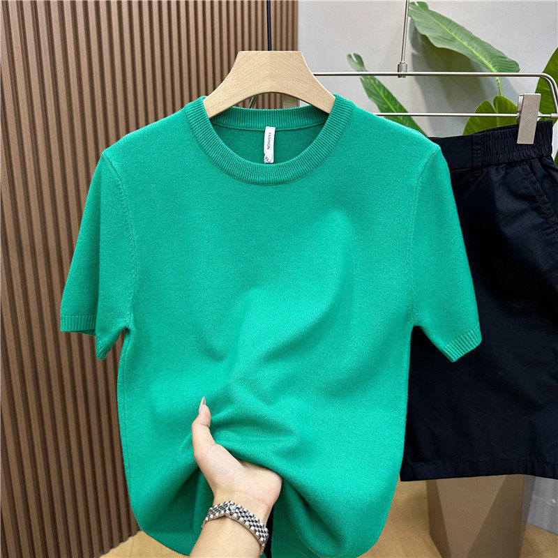 春秋季韓版潮流圓領毛衣情侶寬松百搭針織毛衫男士打底半袖針織衫