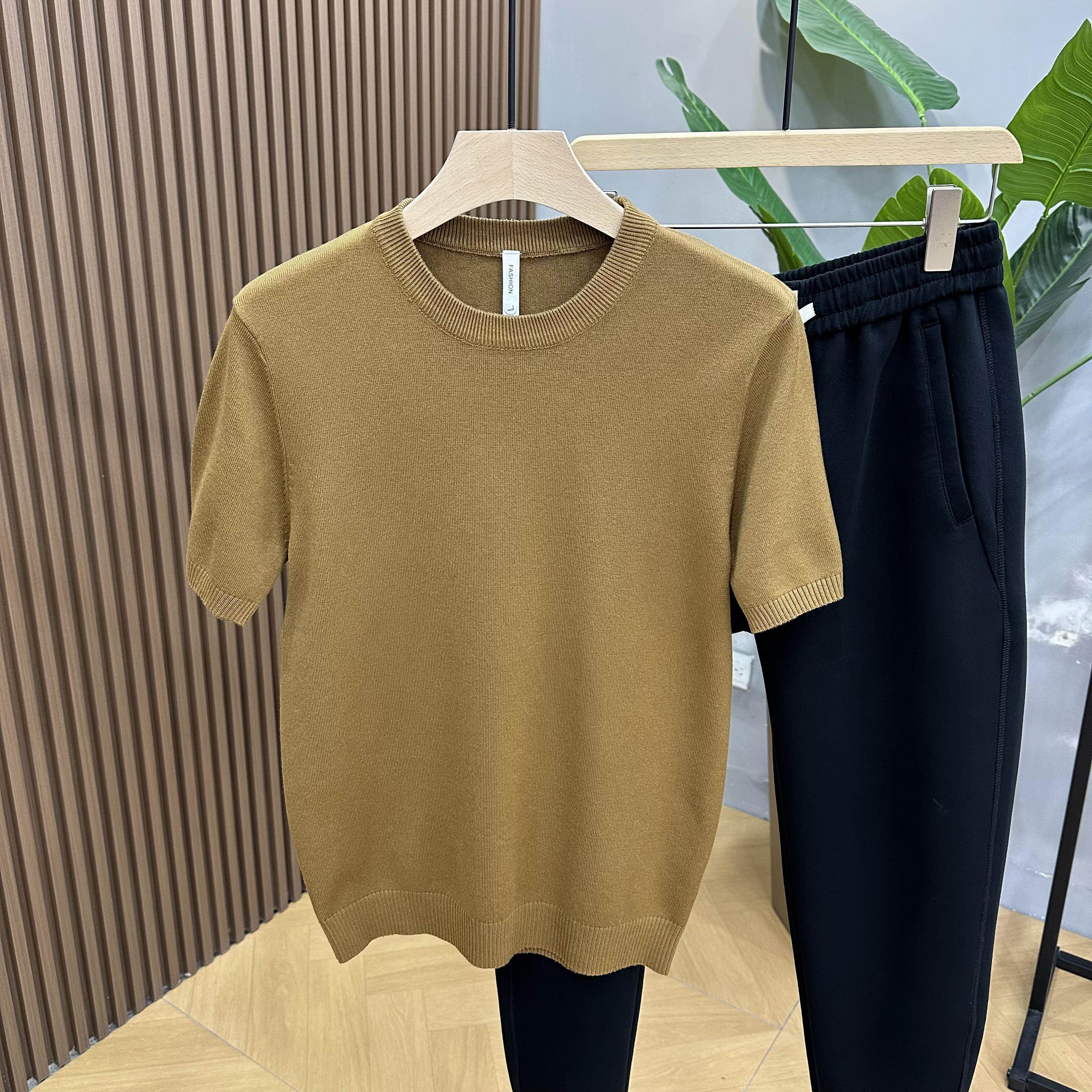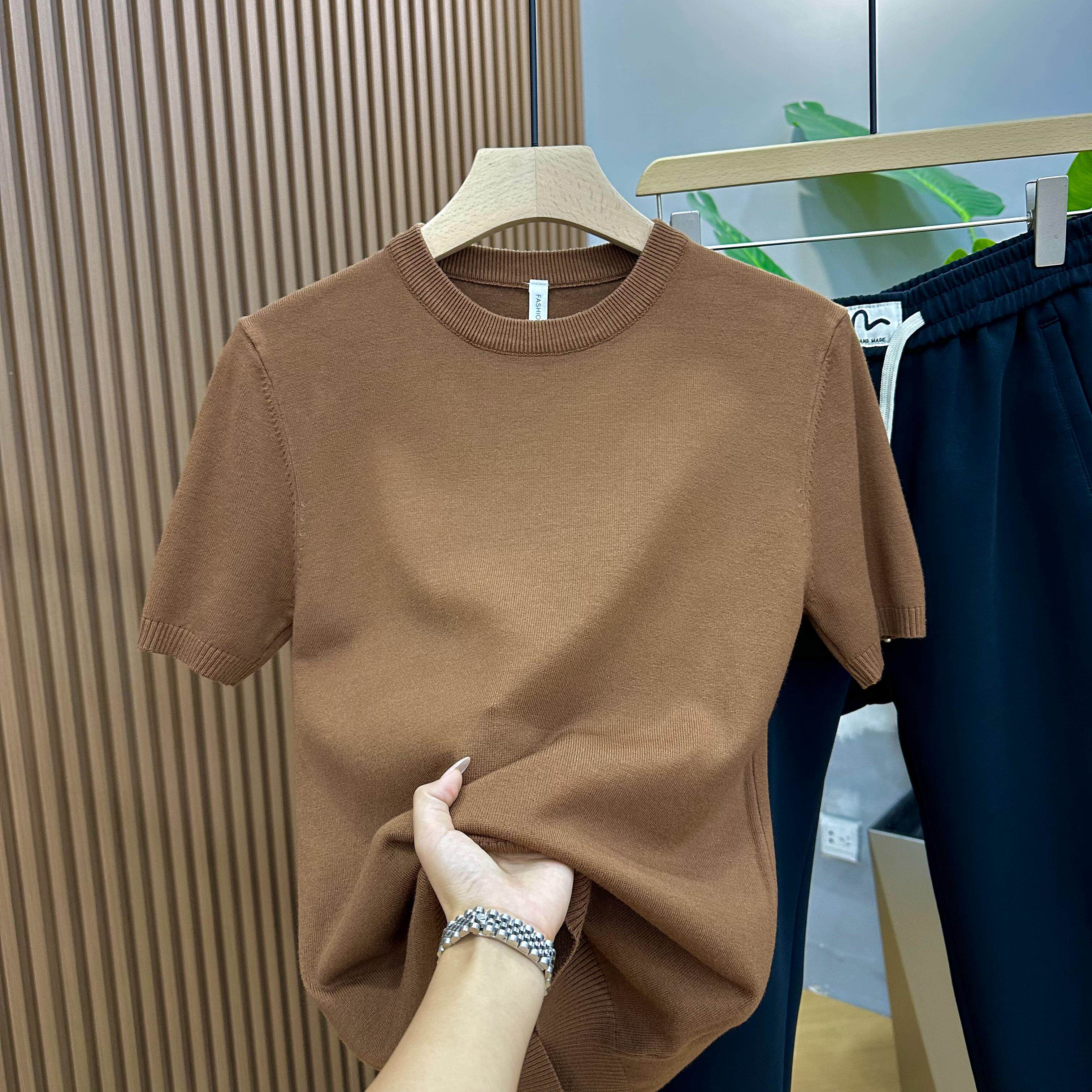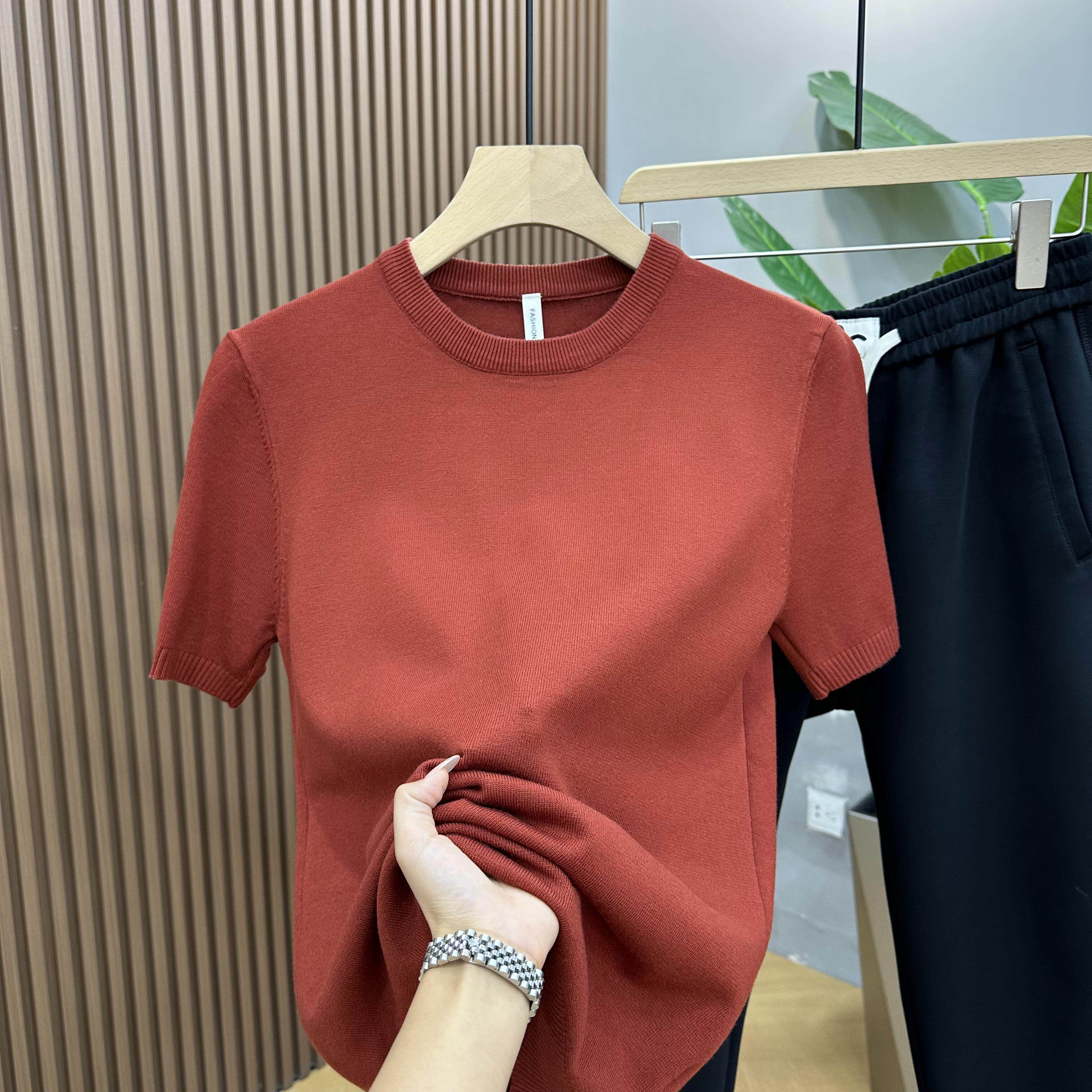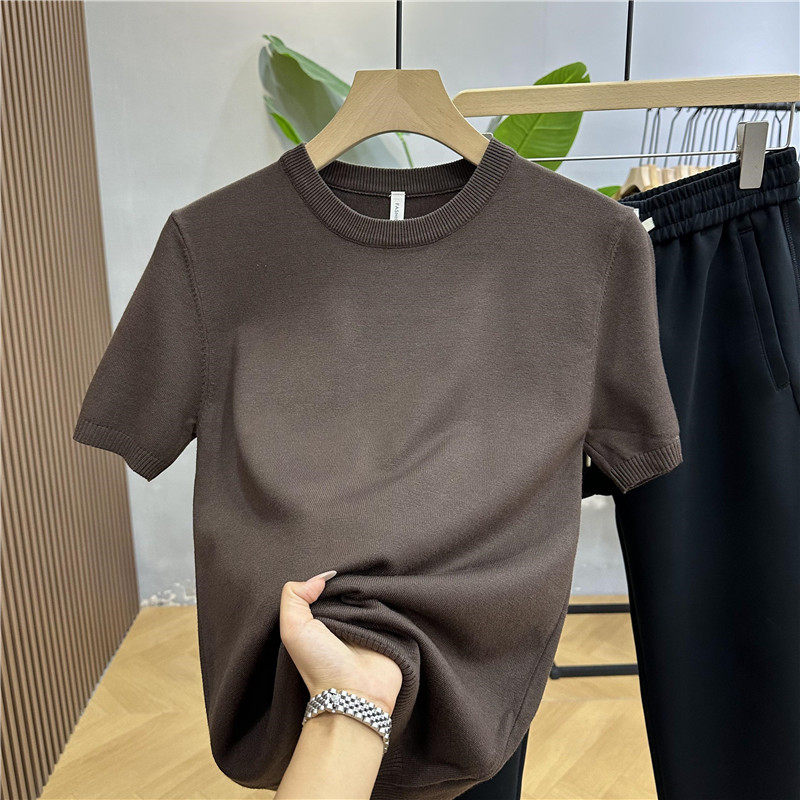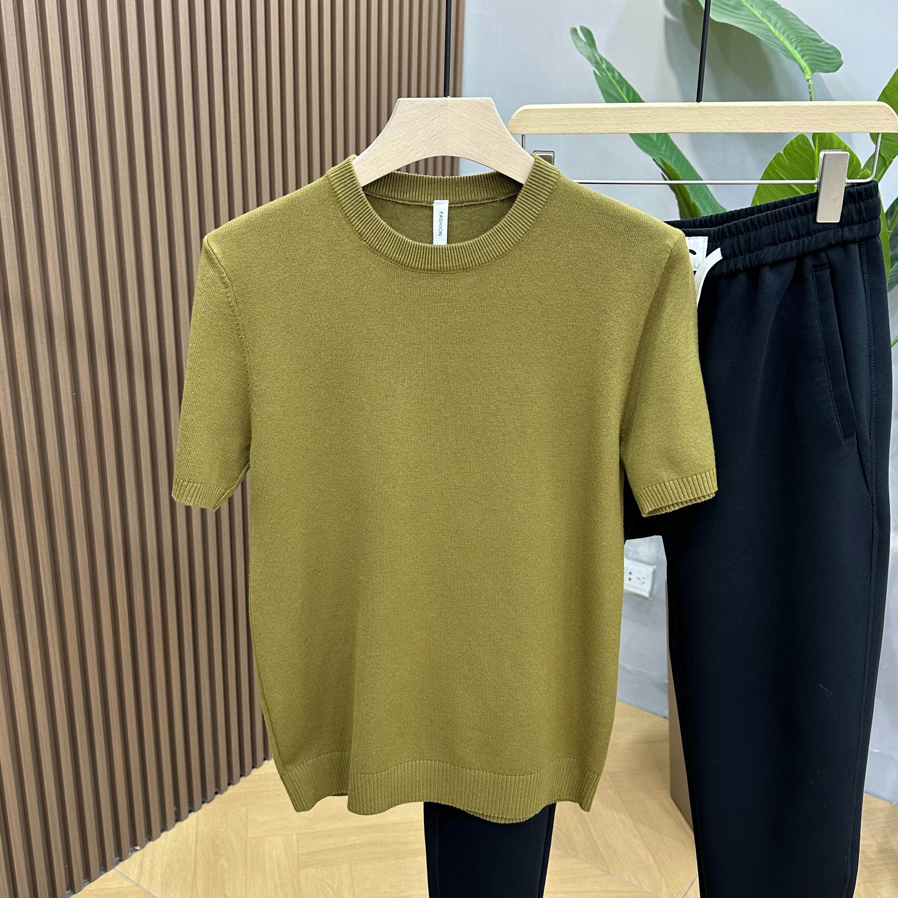 春秋季韓版潮流圓領毛衣情侶寬松百搭針織毛衫男士打底半袖針織衫