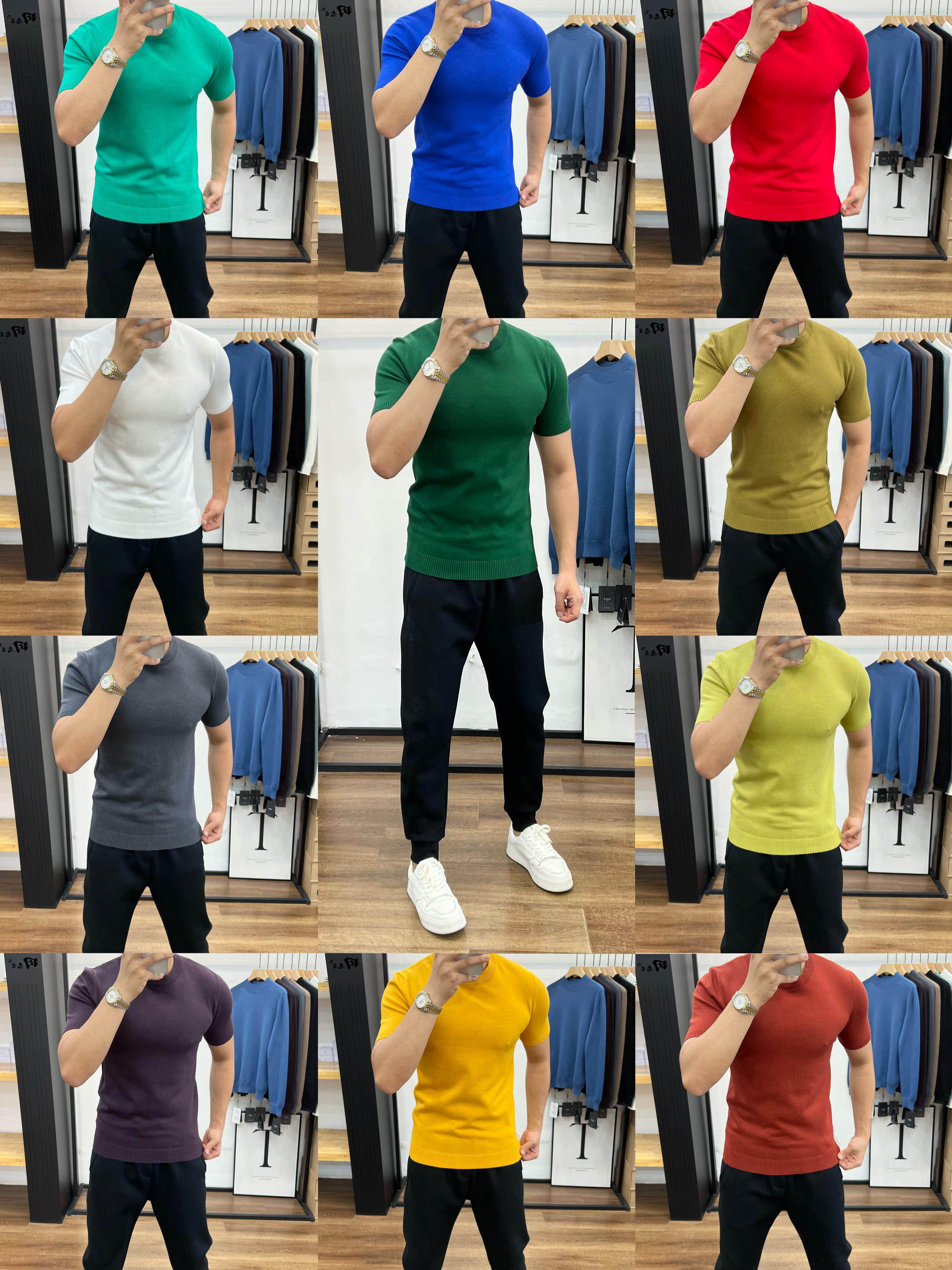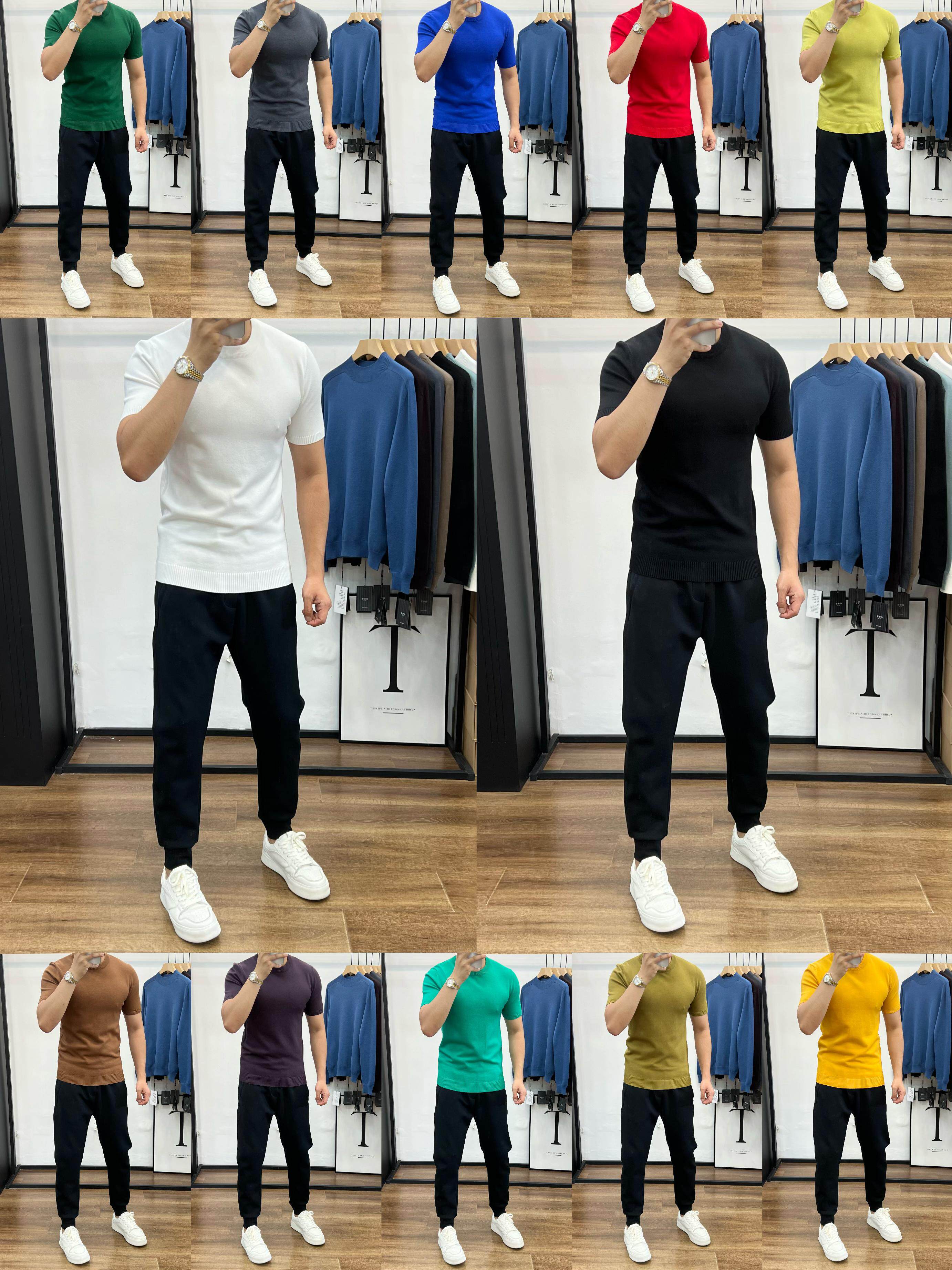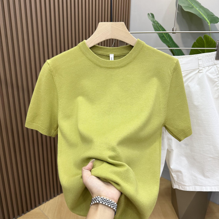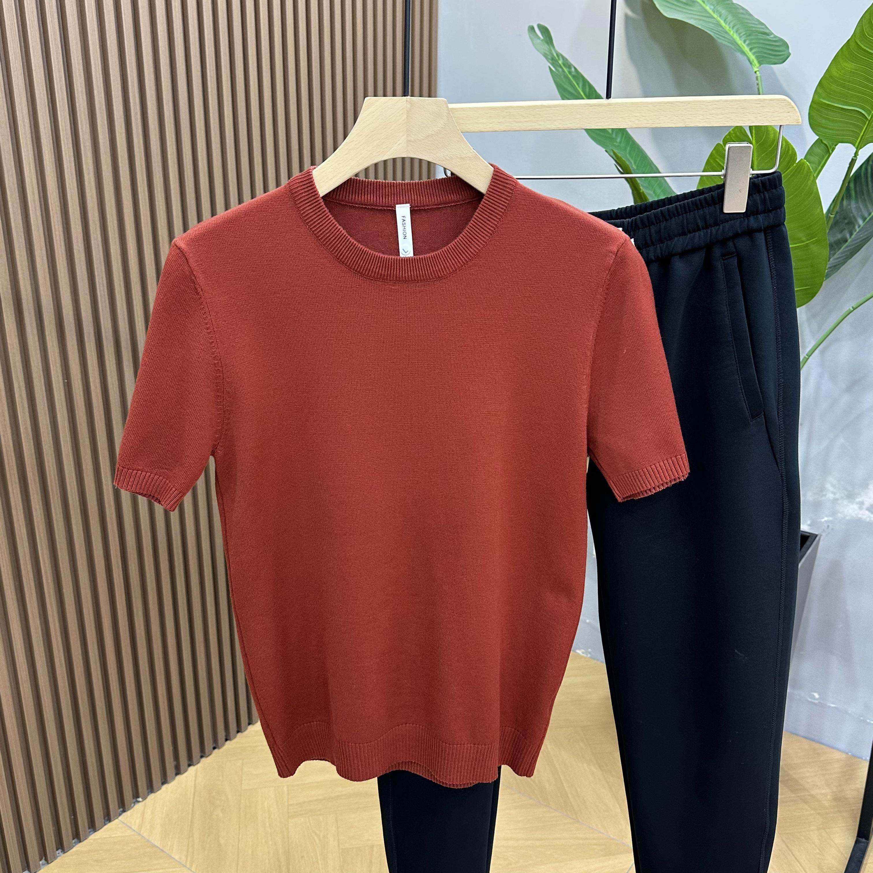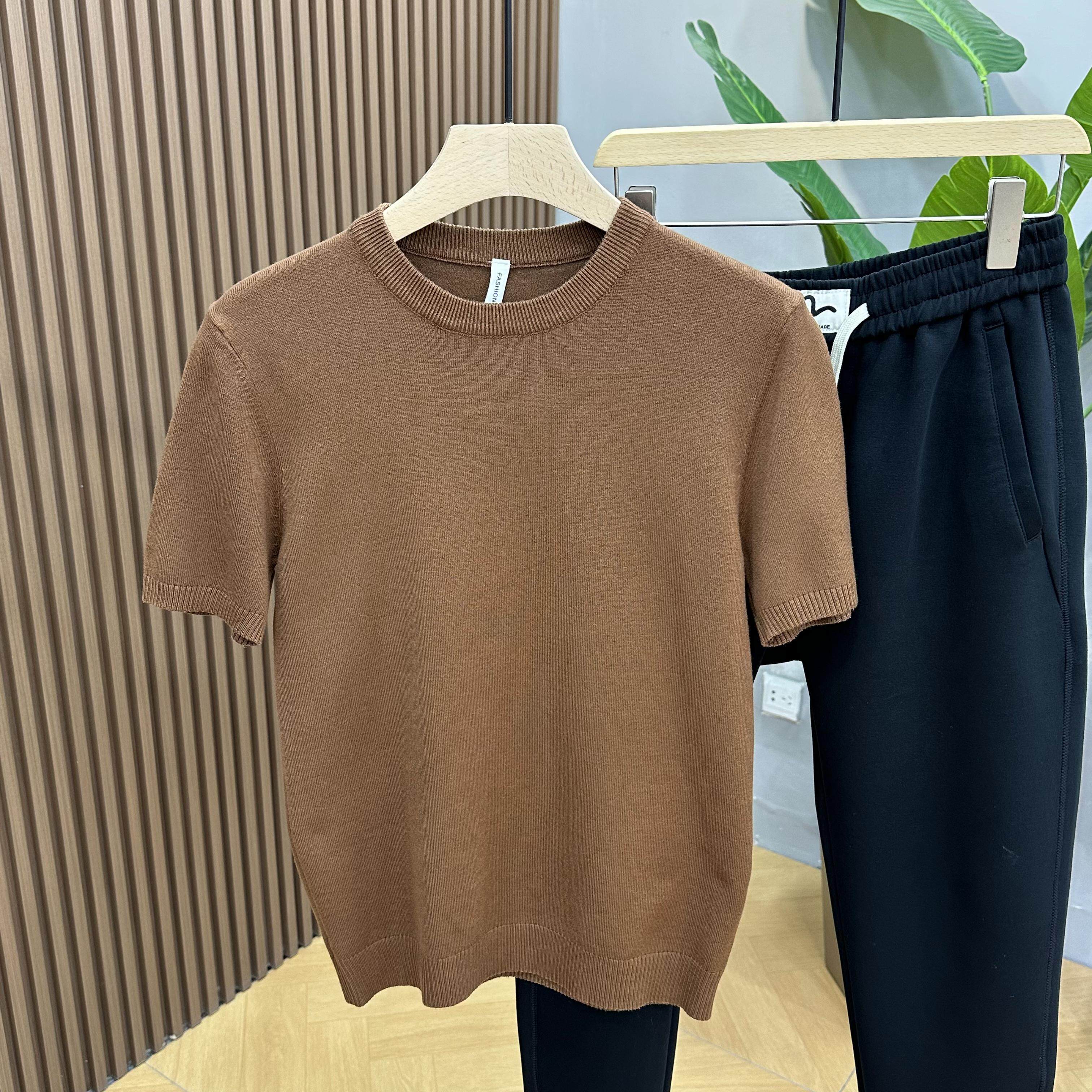 春秋季韓版潮流圓領毛衣情侶寬松百搭針織毛衫男士打底半袖針織衫