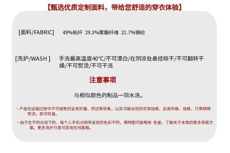 | 材質成分 | 粘膠纖維(粘纖)49.0% 聚酯纖維29.3% 聚醯胺纖維(錦綸)21.7% |
