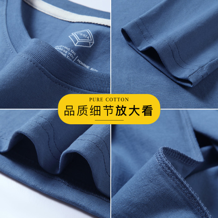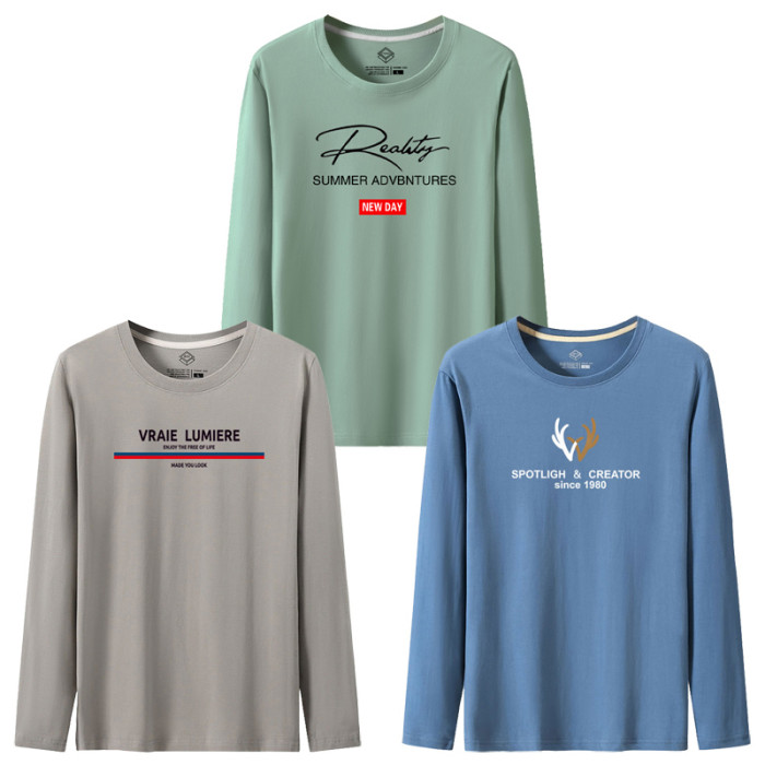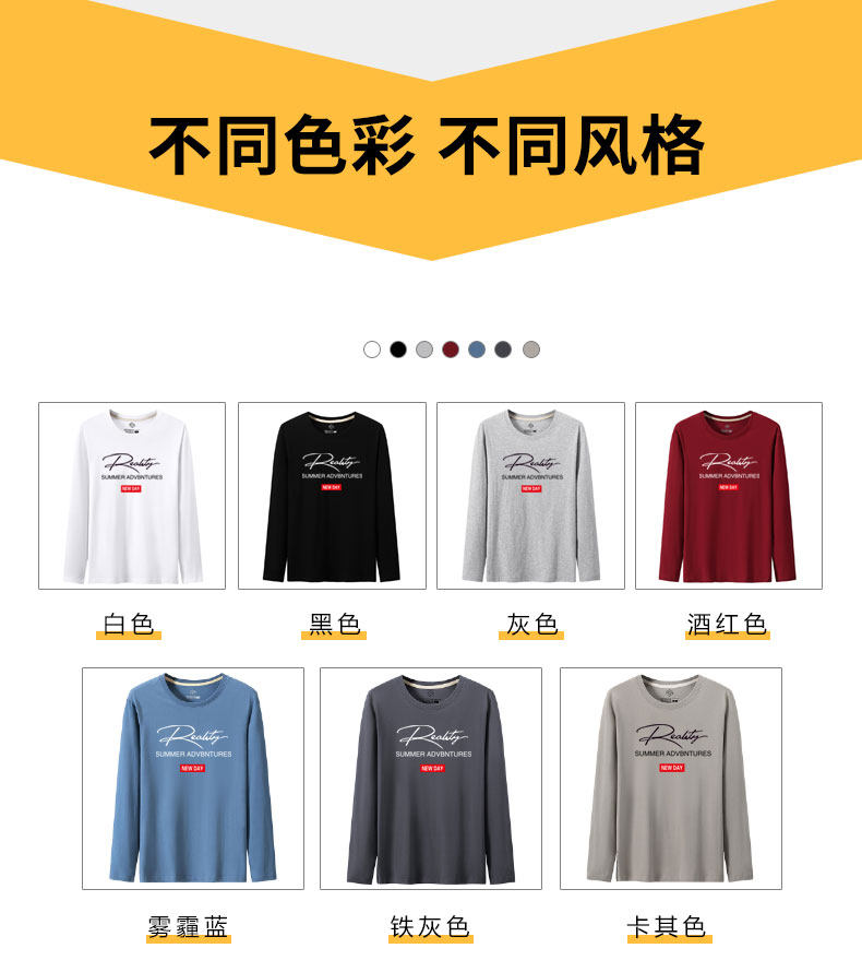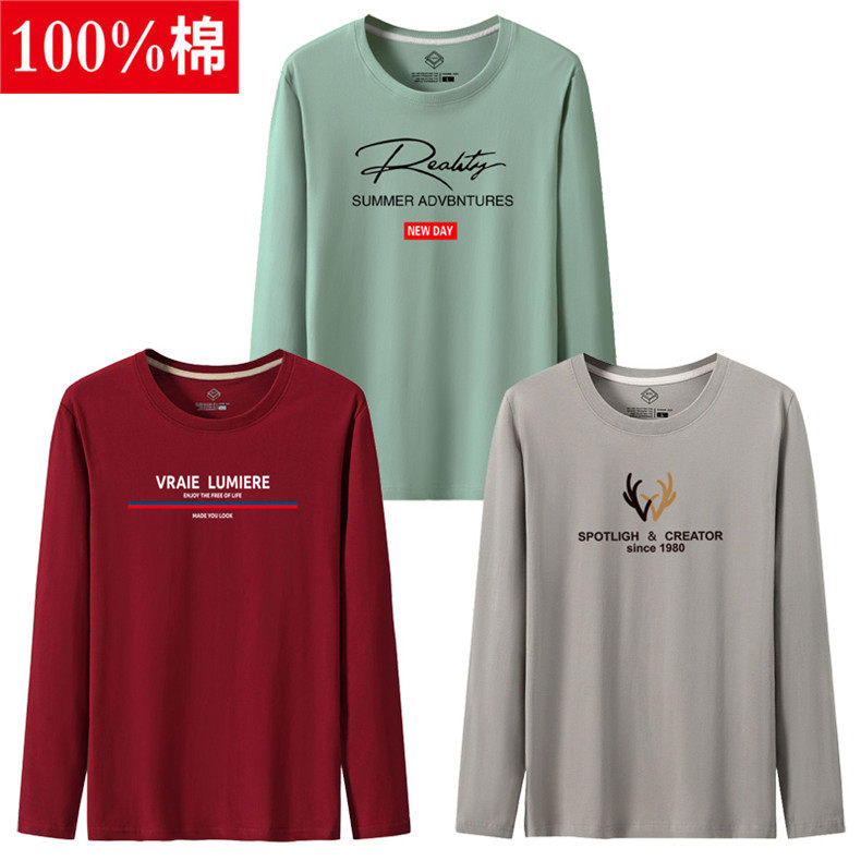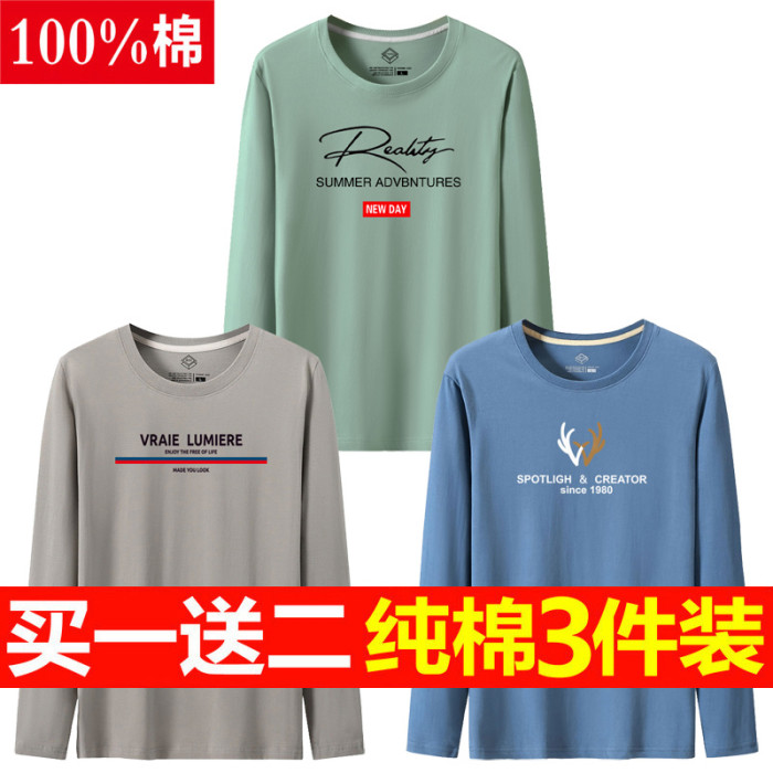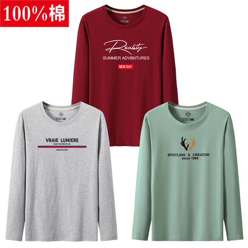 3件】純棉t恤男長袖寬松圓領薄款潮流個性體恤秋衣全棉打底衫男潮