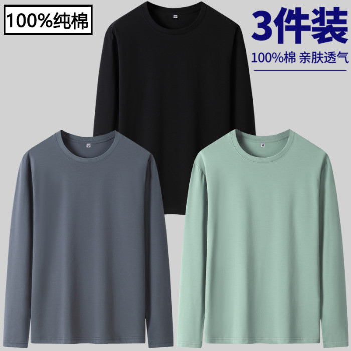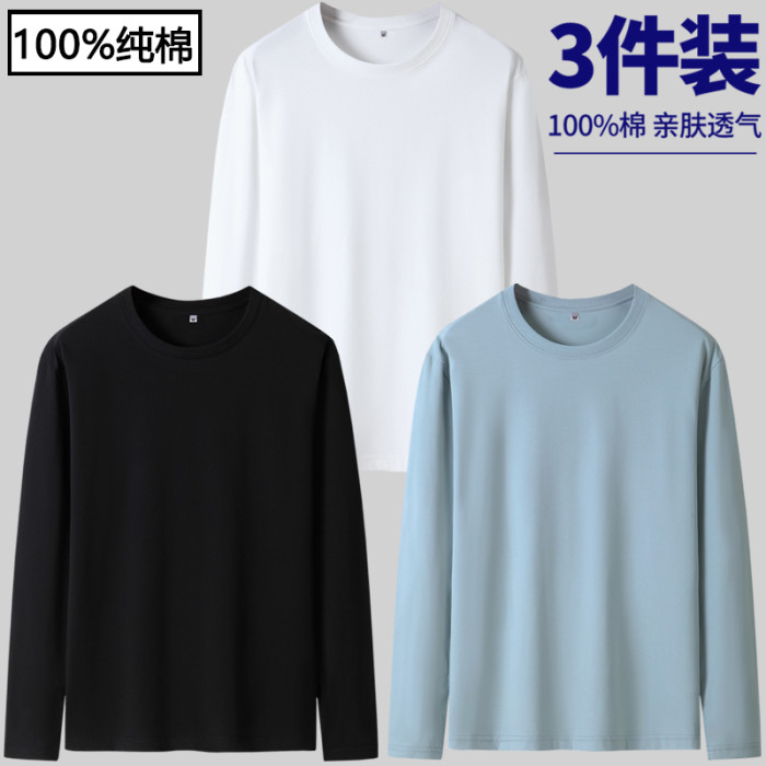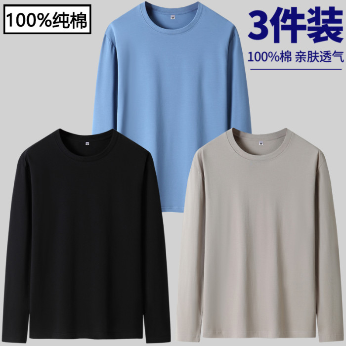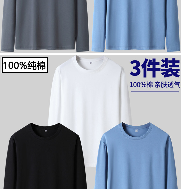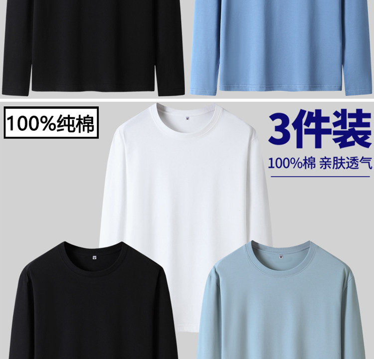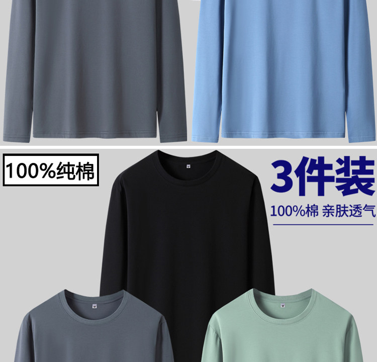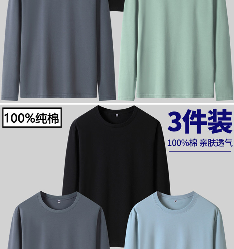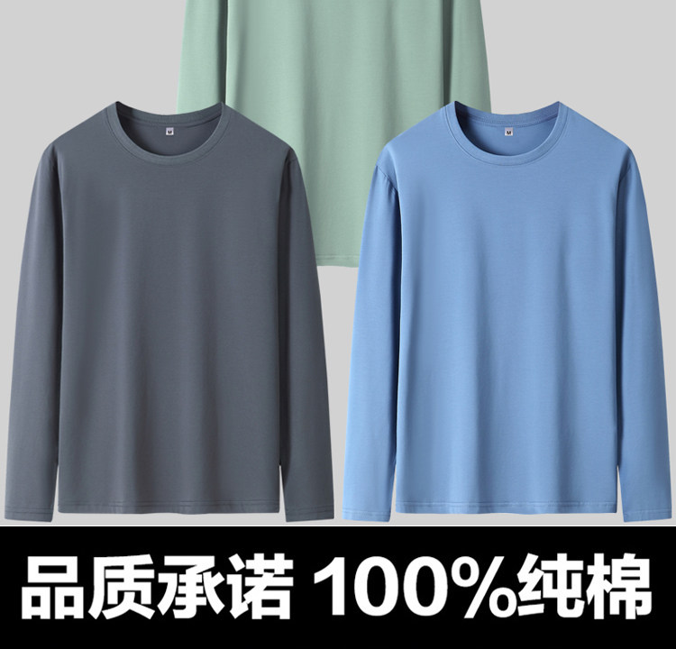 純色長袖t恤男士純棉圓領寬松百搭全棉薄款上衣男裝衛衣打底衫潮T