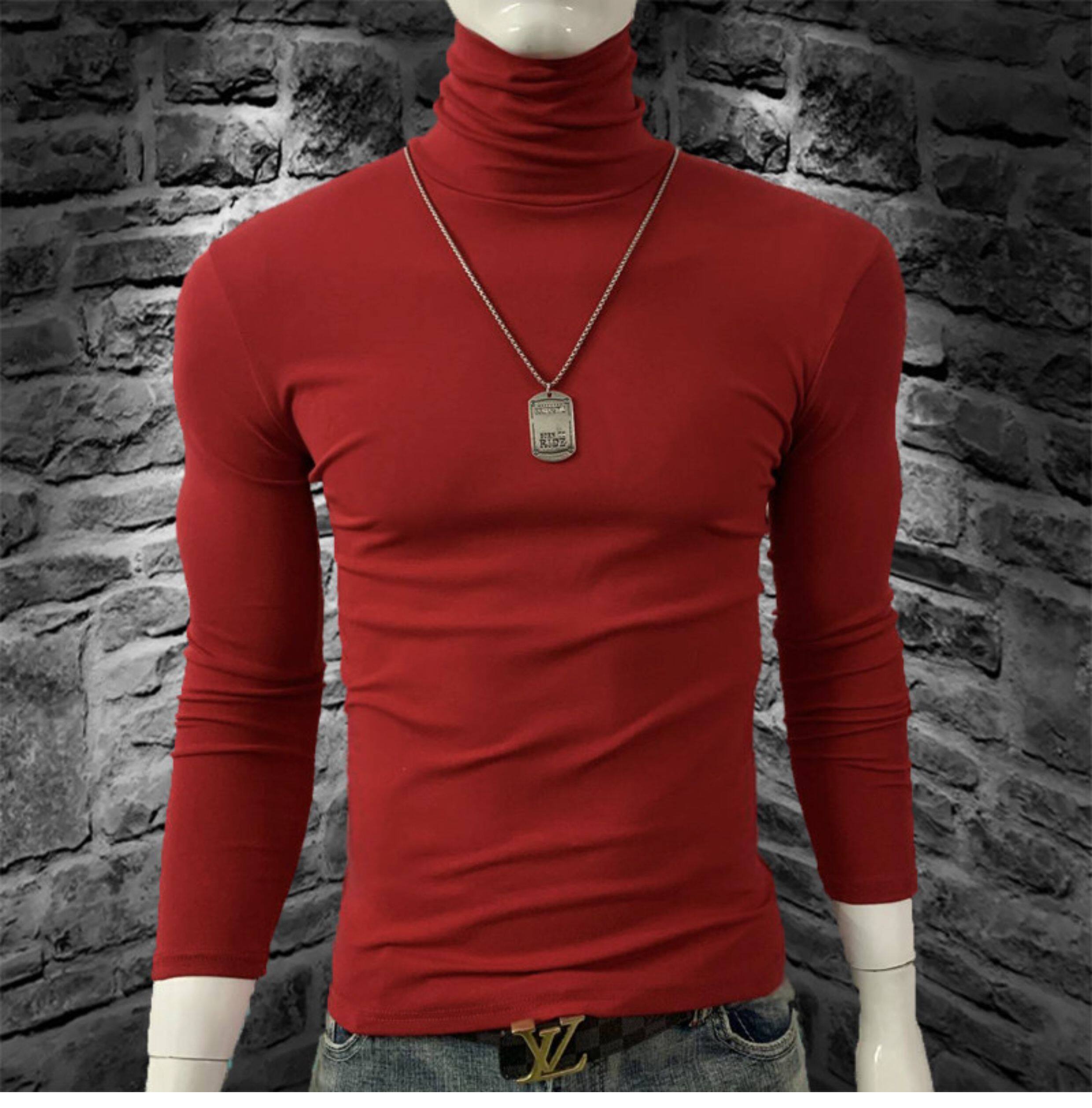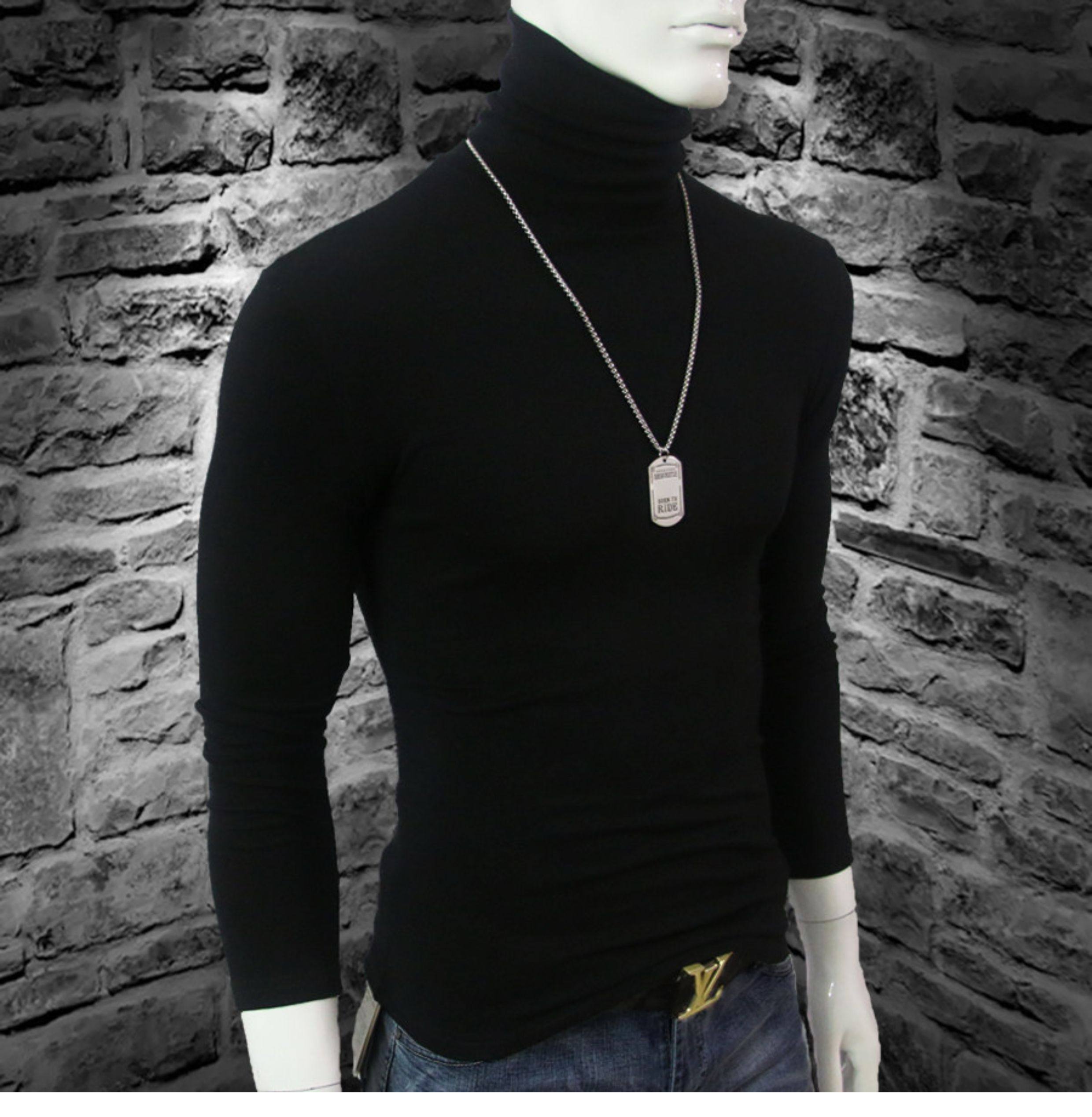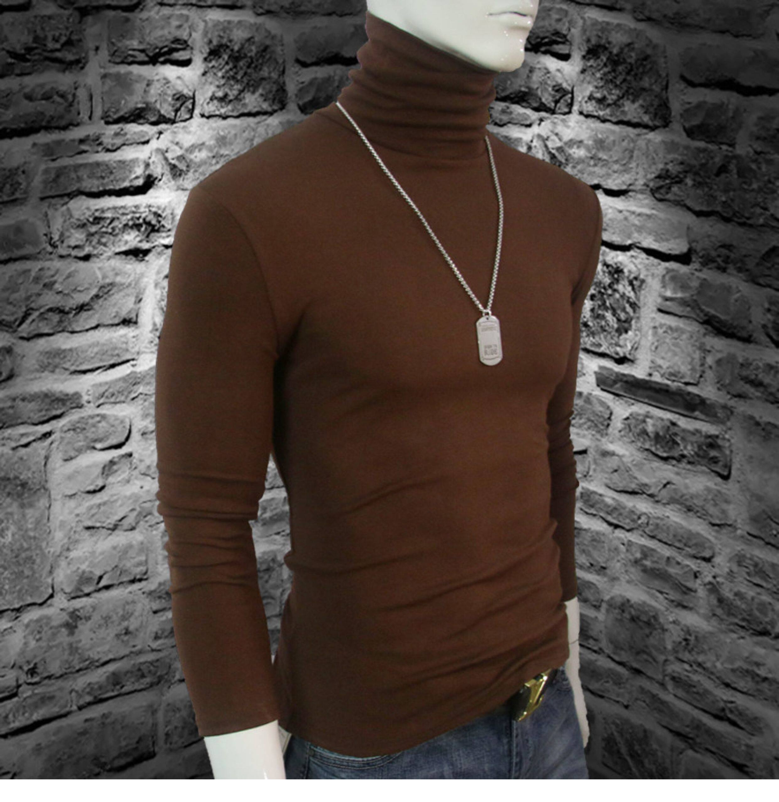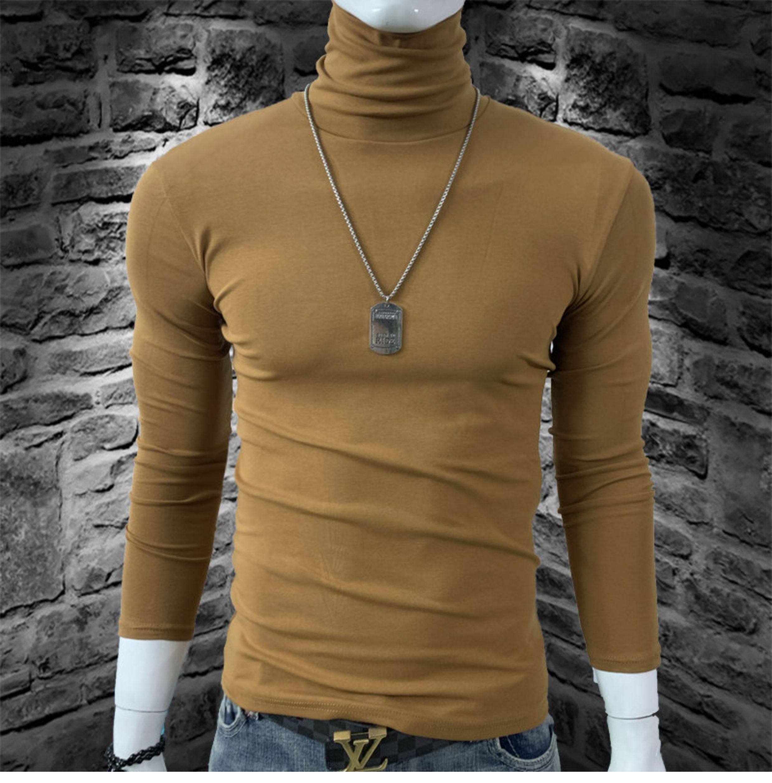 高領打底衫男士長袖T恤純棉純色緊身秋衣內衣保暖上衣服內搭秋冬