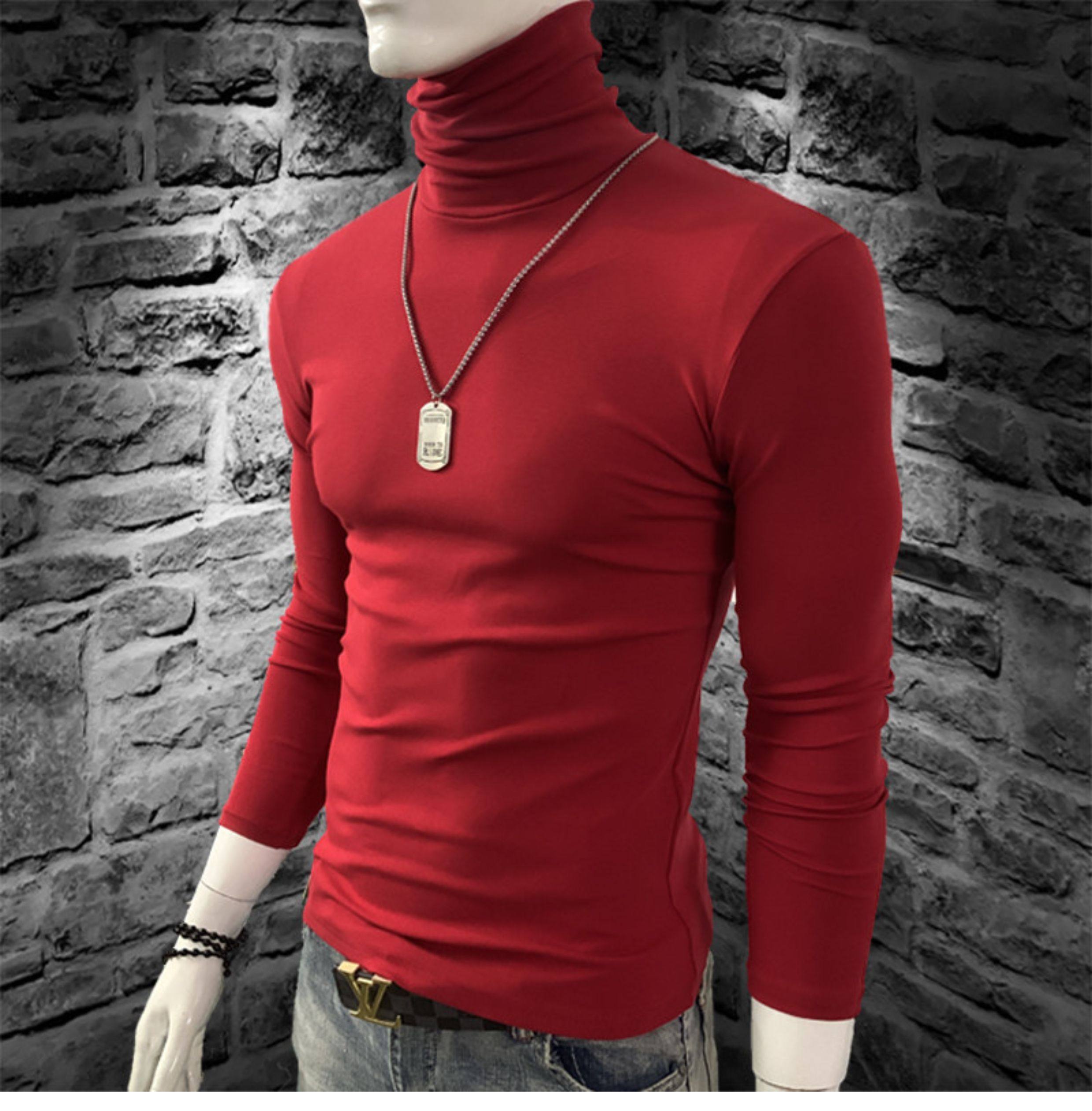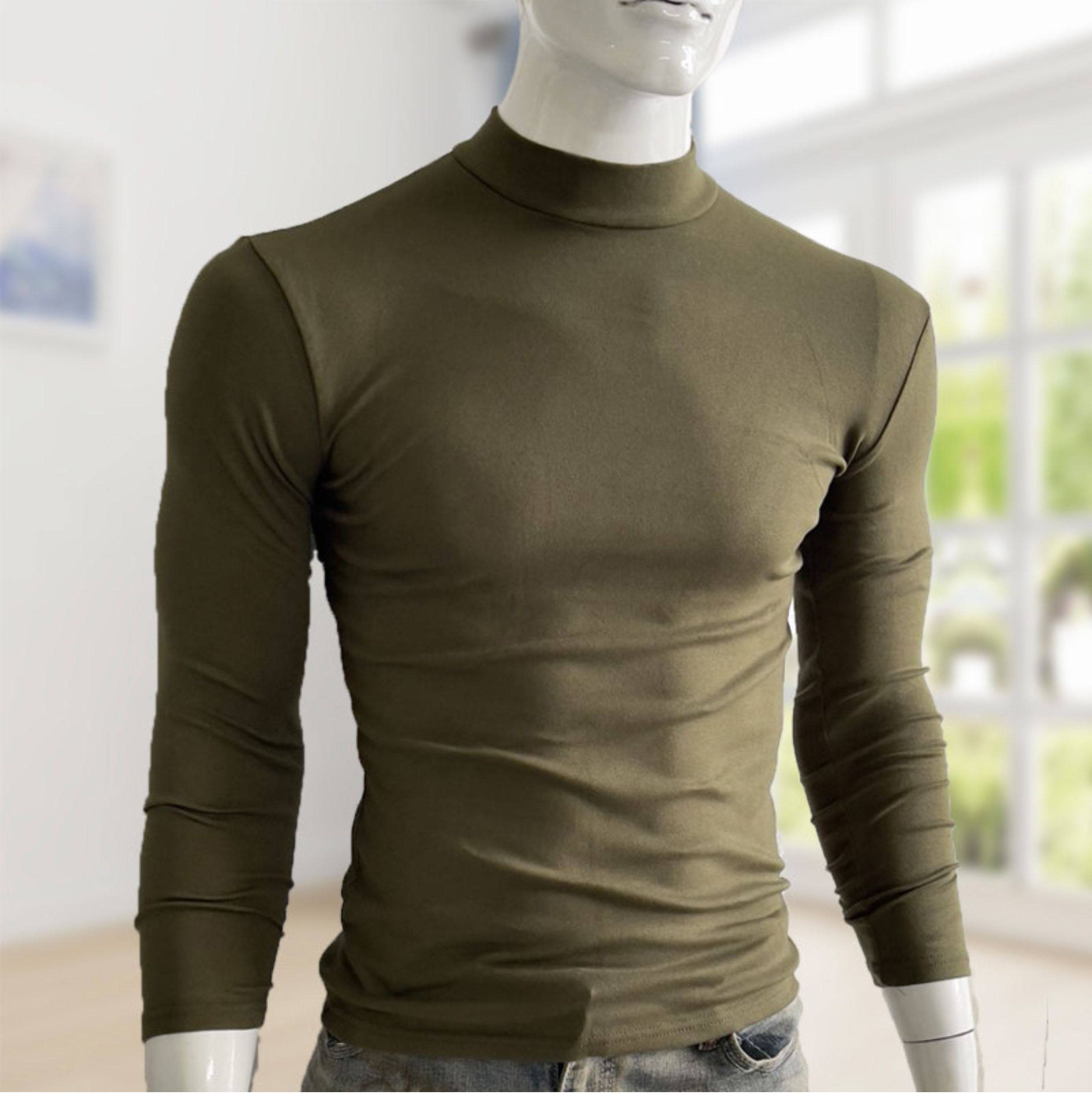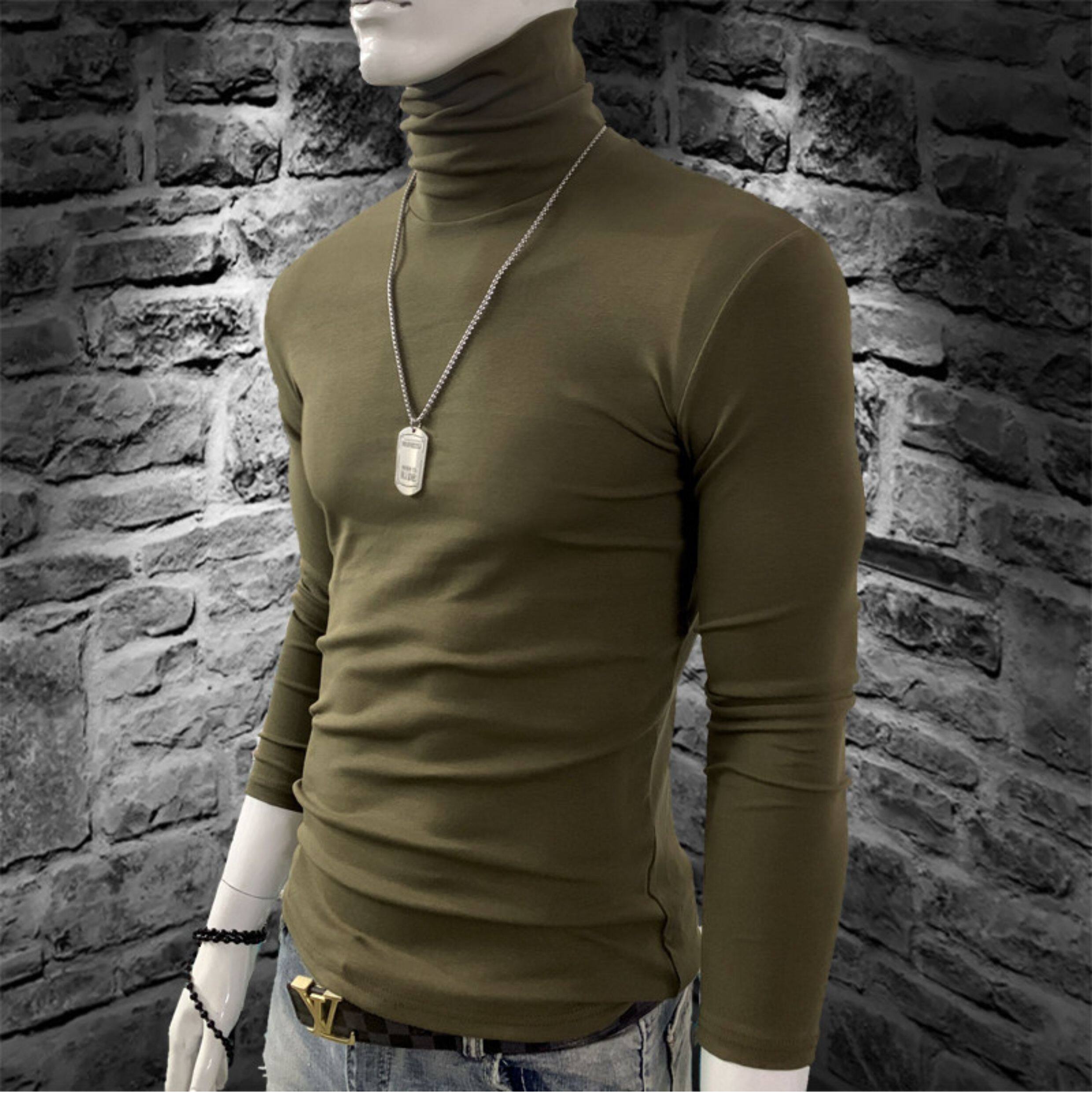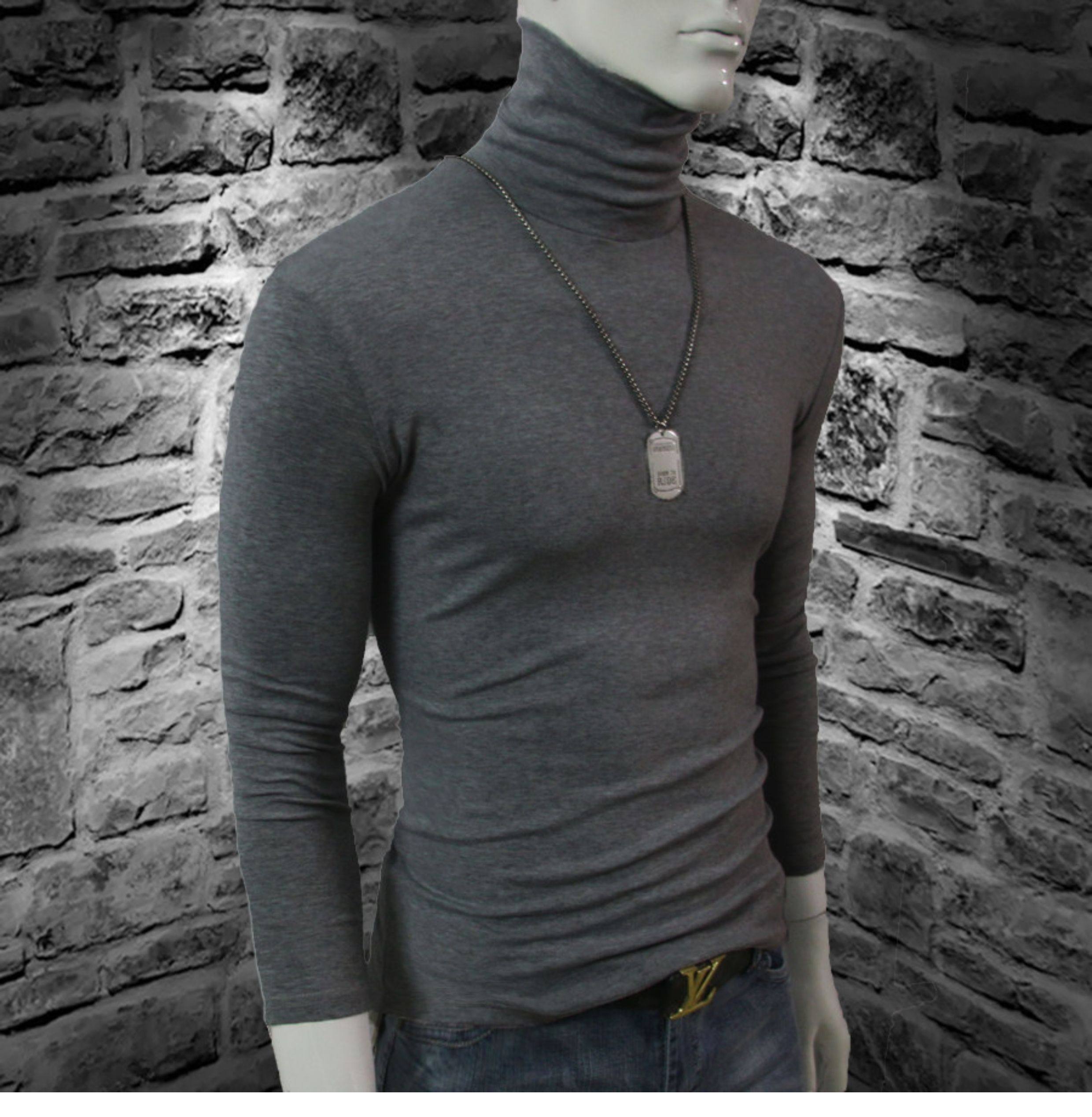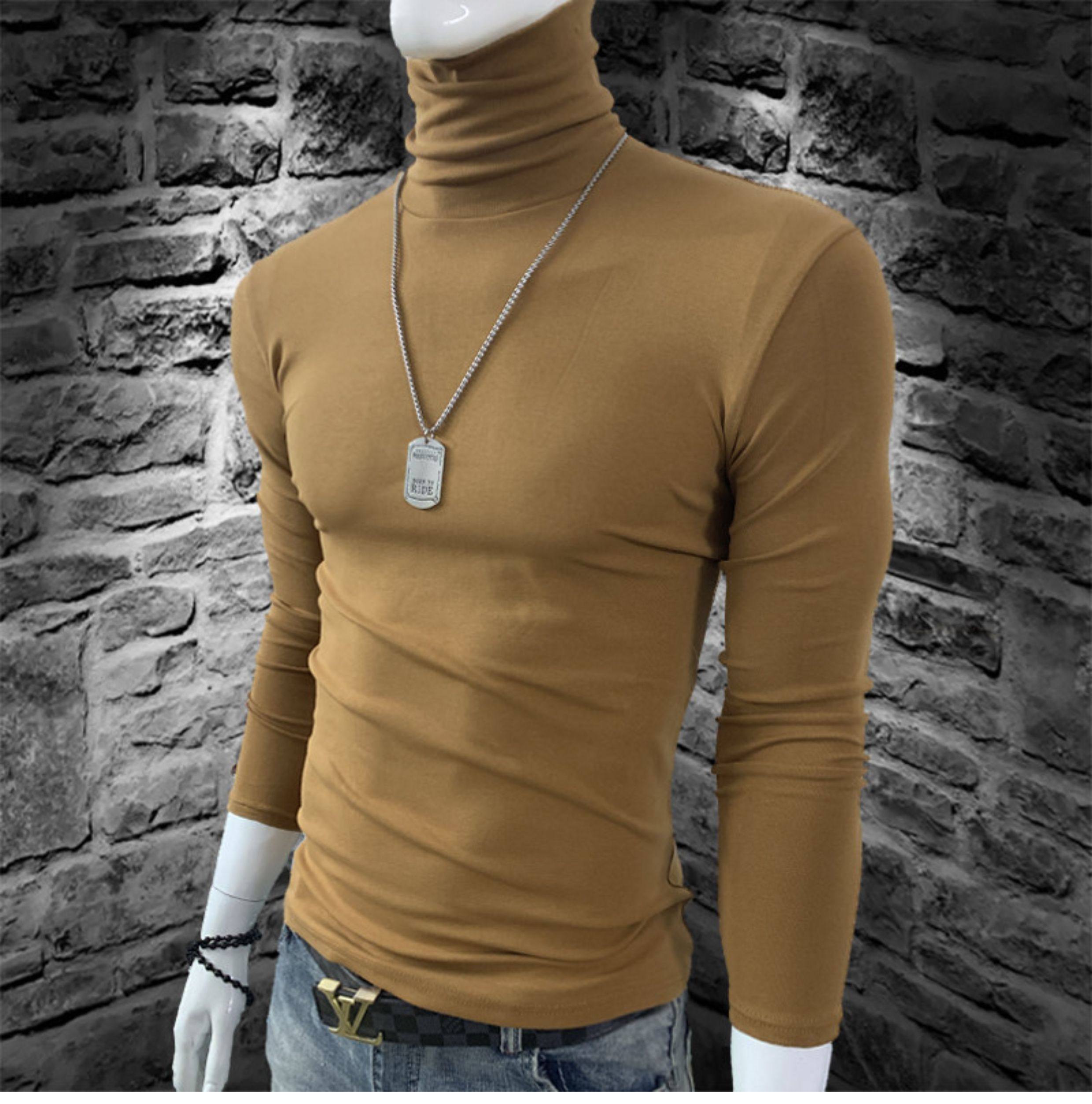 高領打底衫男士長袖T恤純棉純色緊身秋衣內衣保暖上衣服內搭秋冬