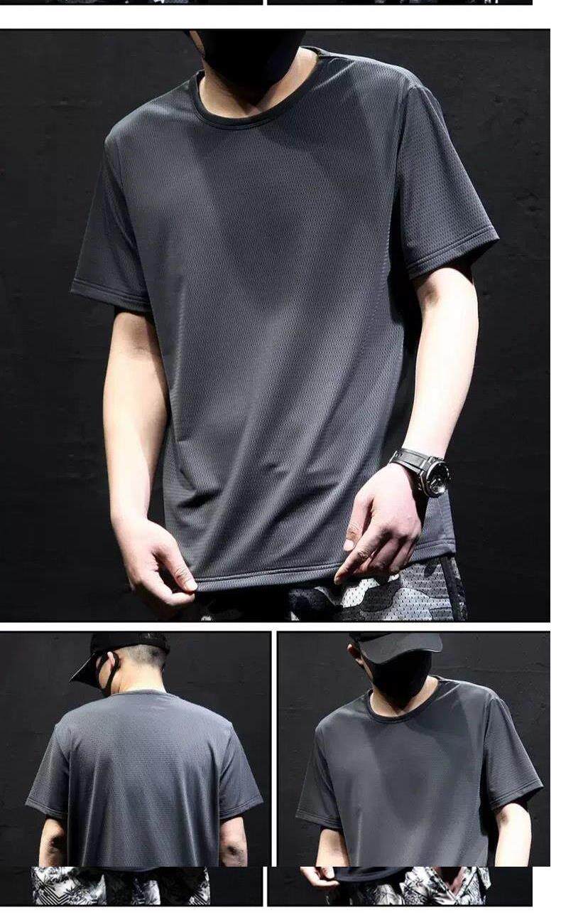 夏季冰絲短袖t恤男超薄速乾透氣男士短袖寬松大碼百搭休閒運動T恤