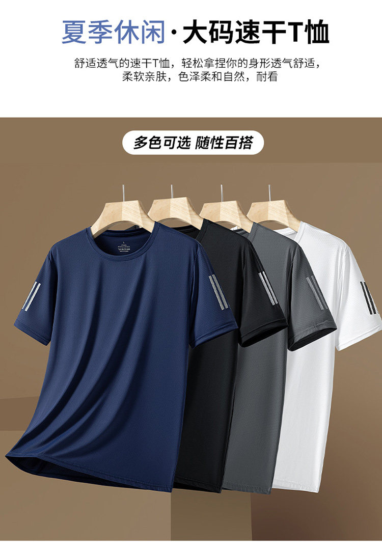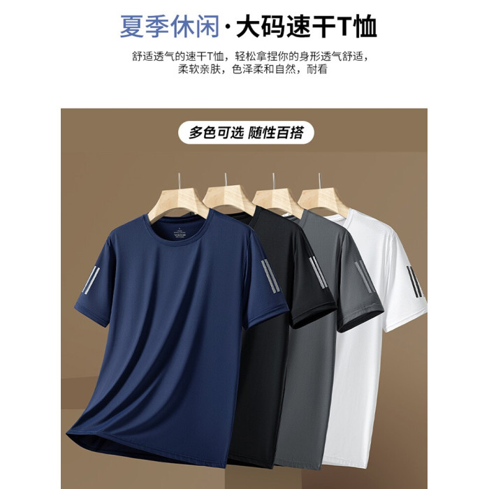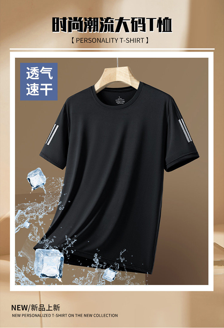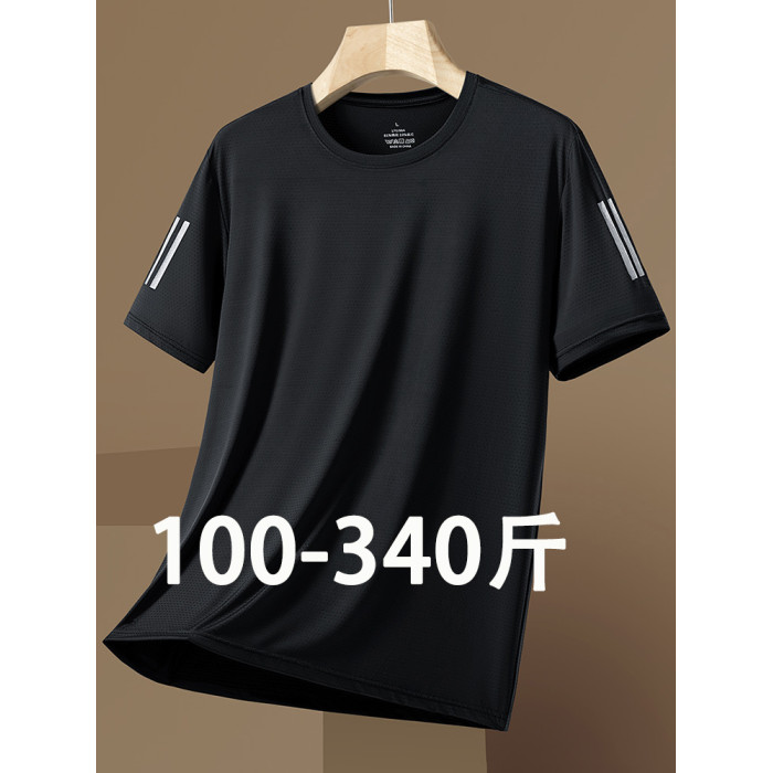 夏季男士短袖t恤300斤加肥加大碼胖子冰絲滑料半袖男速乾運動體恤