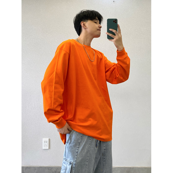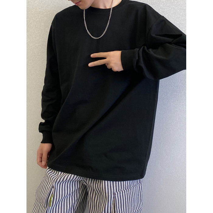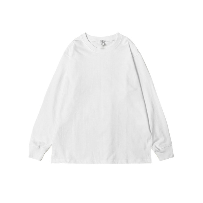 重磅高級潮牌純棉白色純色寬松圓領打底衫長袖T恤男內搭上衣服白t