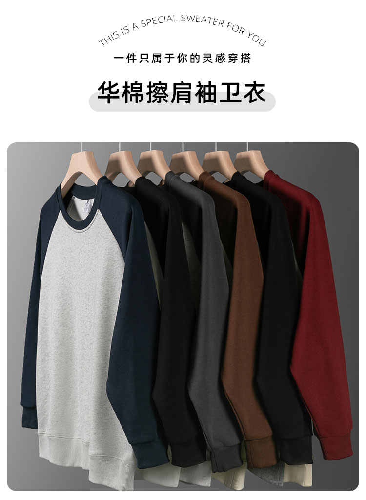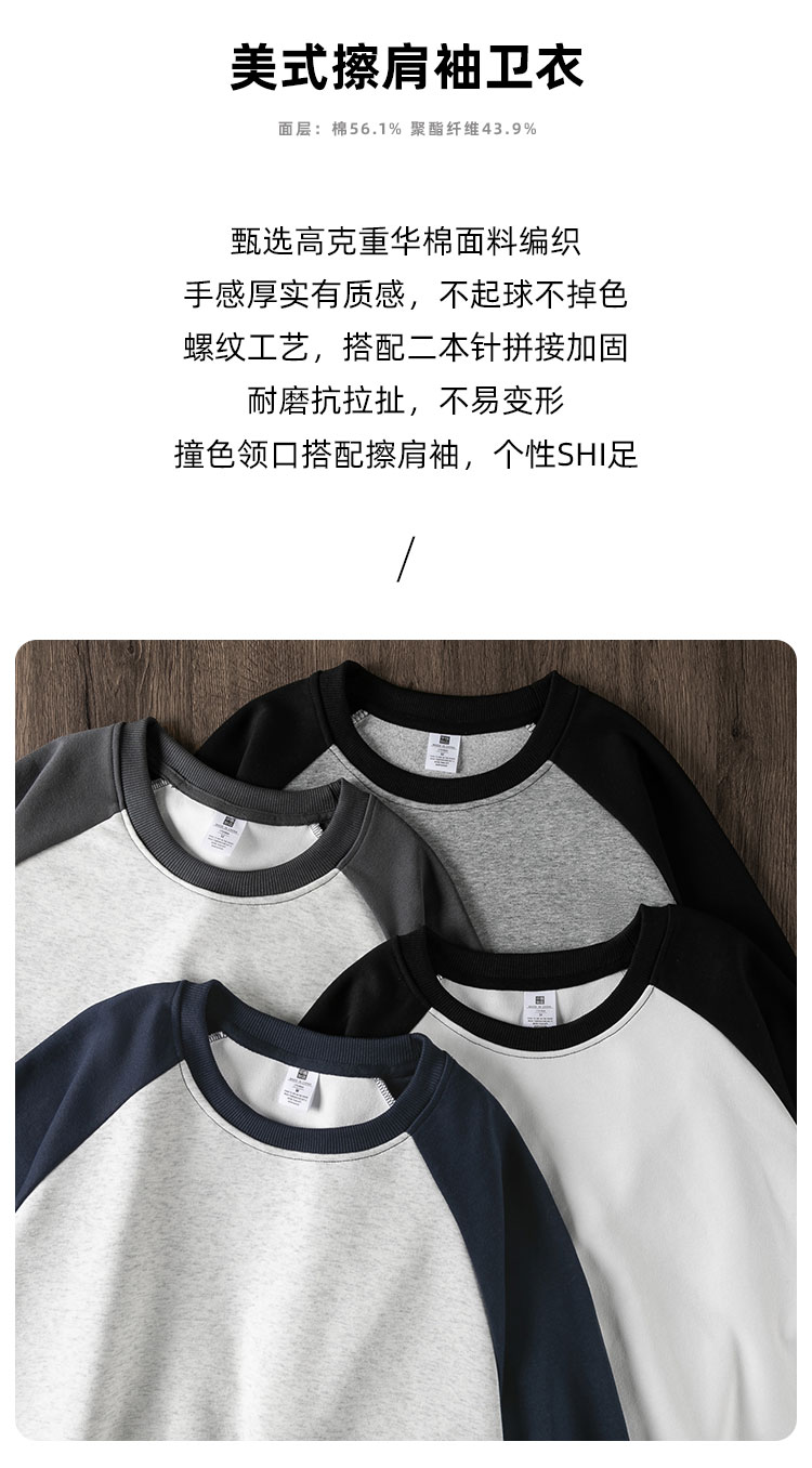 華棉高品質!重磅插肩袖圓領衛衣男女秋季百搭美式復古休閒上衣服