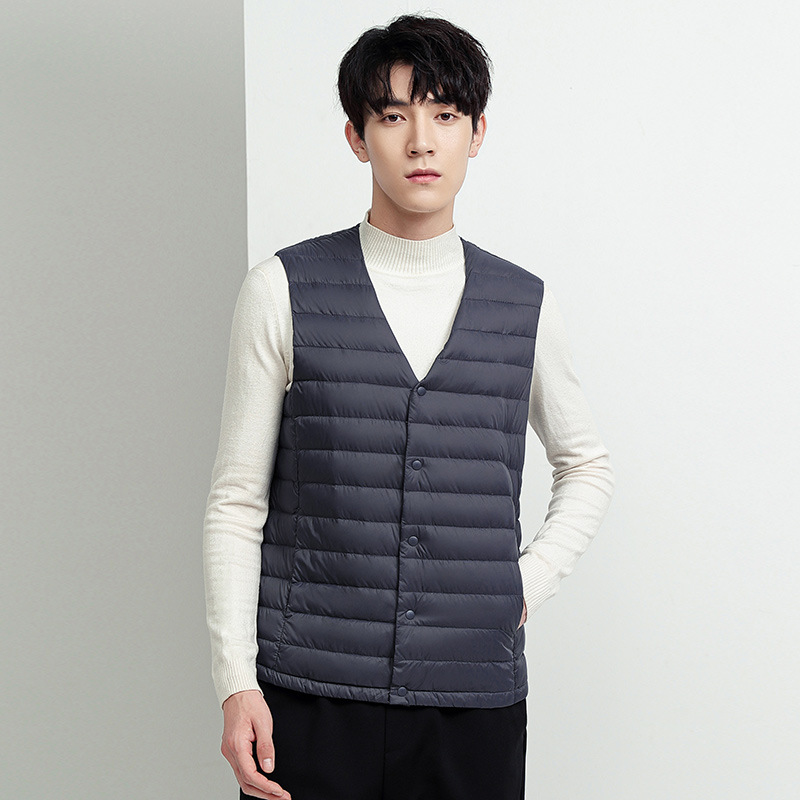 單秋冬新款輕薄羽絨馬甲男V領內膽大碼坎肩背心保暖外套