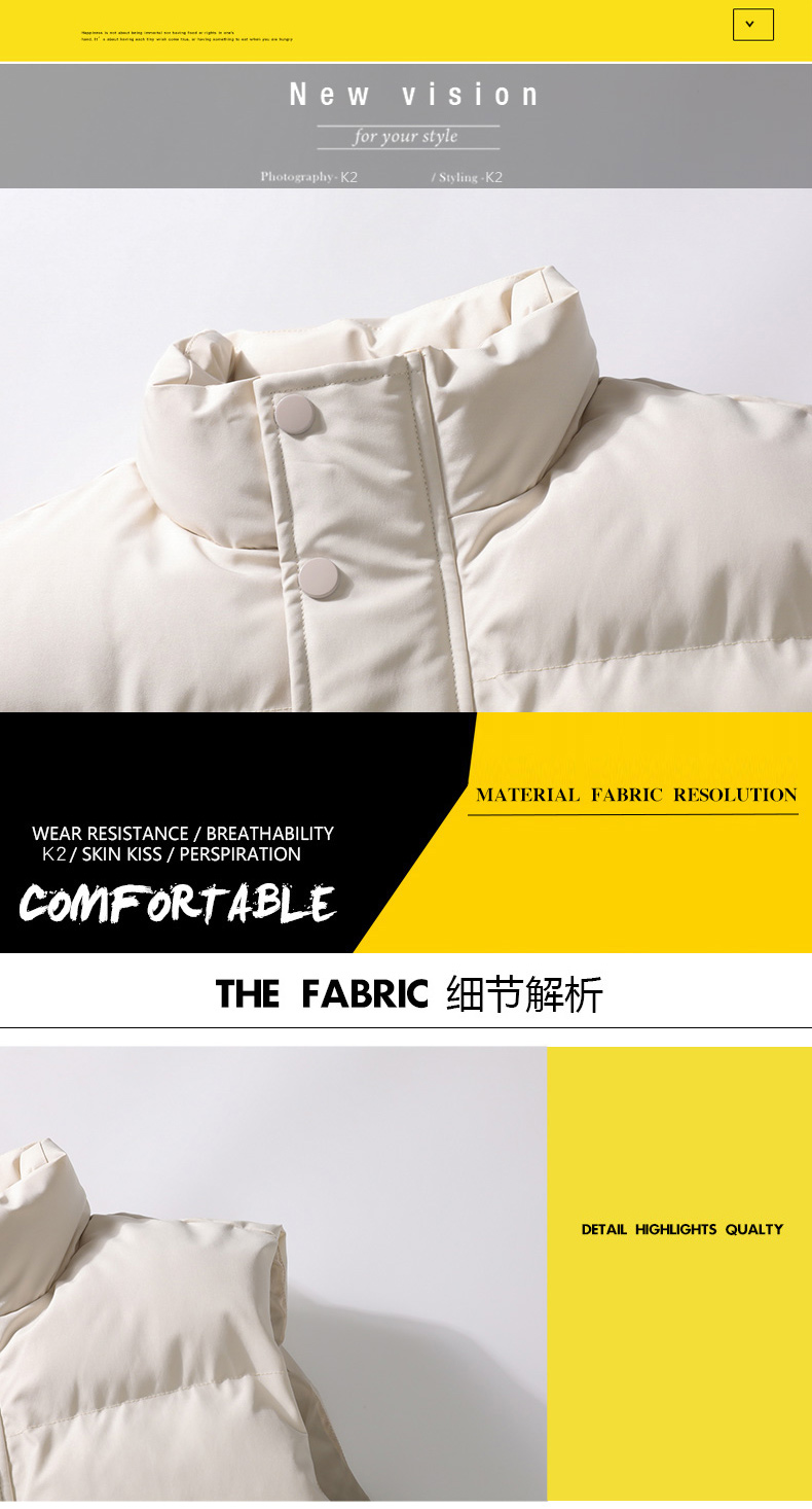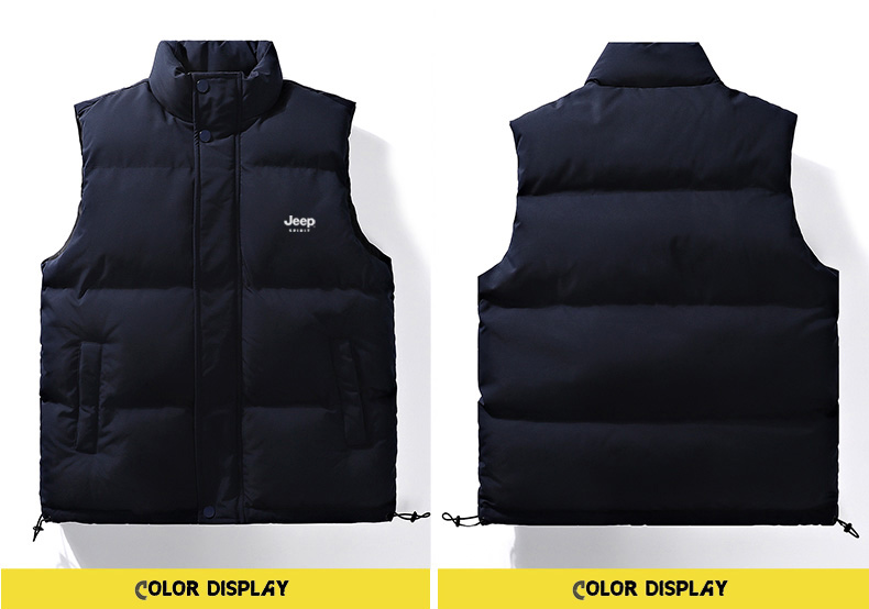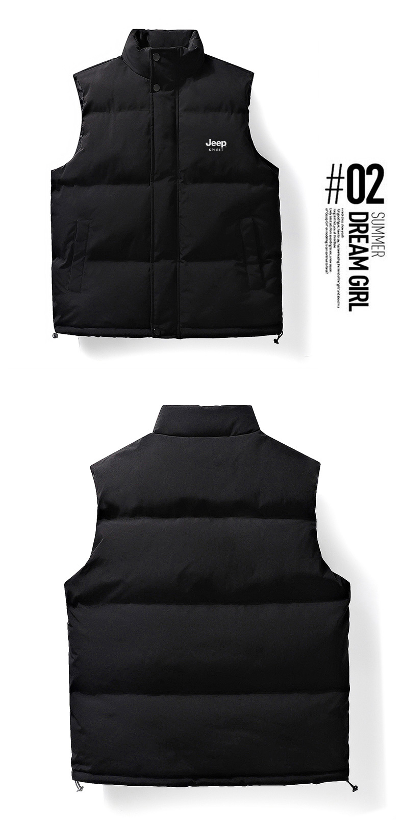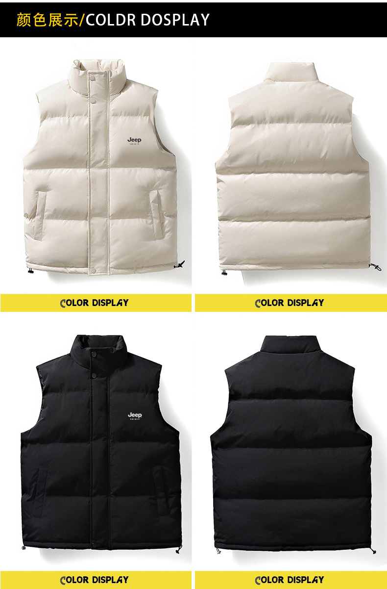 JEEP SPIRIT立領羽絨棉衣馬甲秋冬純色簡約潮牌工裝無袖襖子外套