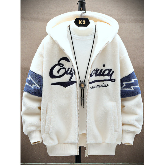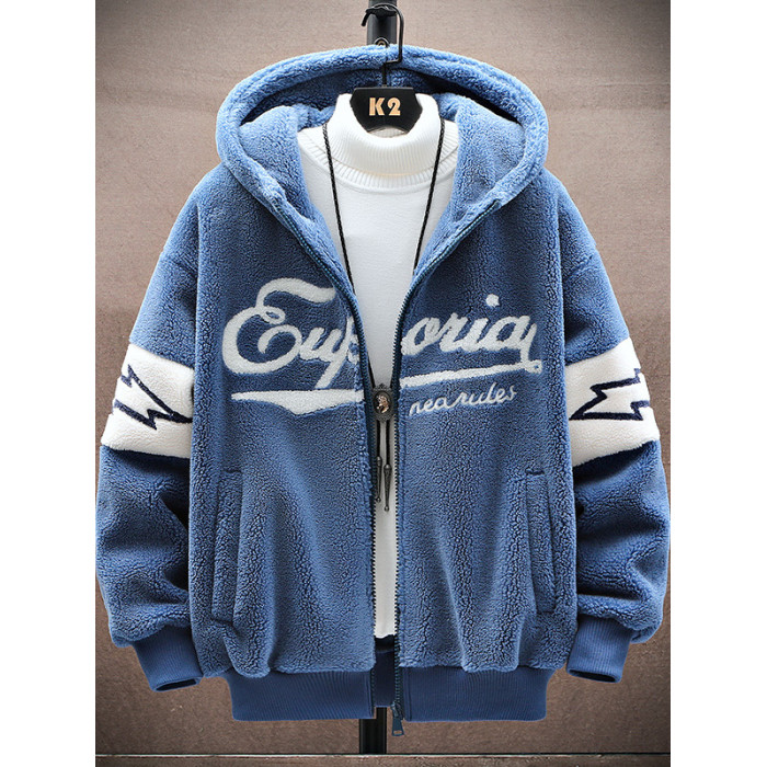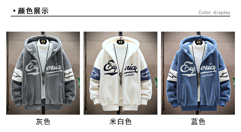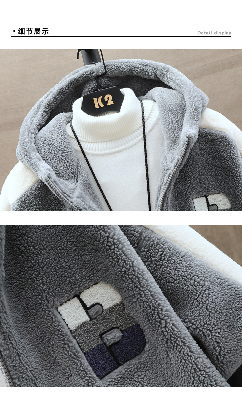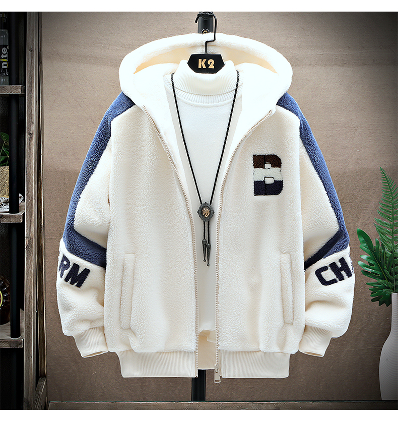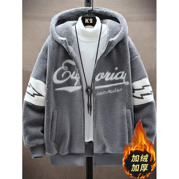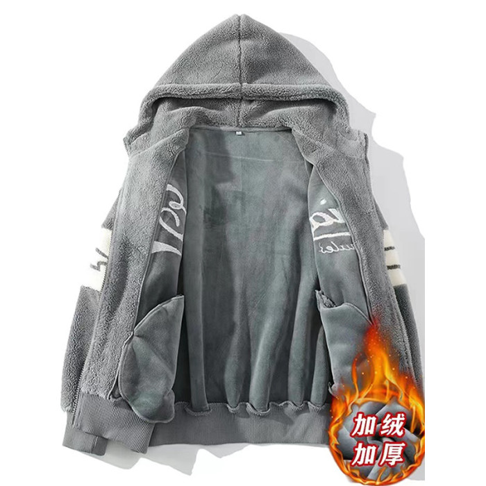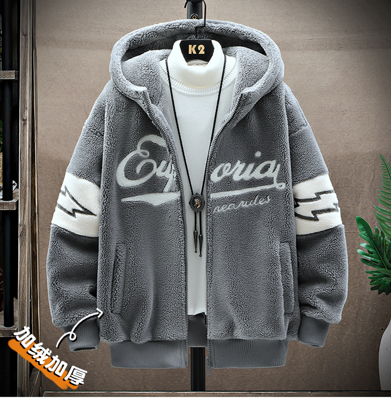 好物羊羔絨外套棉衣男冬季加絨青少年加厚學生保暖時尚連帽寬松潮