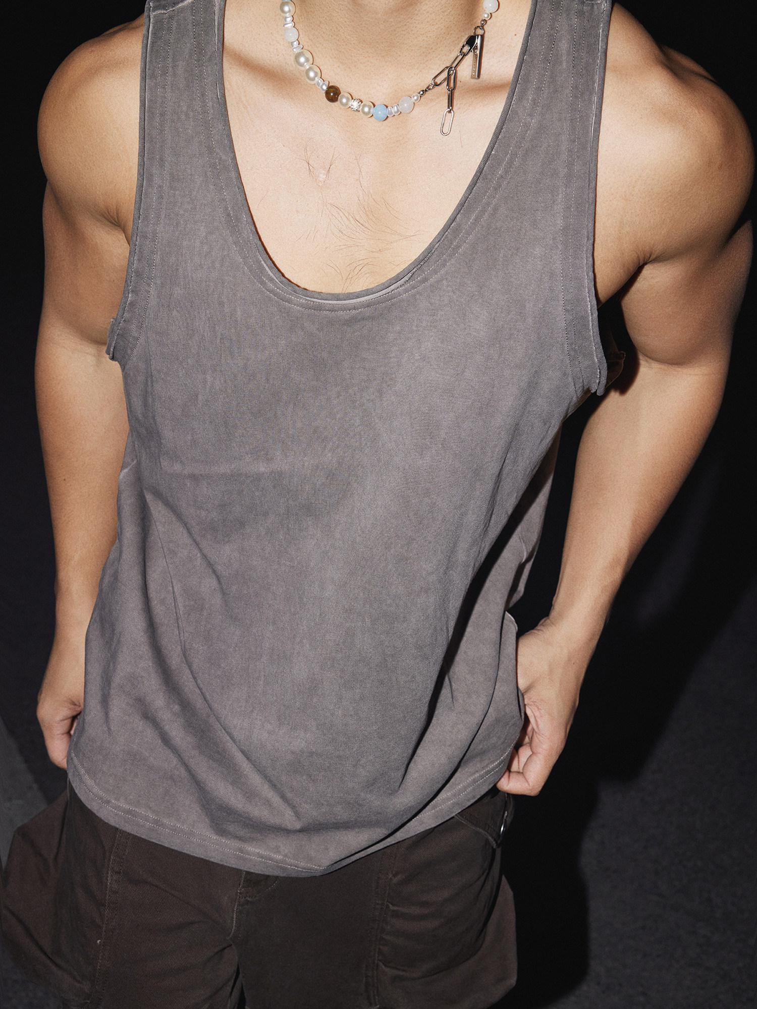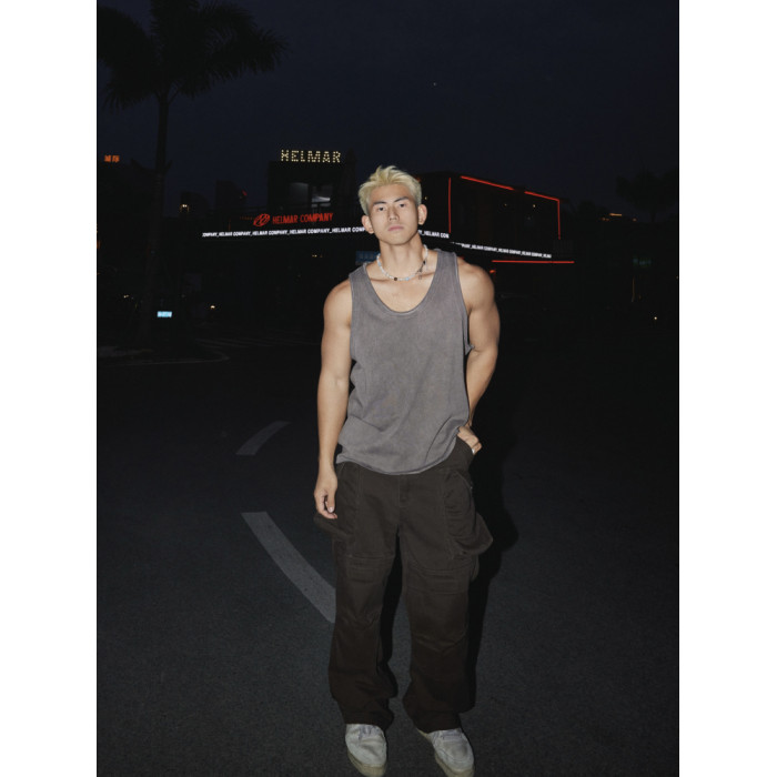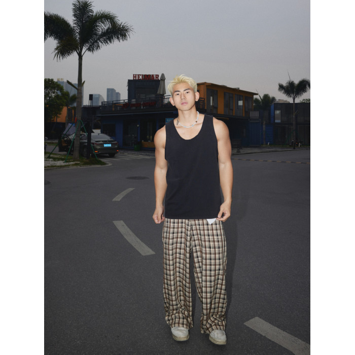 PAPASLILMONSTER美式復古水洗做舊基礎背心男透氣吸汗無袖上衣
