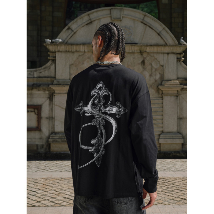 ASEN同款 STK SmallTownKid 黑白十字架長袖T恤 打底內搭美式復古