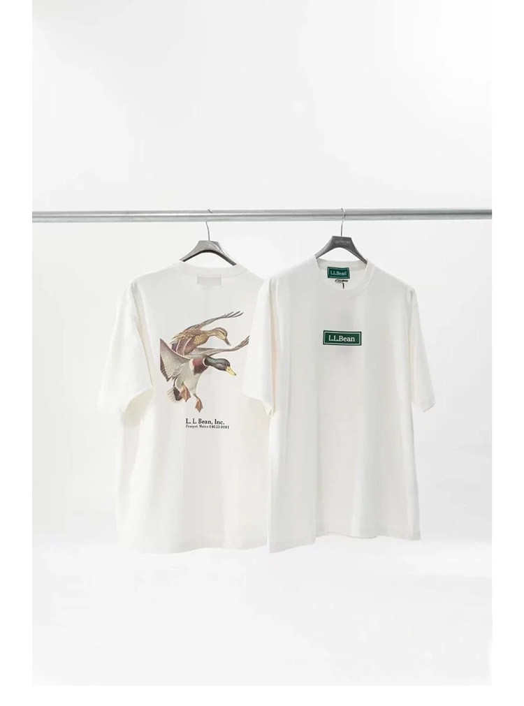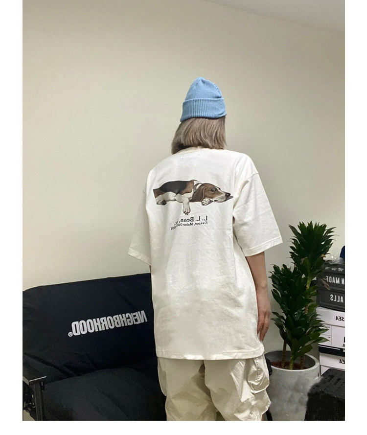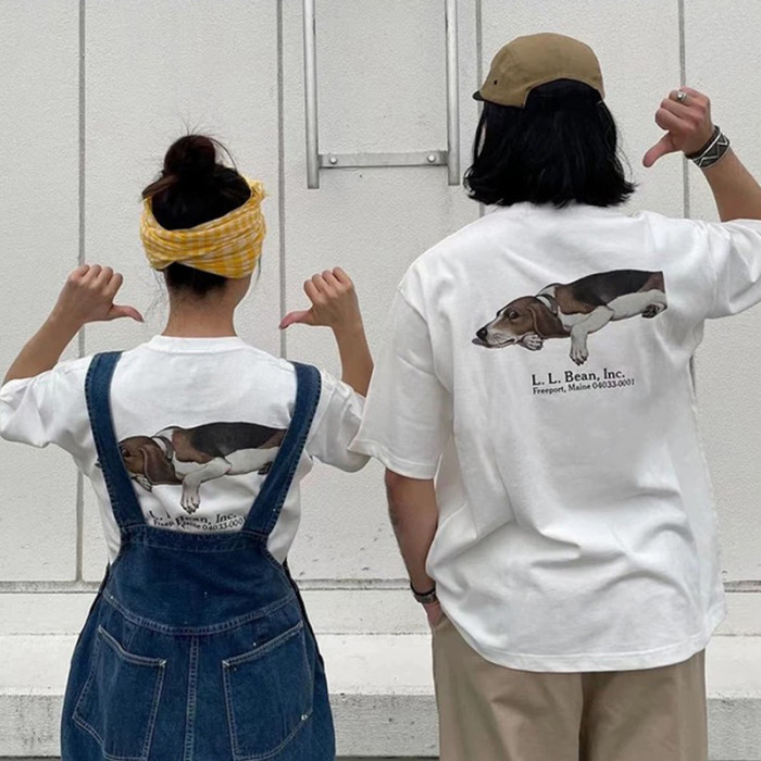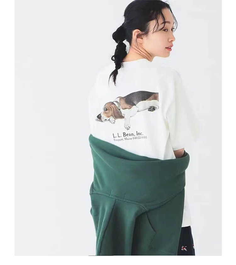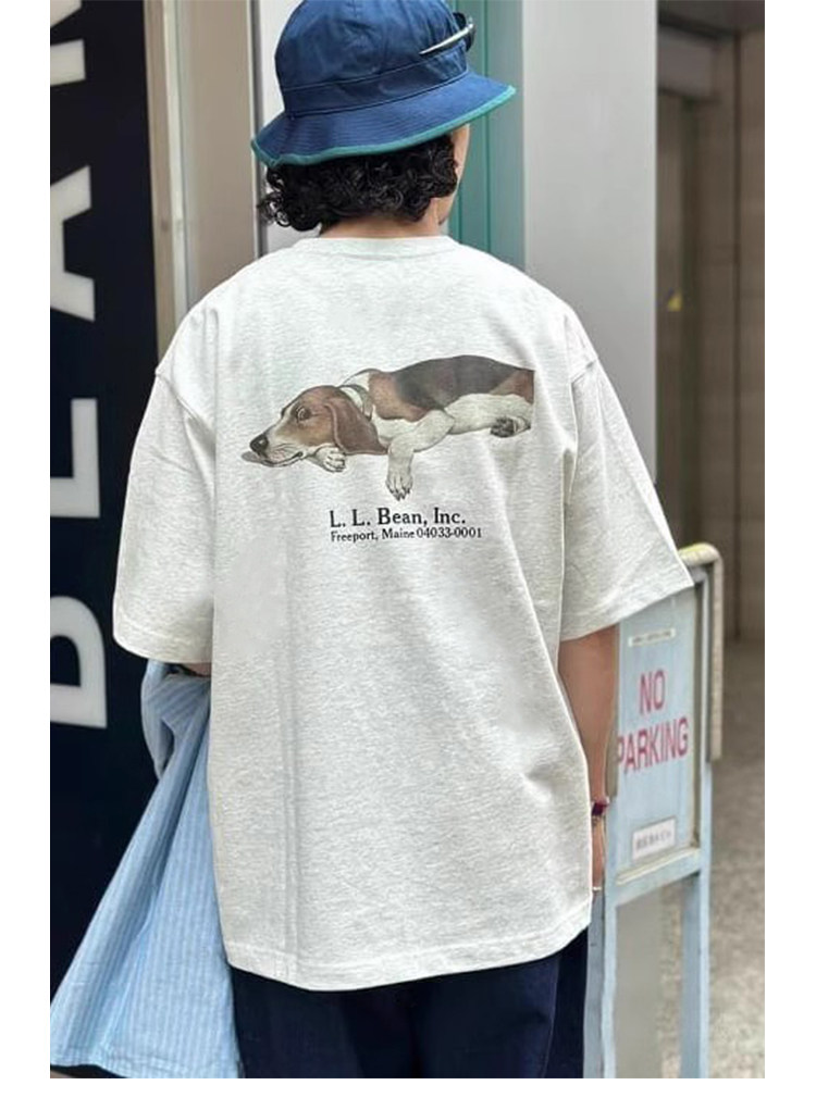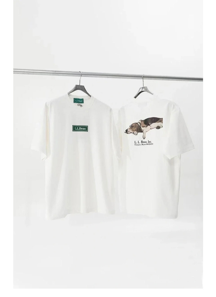 LLBEAN聯名BEAMS日系美式復古動物印花短袖戶外休閒寬鬆情侶裝T恤