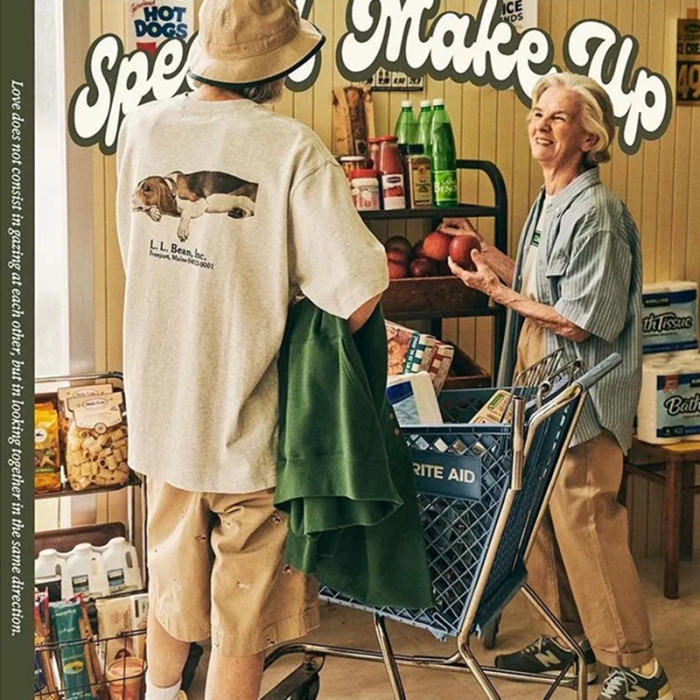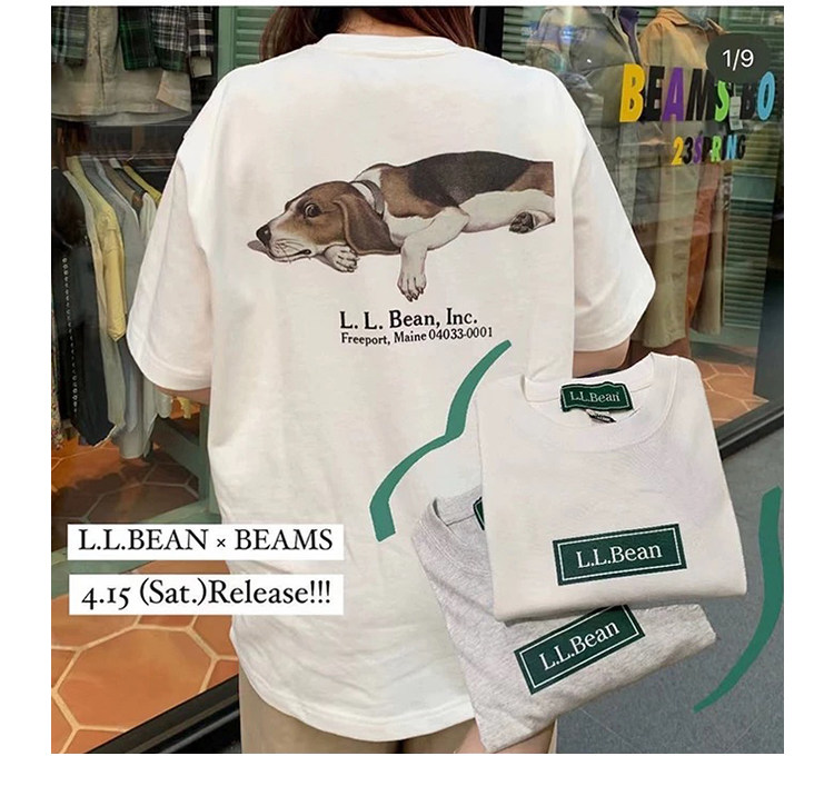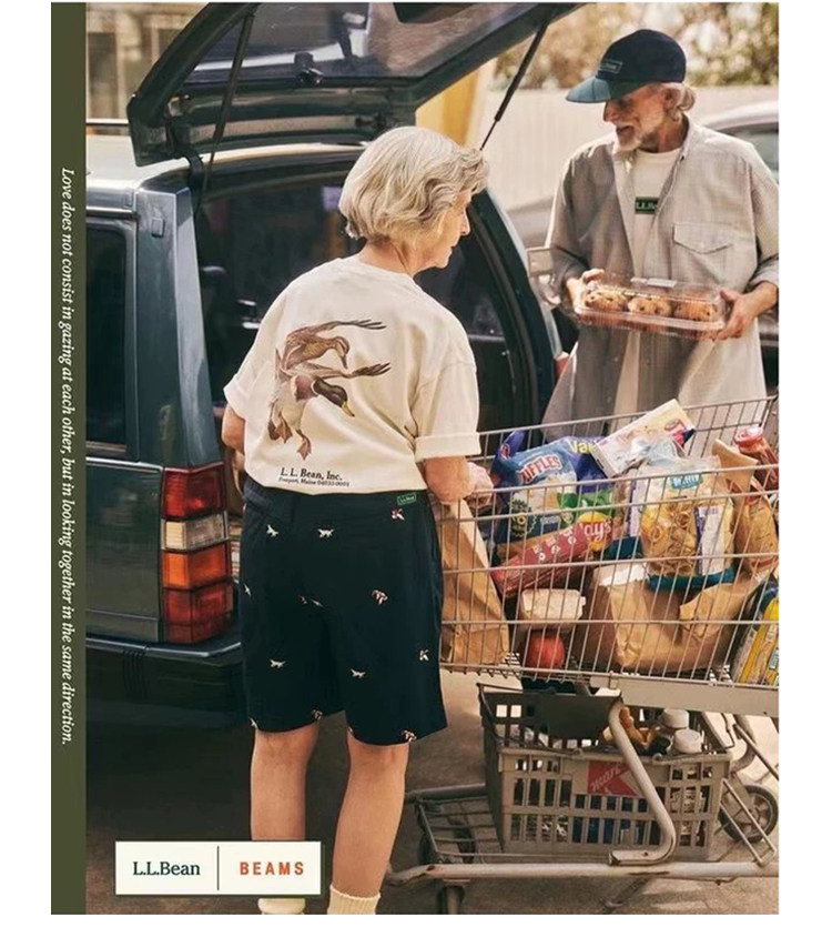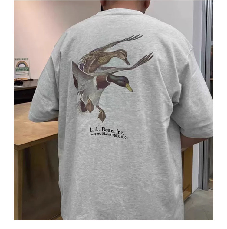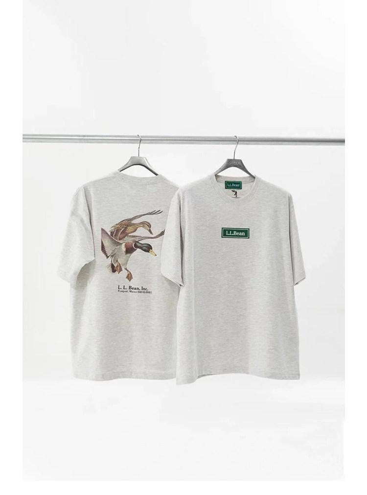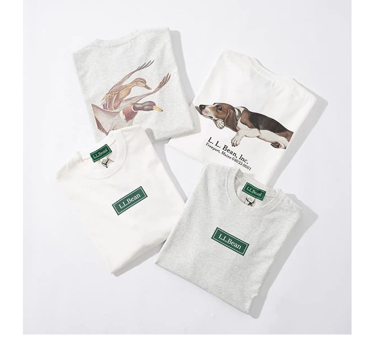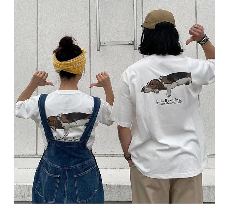 LLBEAN聯名BEAMS日系美式復古動物印花短袖戶外休閒寬鬆情侶裝T恤