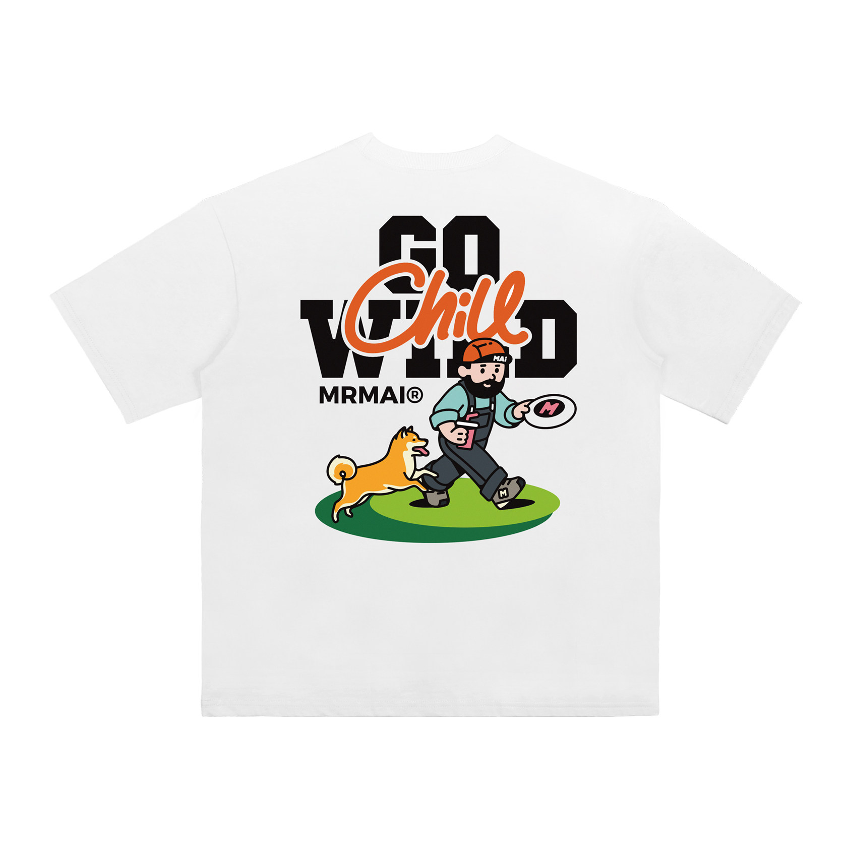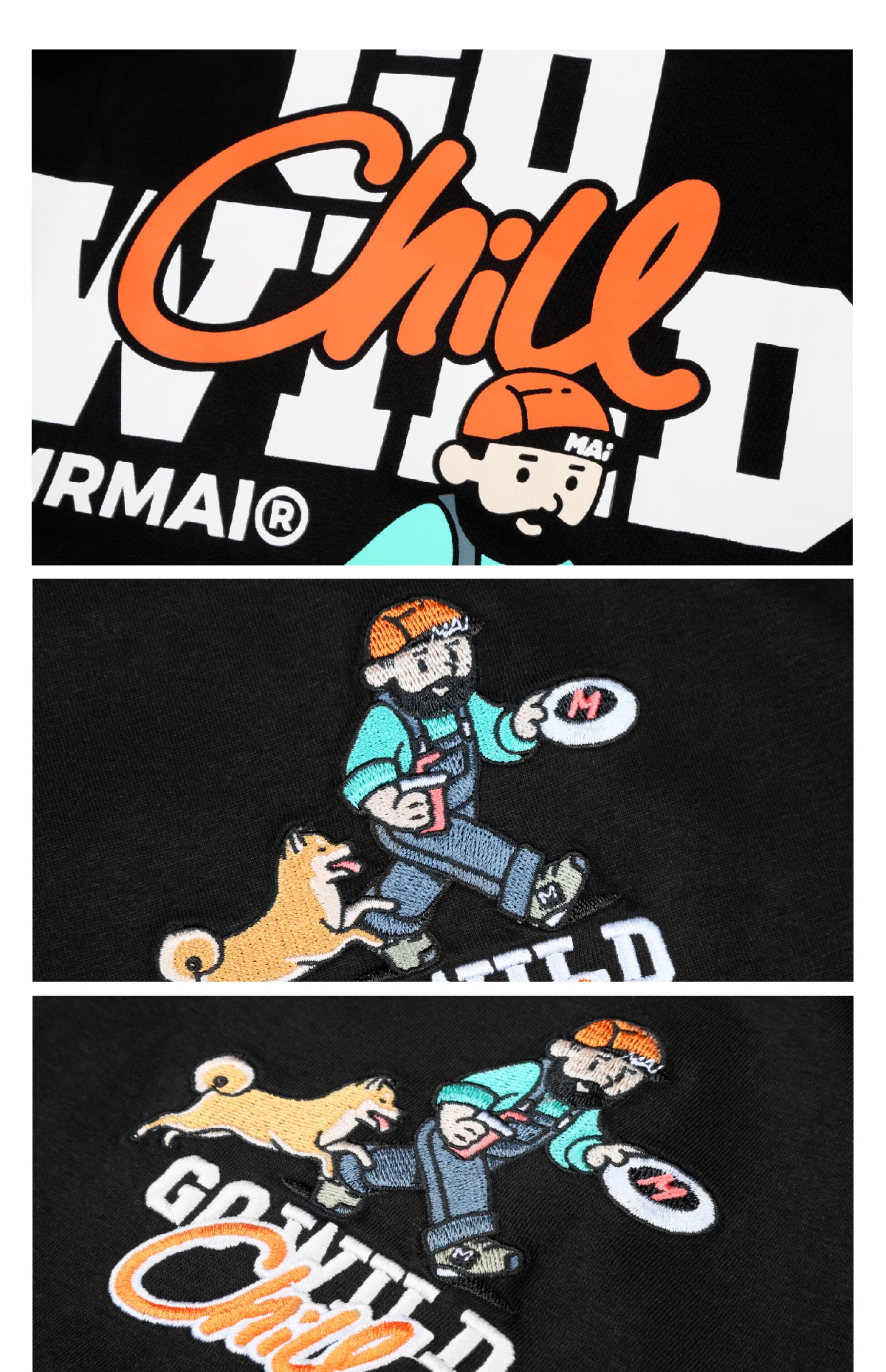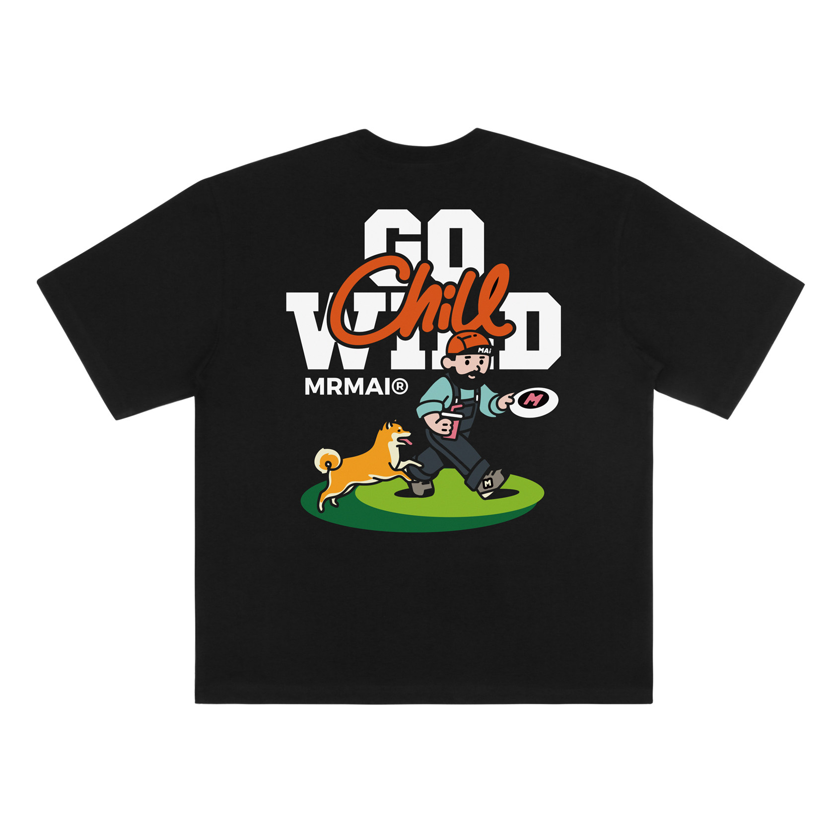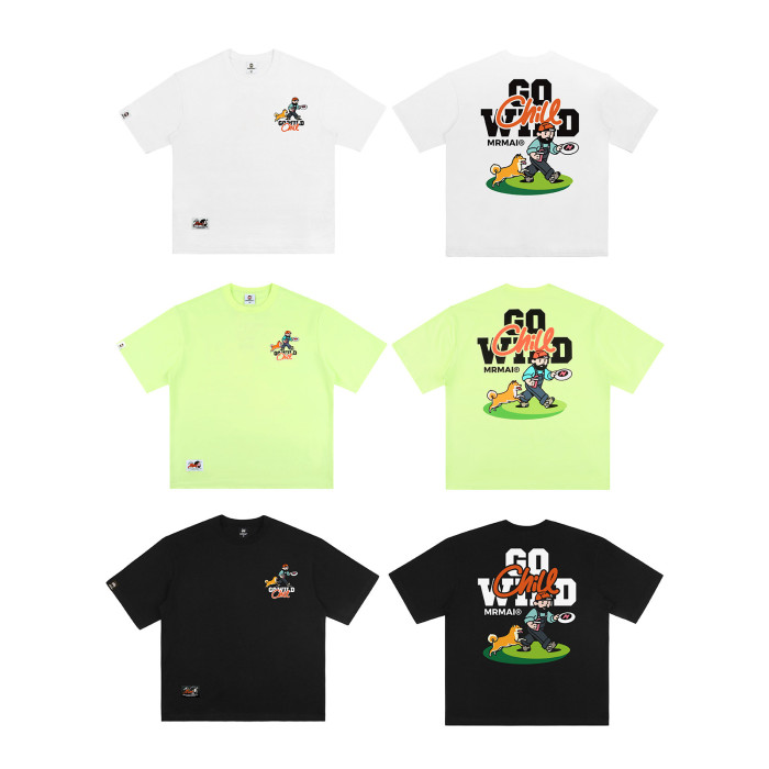 MRMAI CHILL系列夏季去野柴犬印花黑白涼感速乾寬鬆圓領短袖T恤