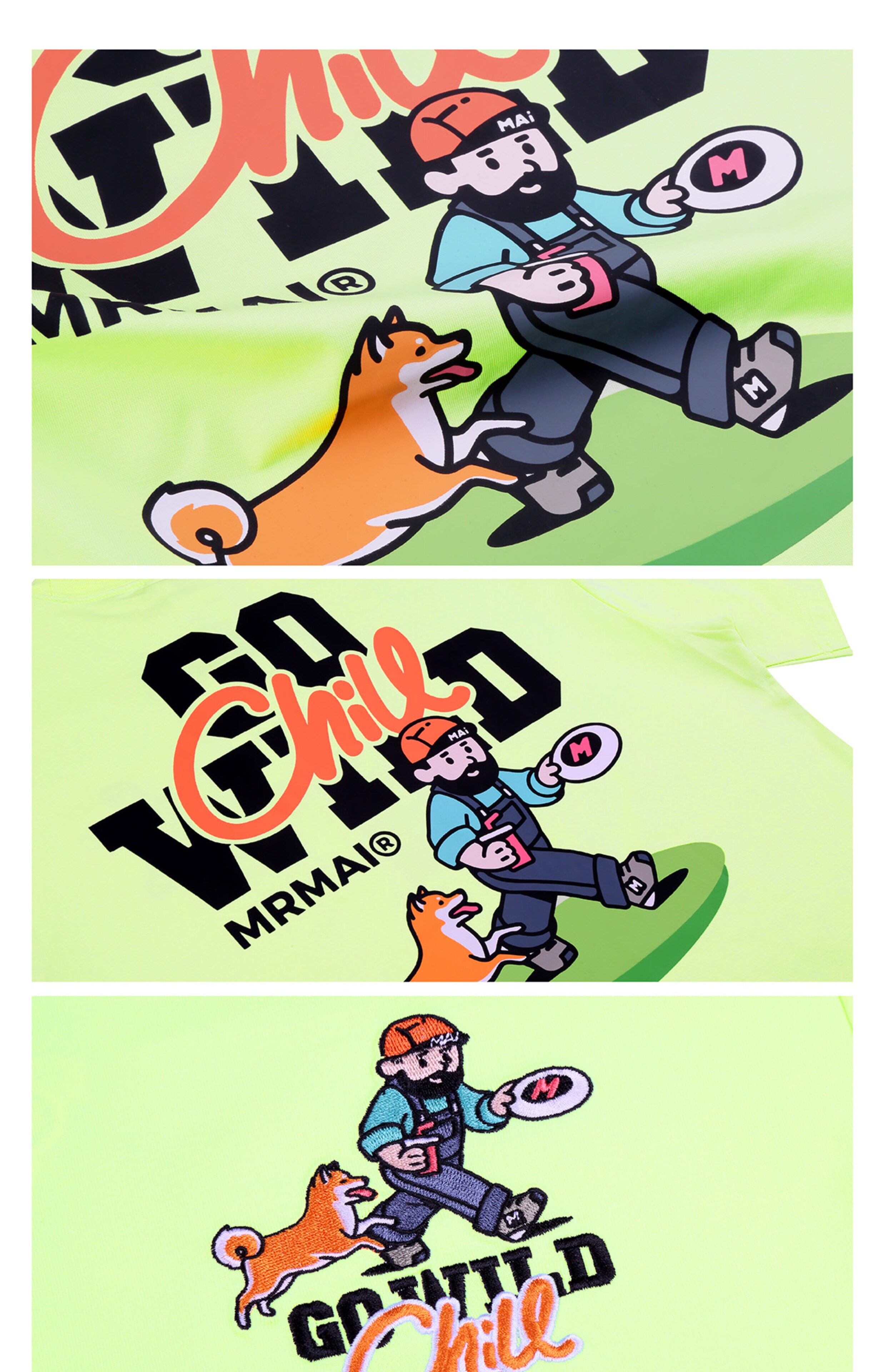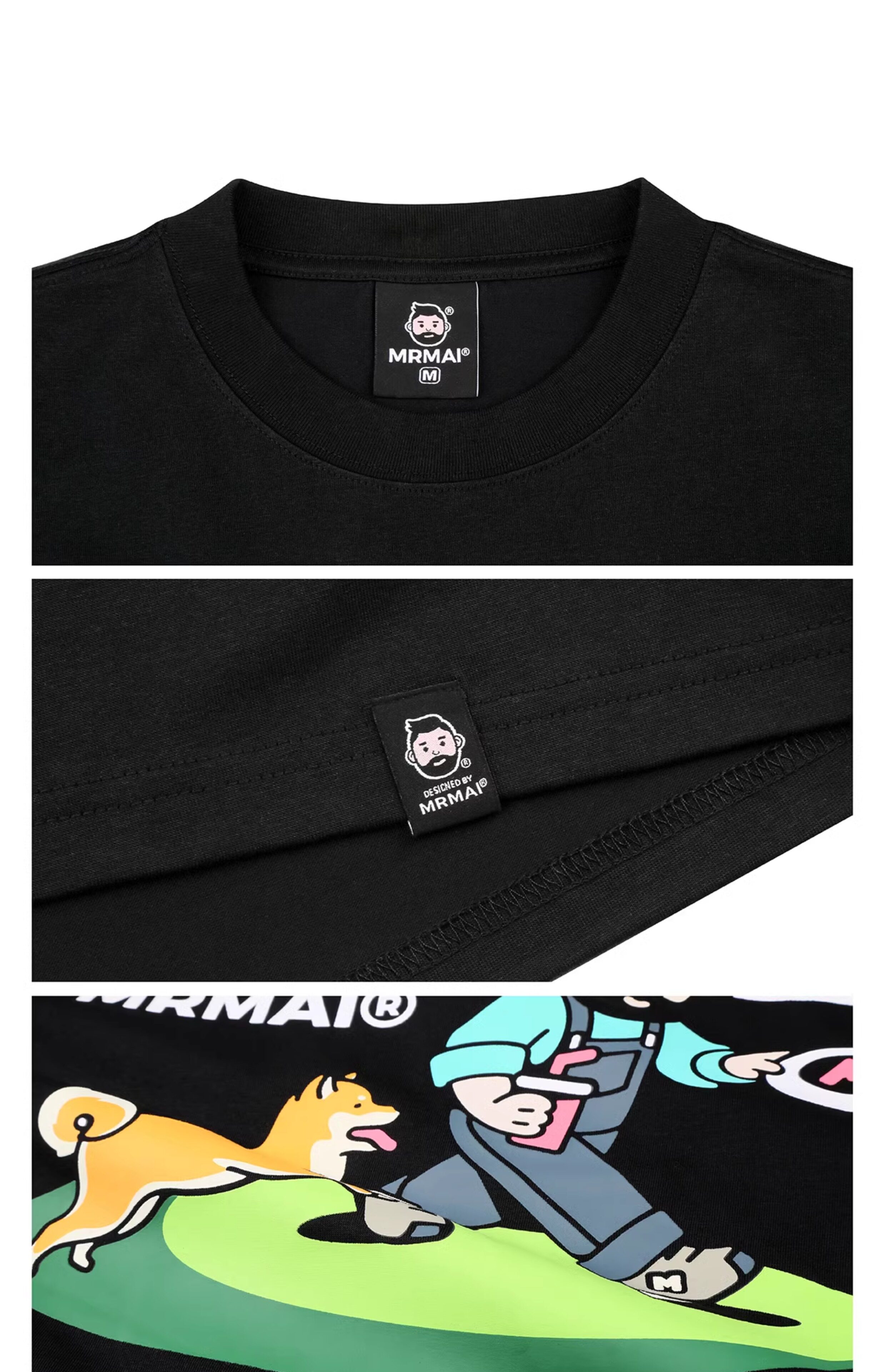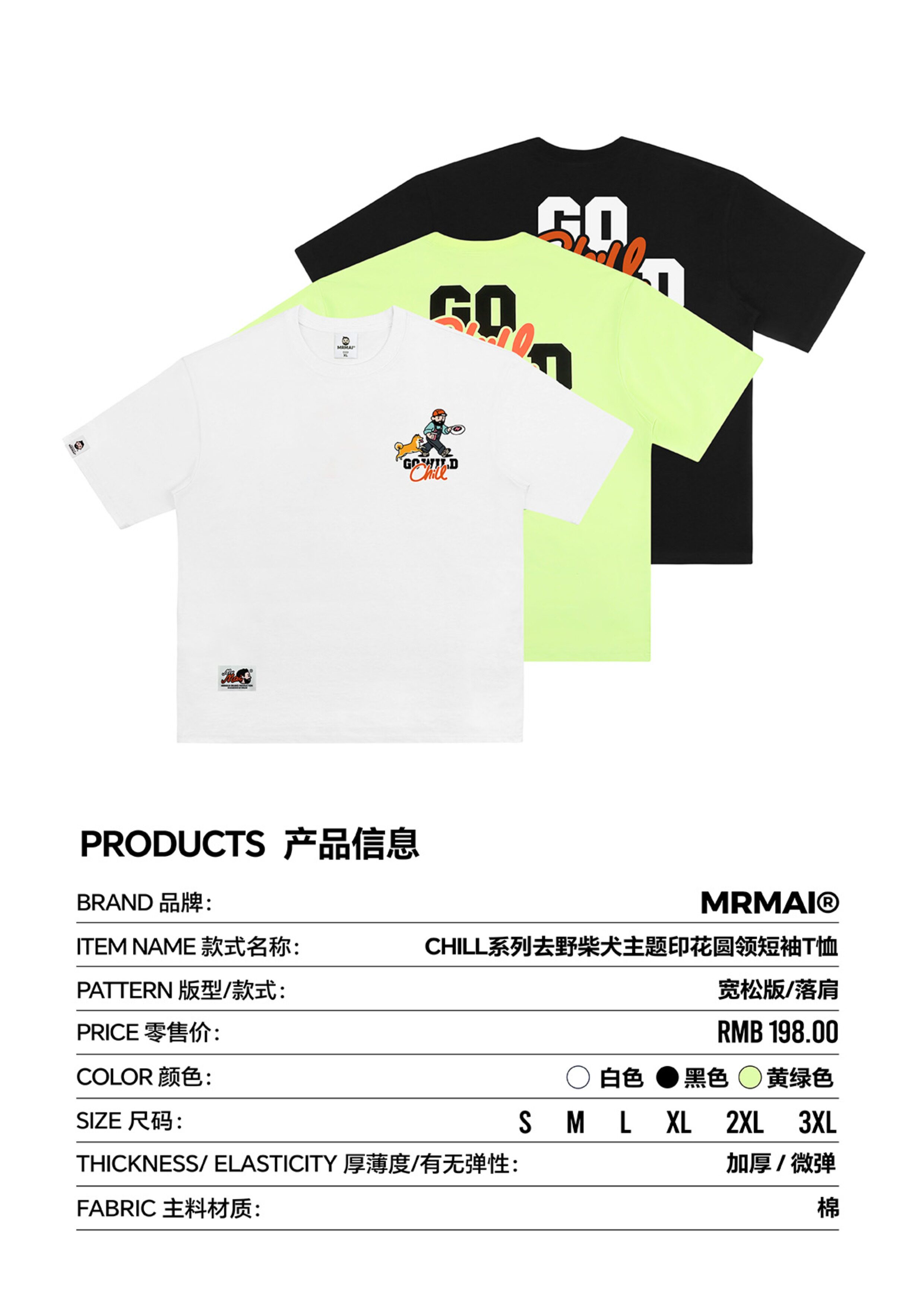 MRMAI CHILL系列夏季去野柴犬印花黑白涼感速乾寬鬆圓領短袖T恤