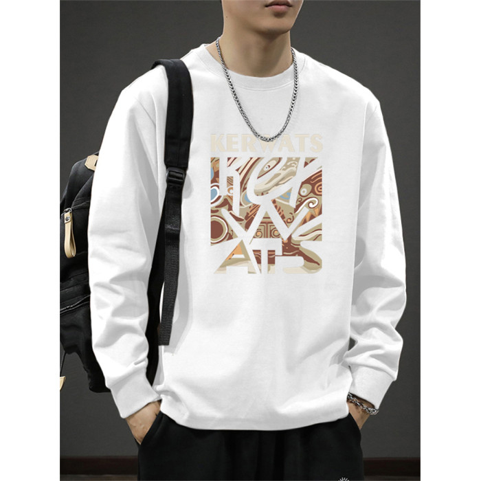 2026新款260克純棉長袖t恤男士春秋季圓領百搭衛衣潮牌寬鬆打底衫