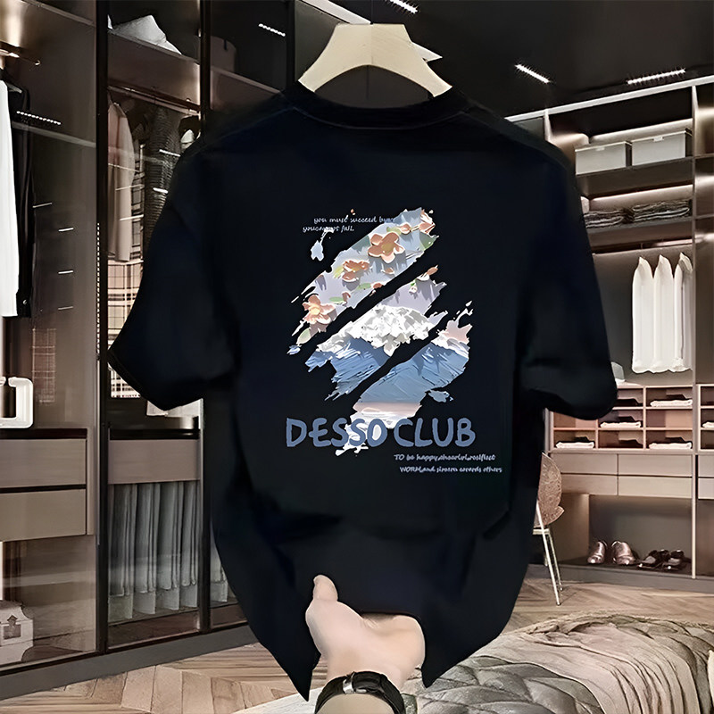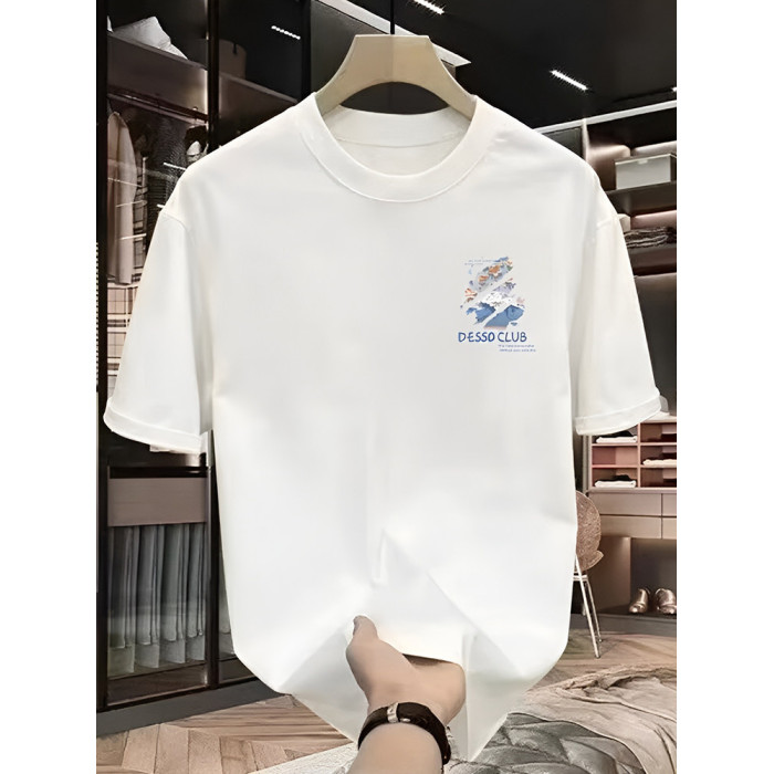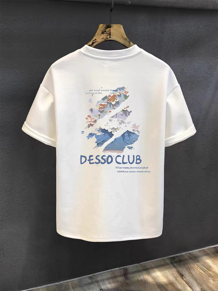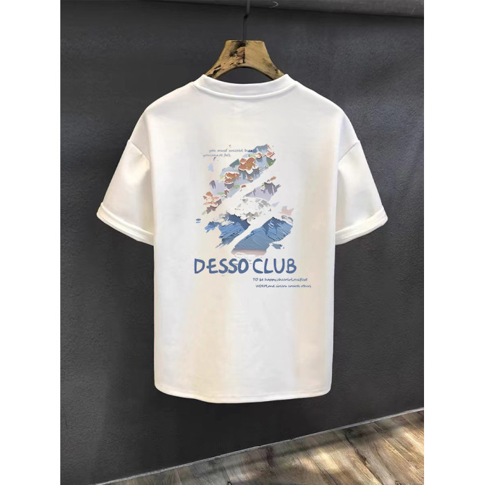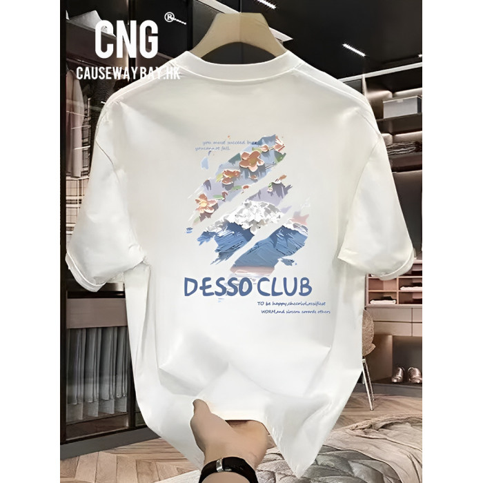 香港潮牌時尚短袖T恤男純棉百搭圓領重磅夏季氛圍感印花寬鬆半袖