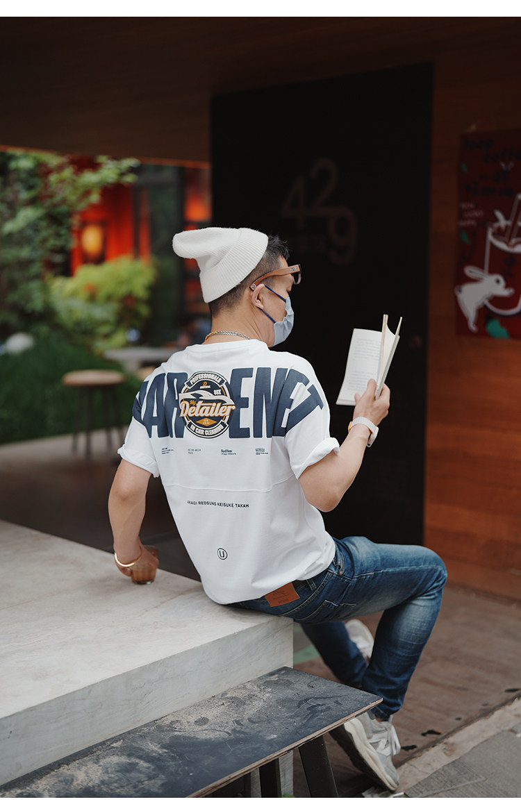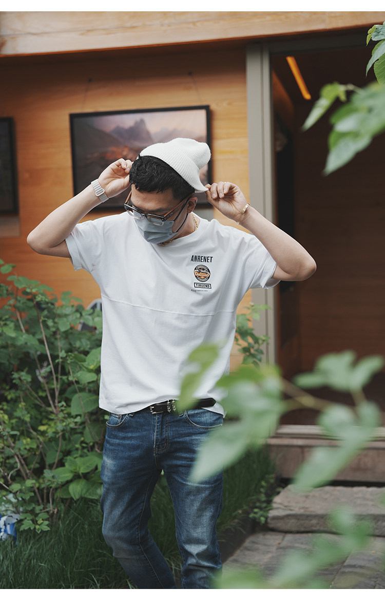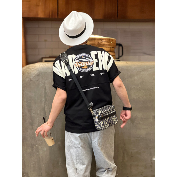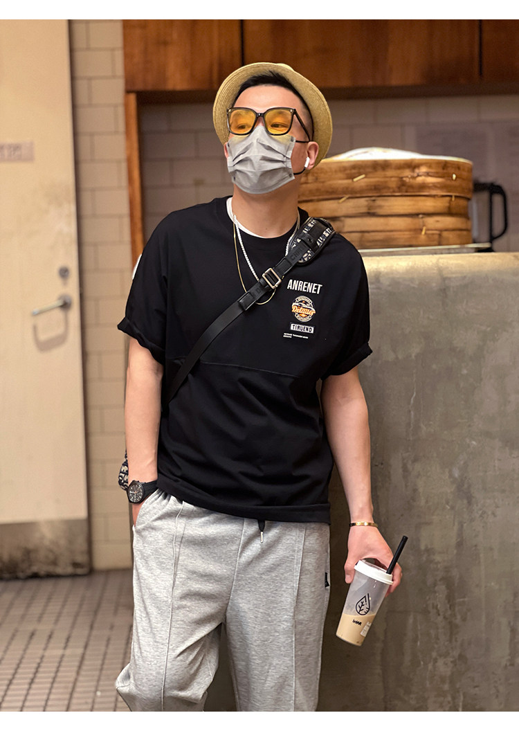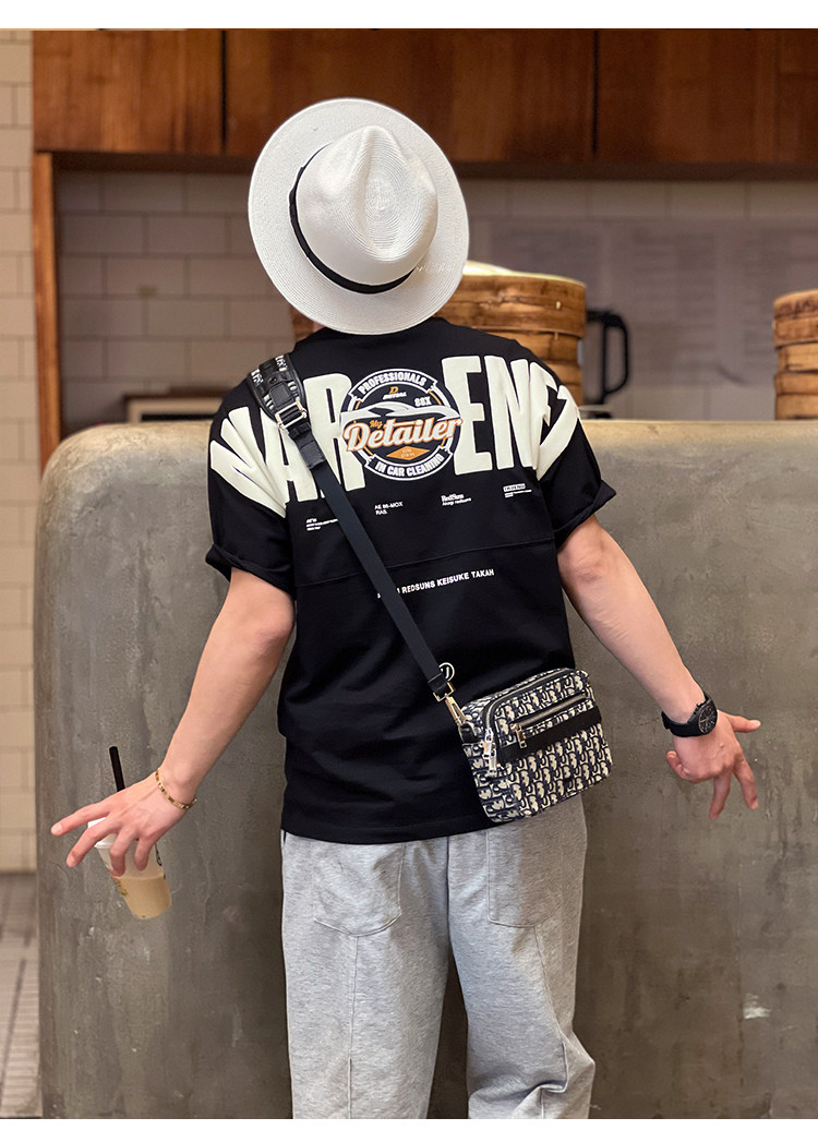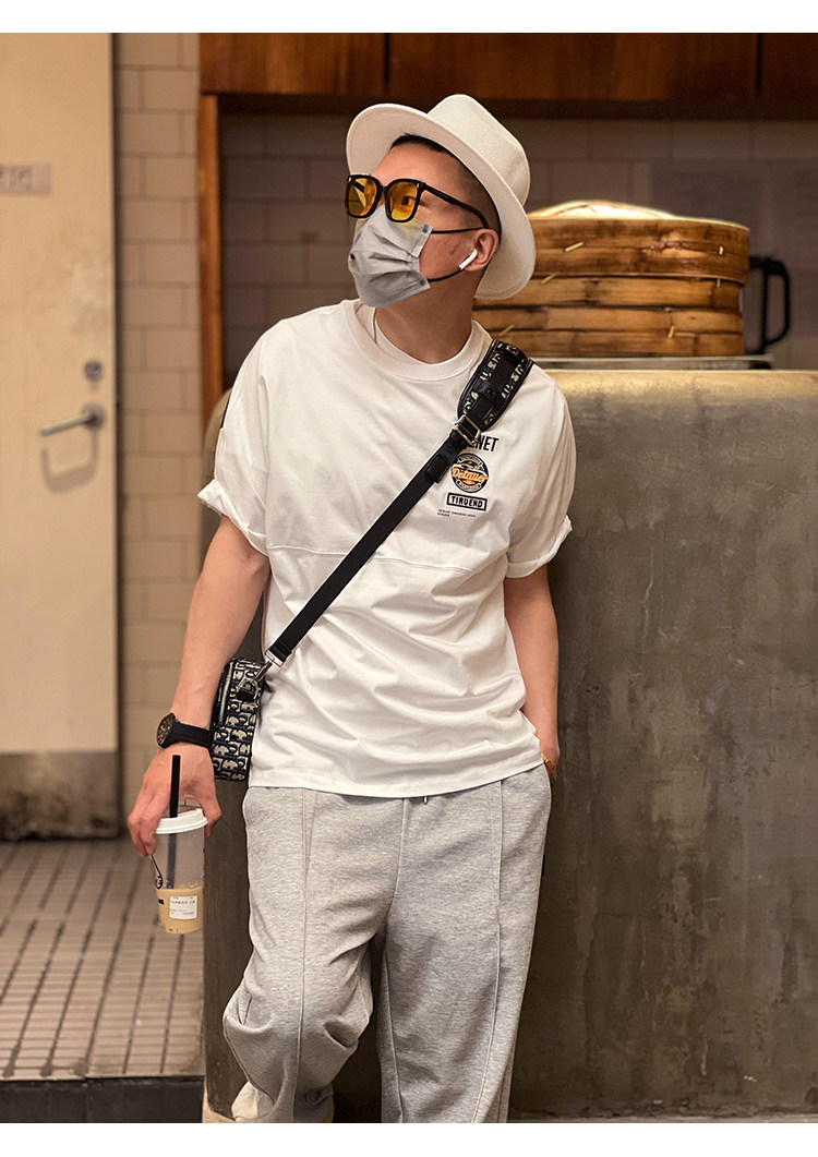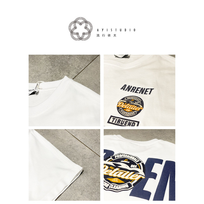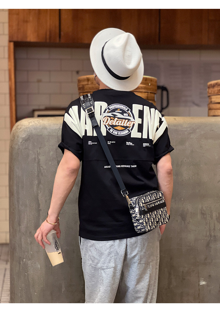美式重工刺綉黑色短袖T恤男ins潮牌印花貼布寬鬆痞帥半袖打底上衣