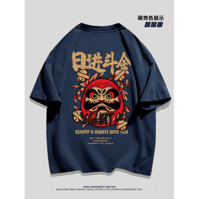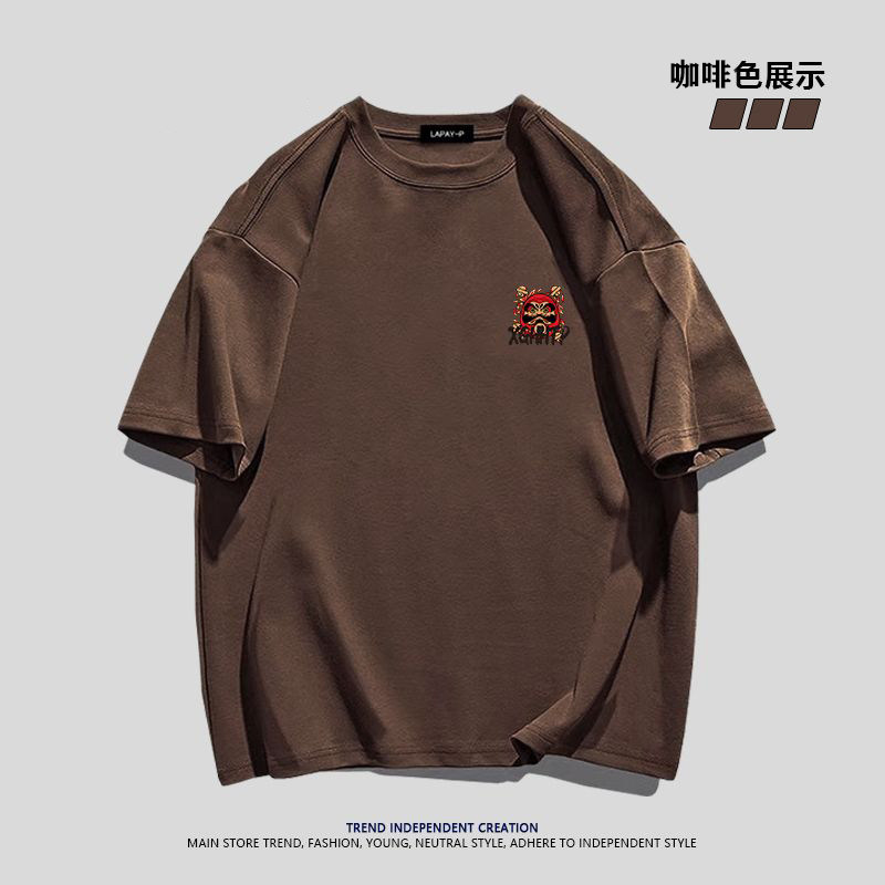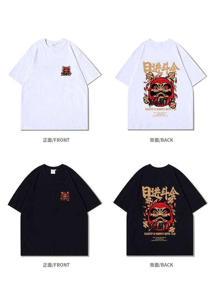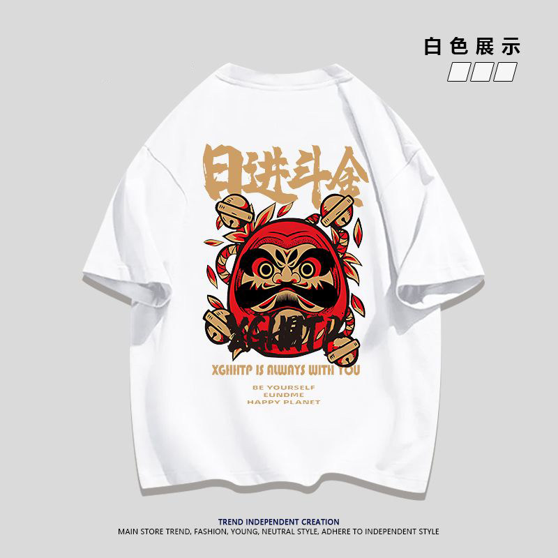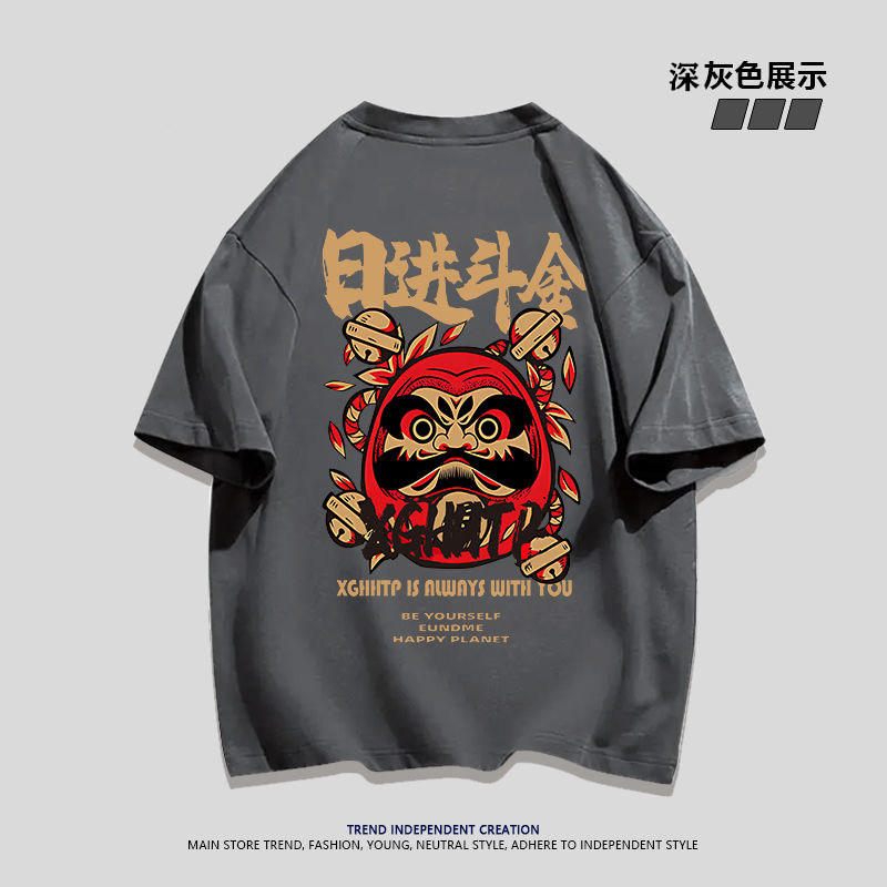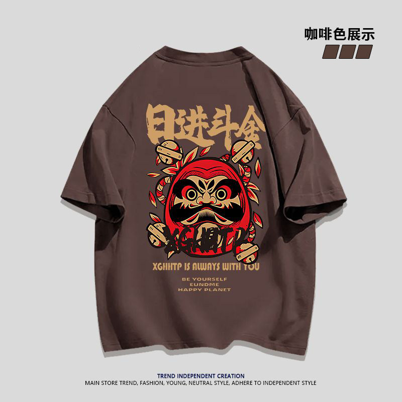 重磅純棉美式復古日進鬥金印花短袖T恤情侶裝寬鬆ins夏季上衣男女
