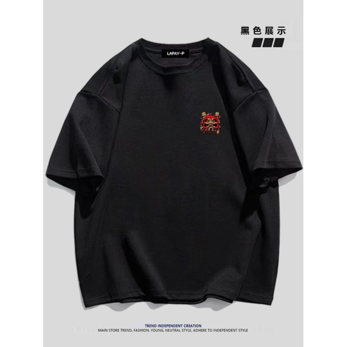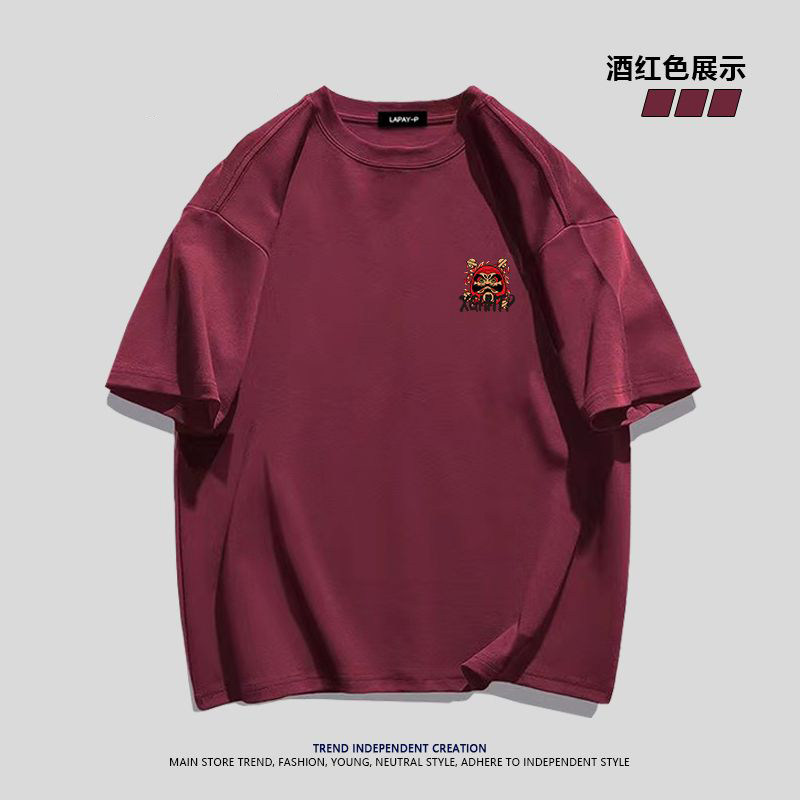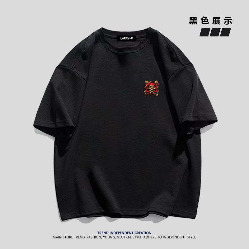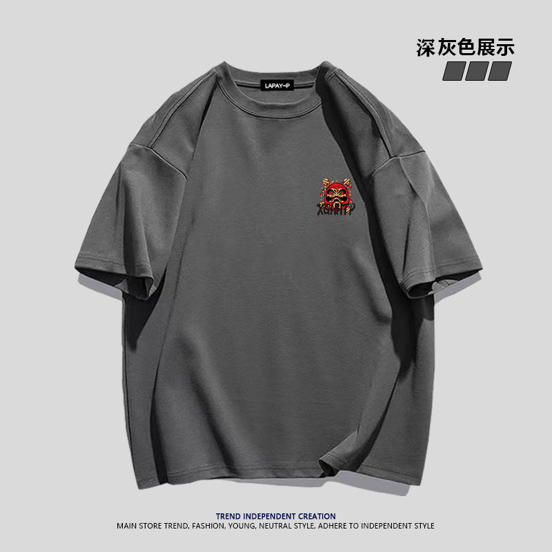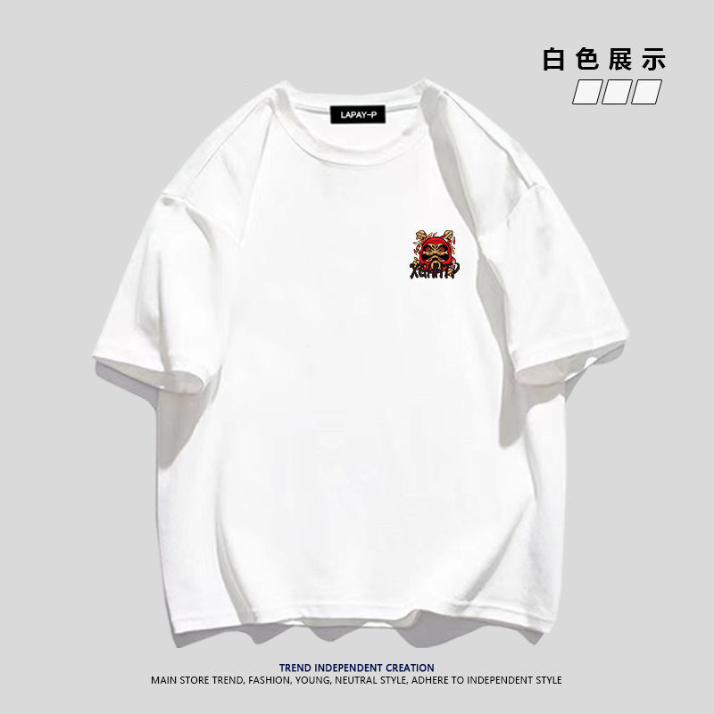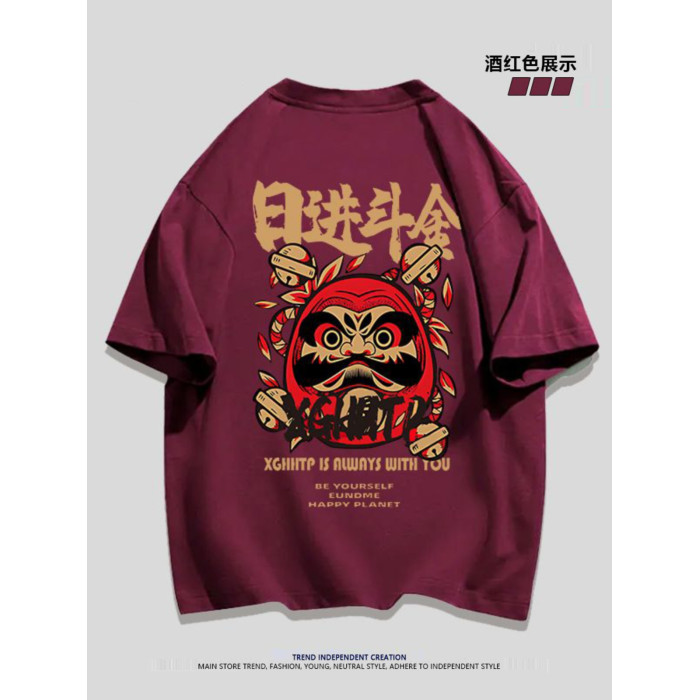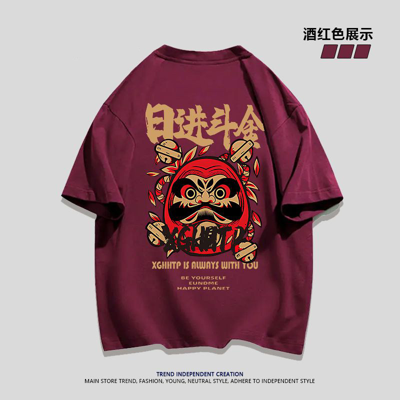 重磅純棉美式復古日進鬥金印花短袖T恤情侶裝寬鬆ins夏季上衣男女