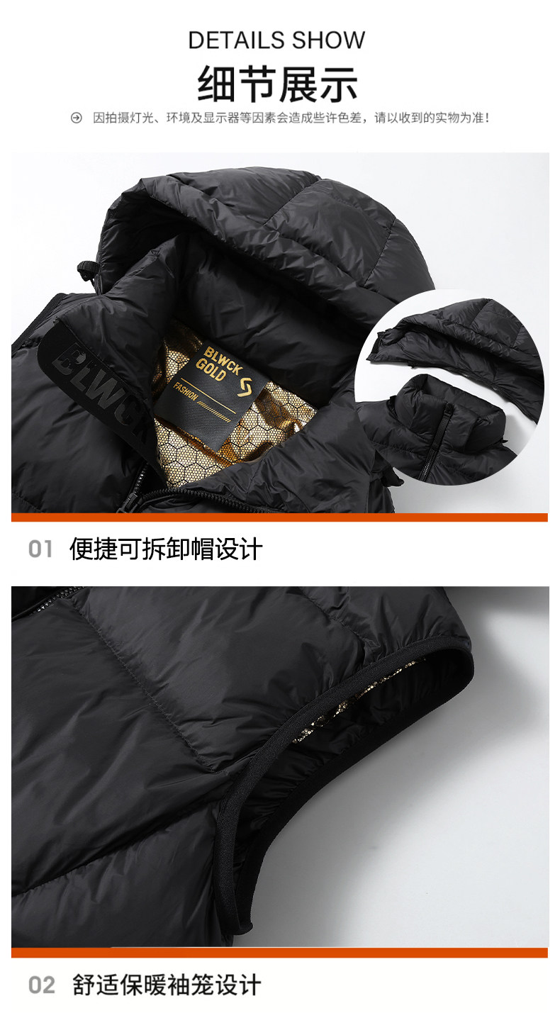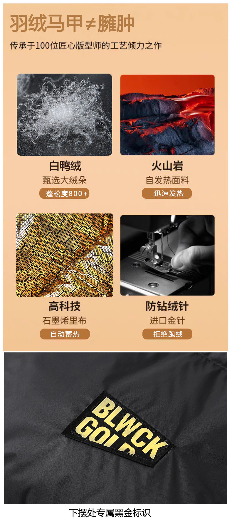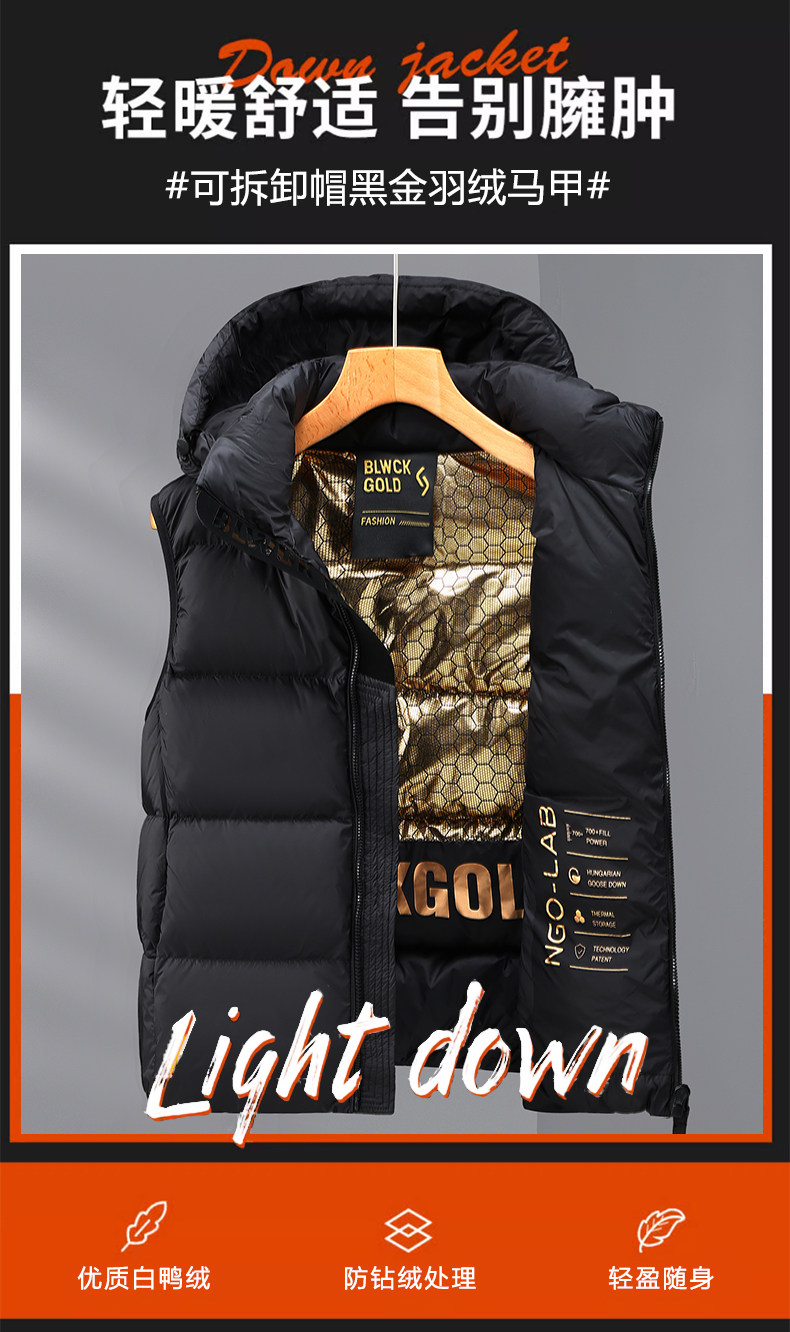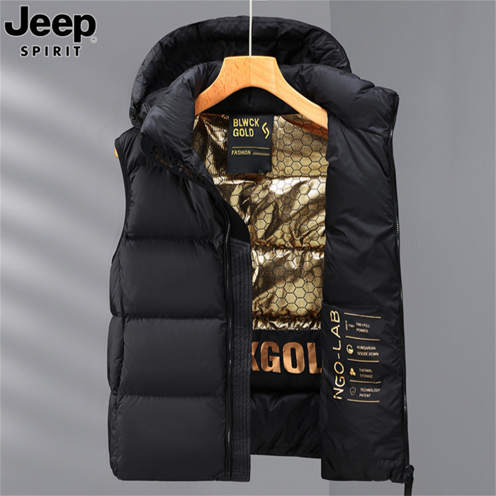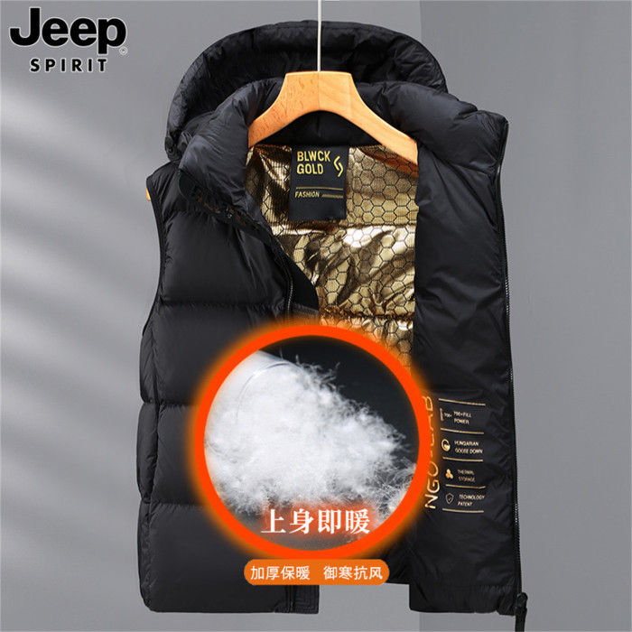 JEEP SPIRIT吉普黑金羽絨馬甲男士白鴨絨坎肩背心加絨加厚外套男