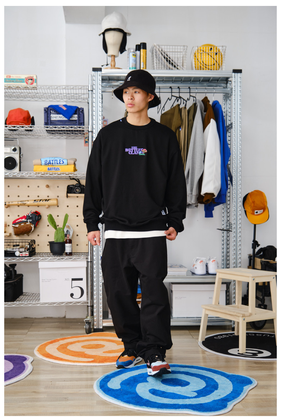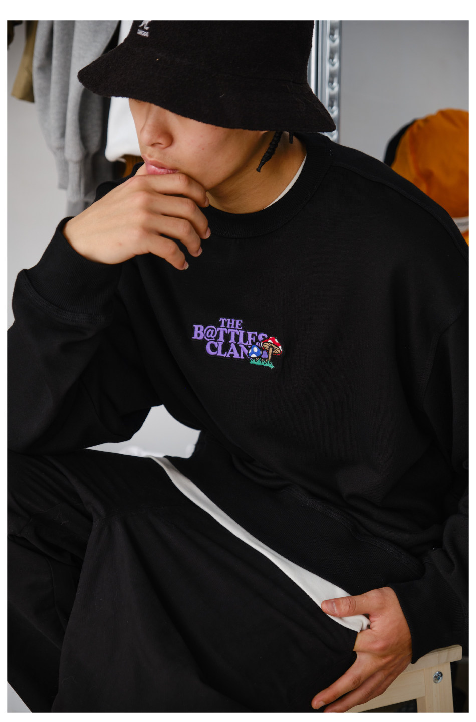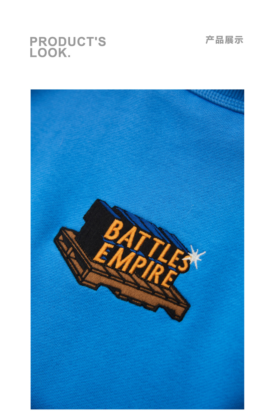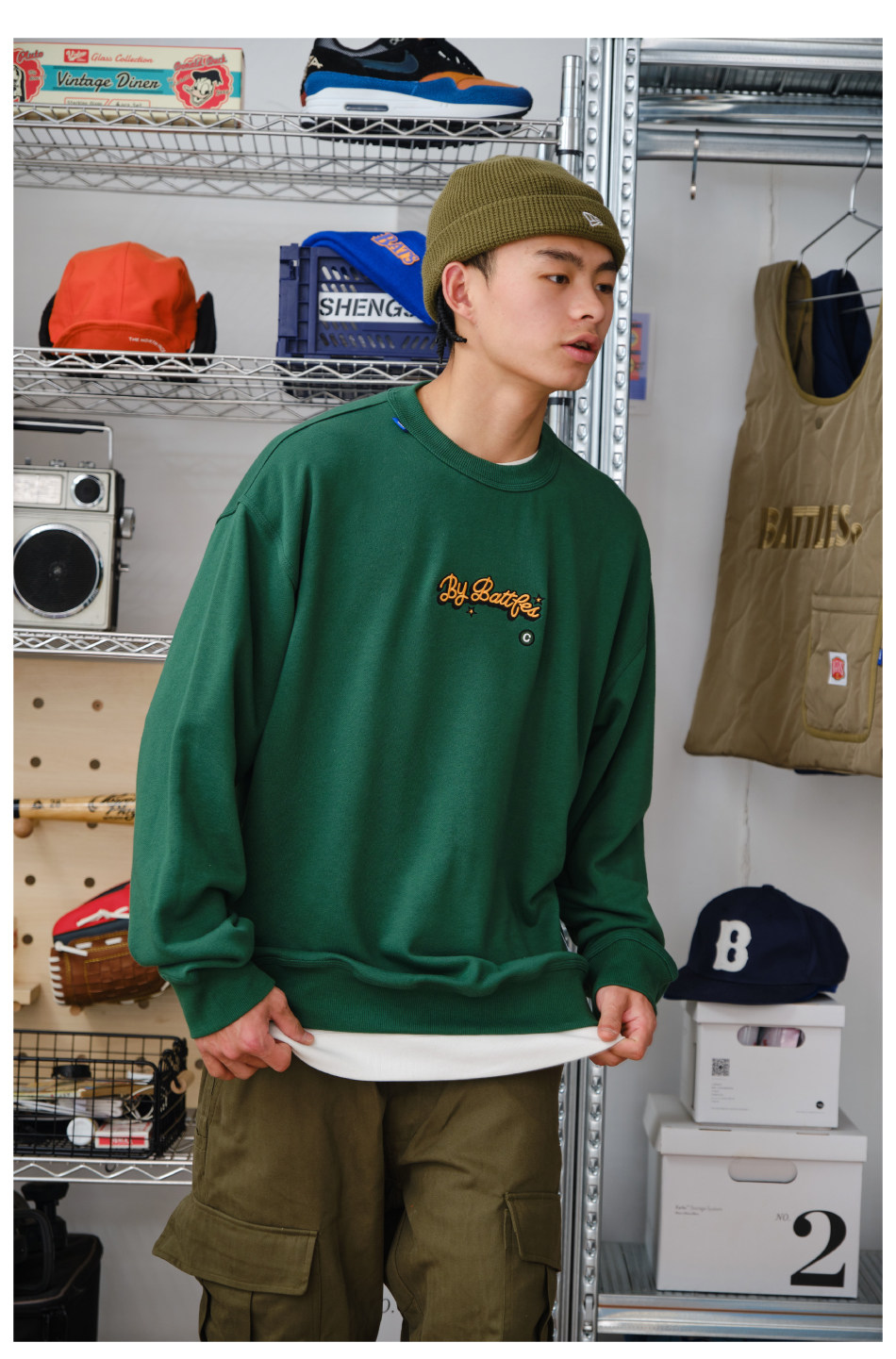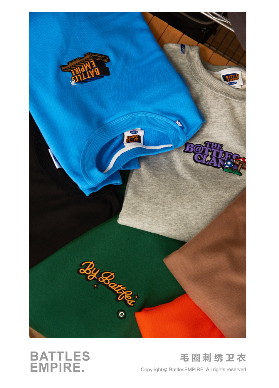 Battles 秋季基礎刺綉重磅毛圈純棉長袖T恤男女薄款衛衣套頭寬鬆