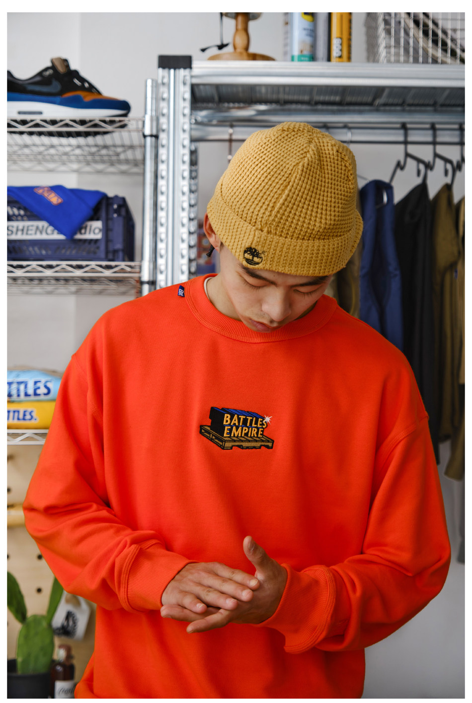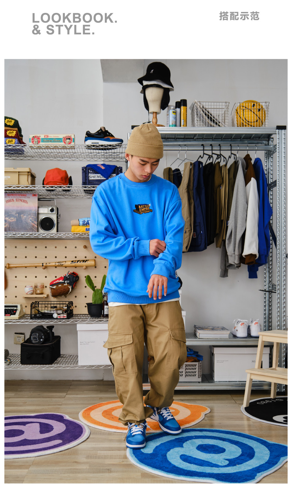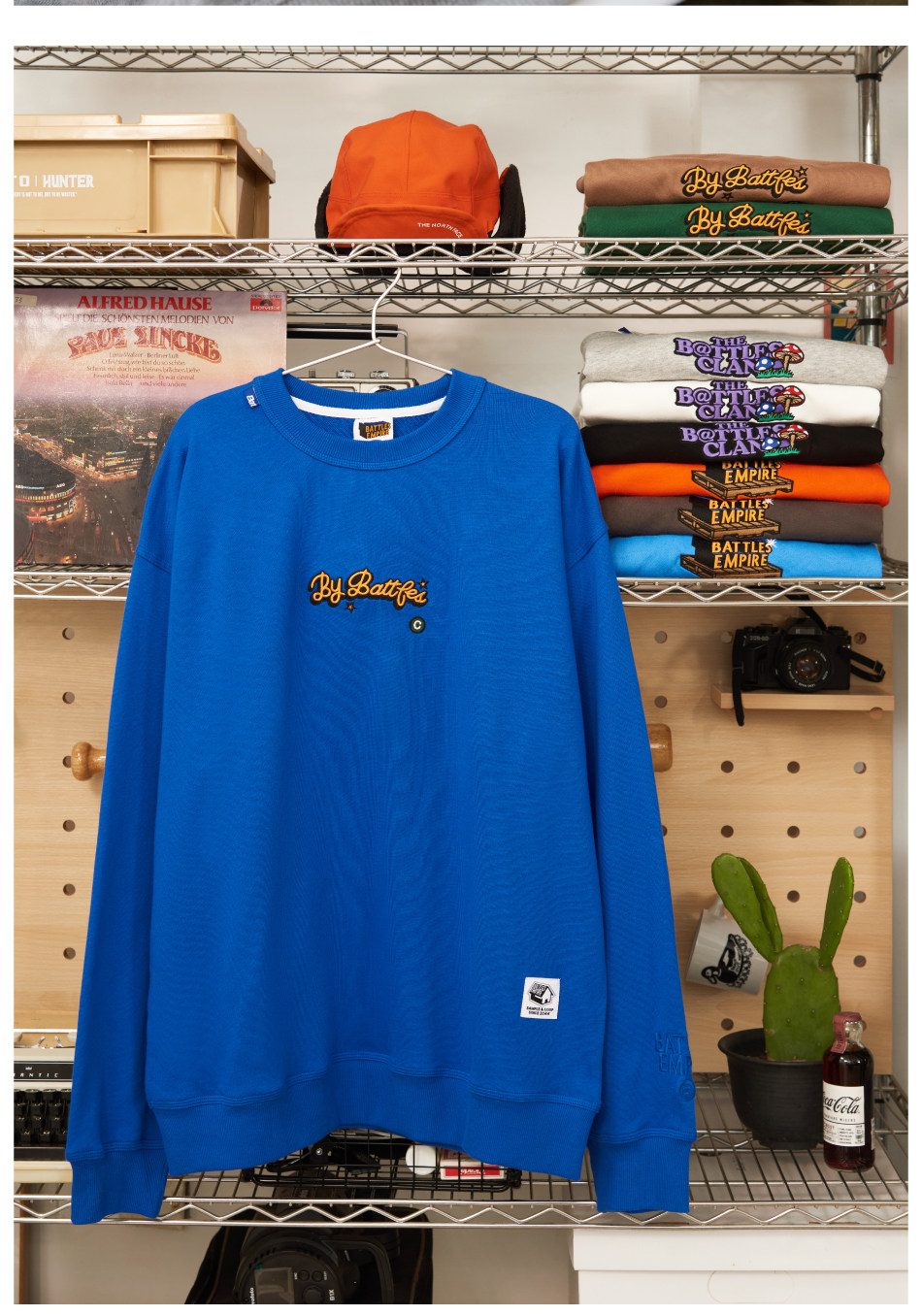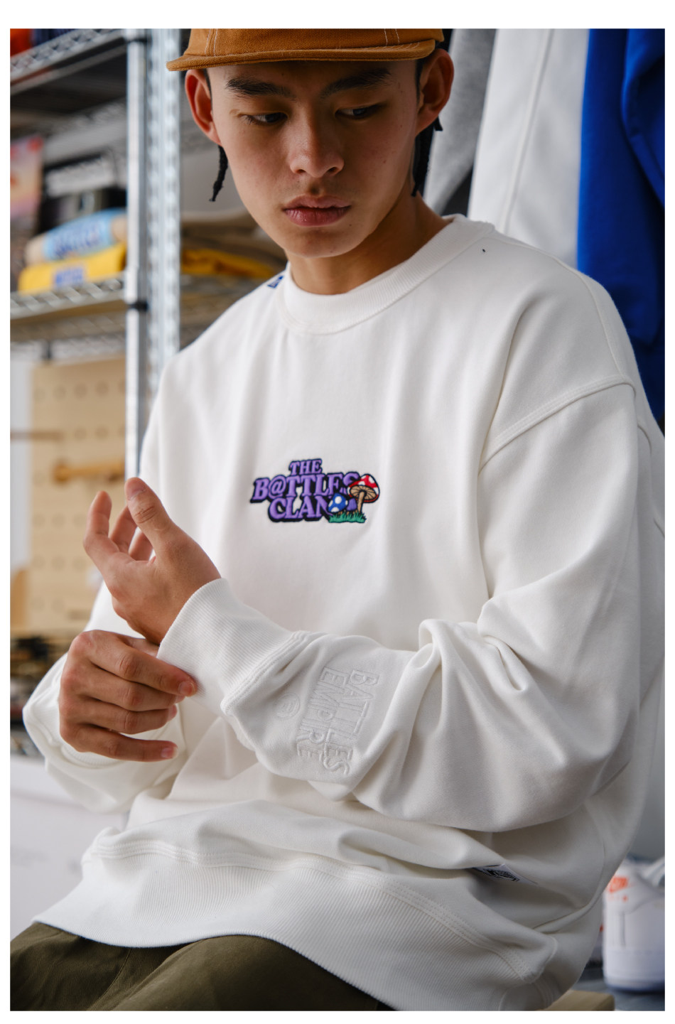 Battles 秋季基礎刺綉重磅毛圈純棉長袖T恤男女薄款衛衣套頭寬鬆