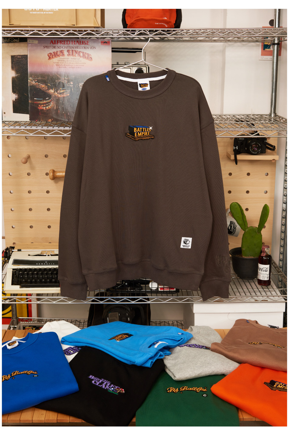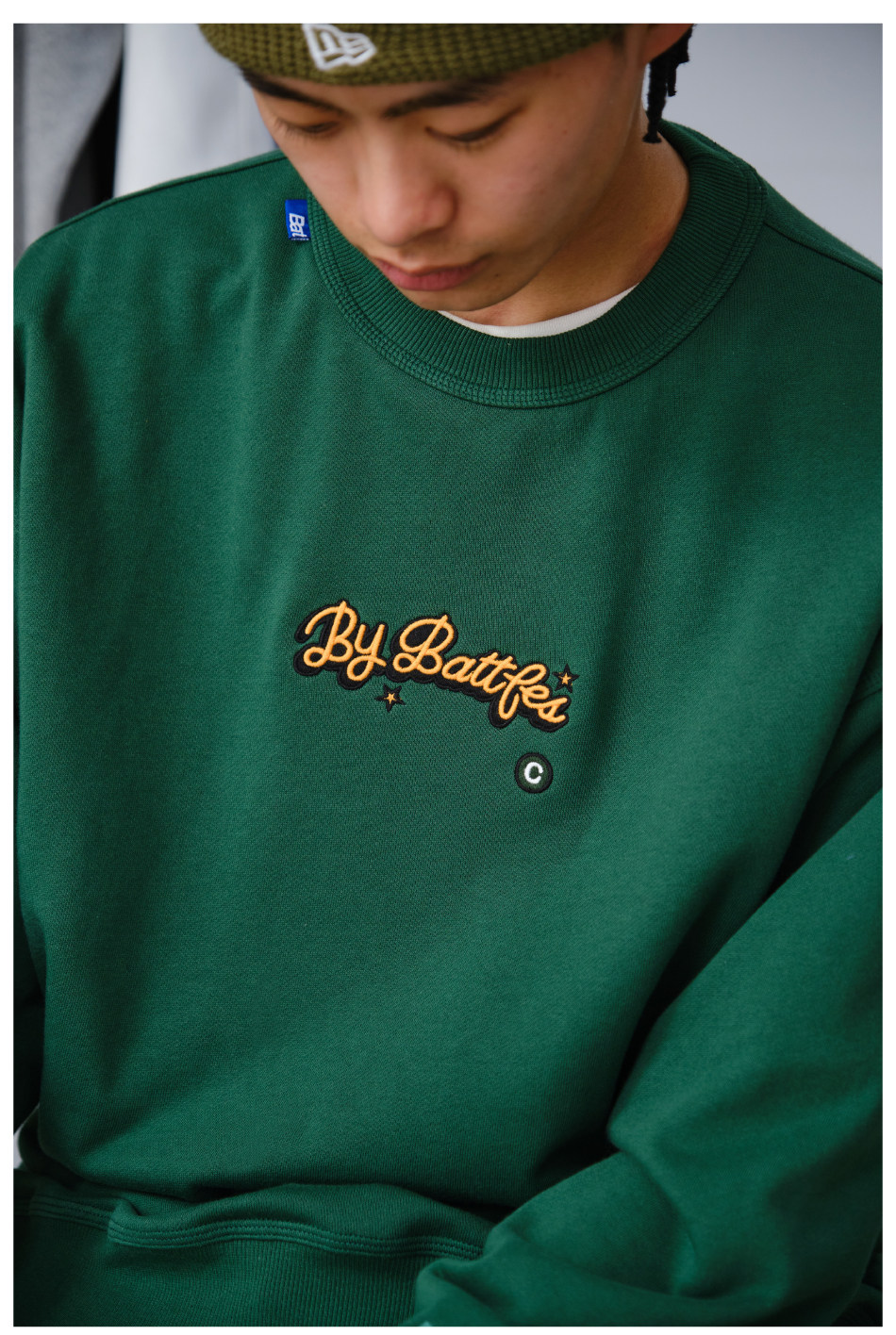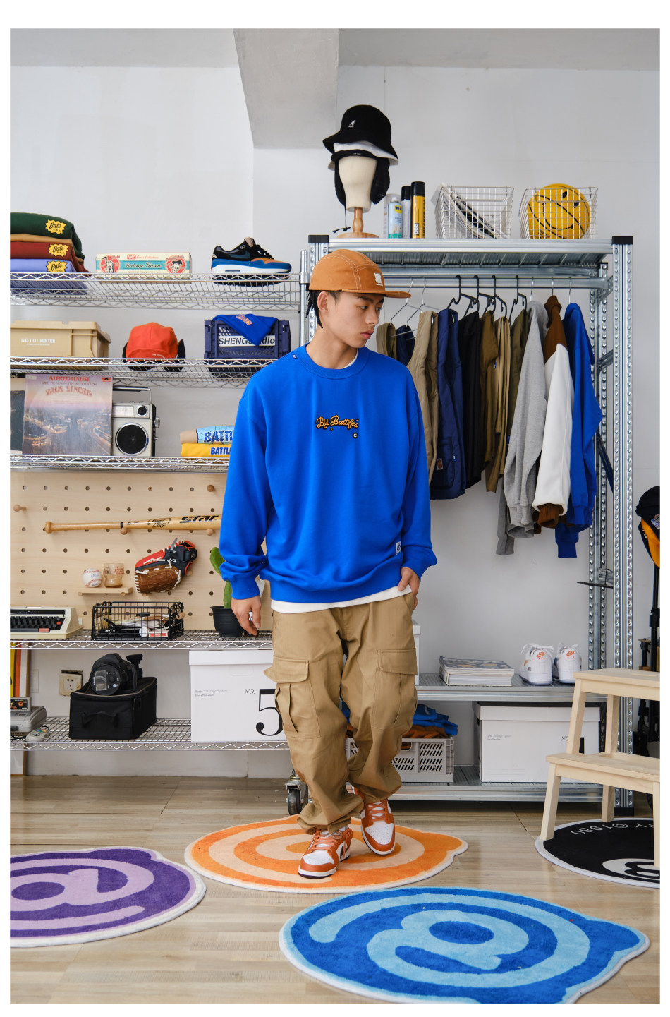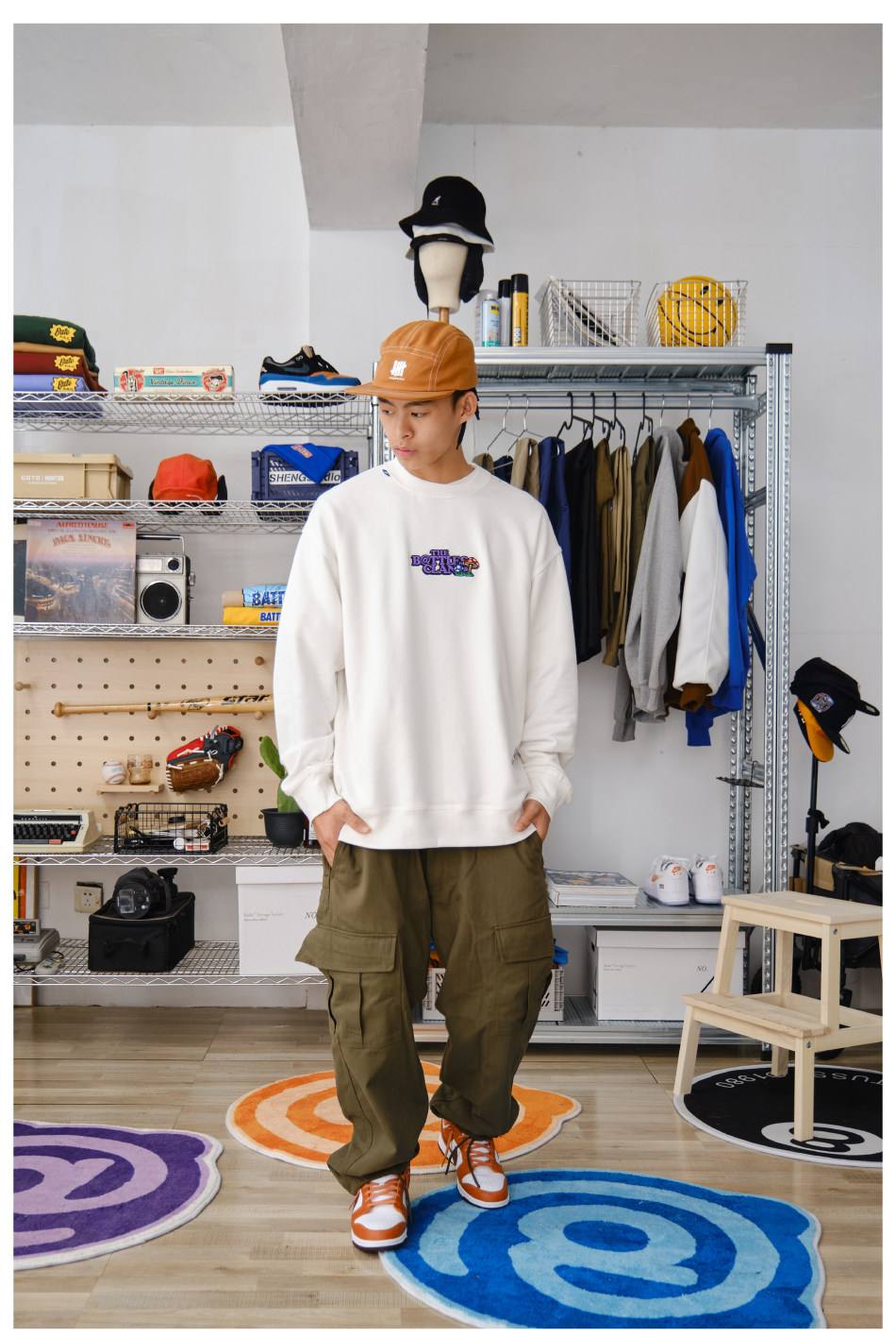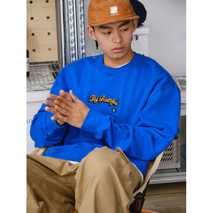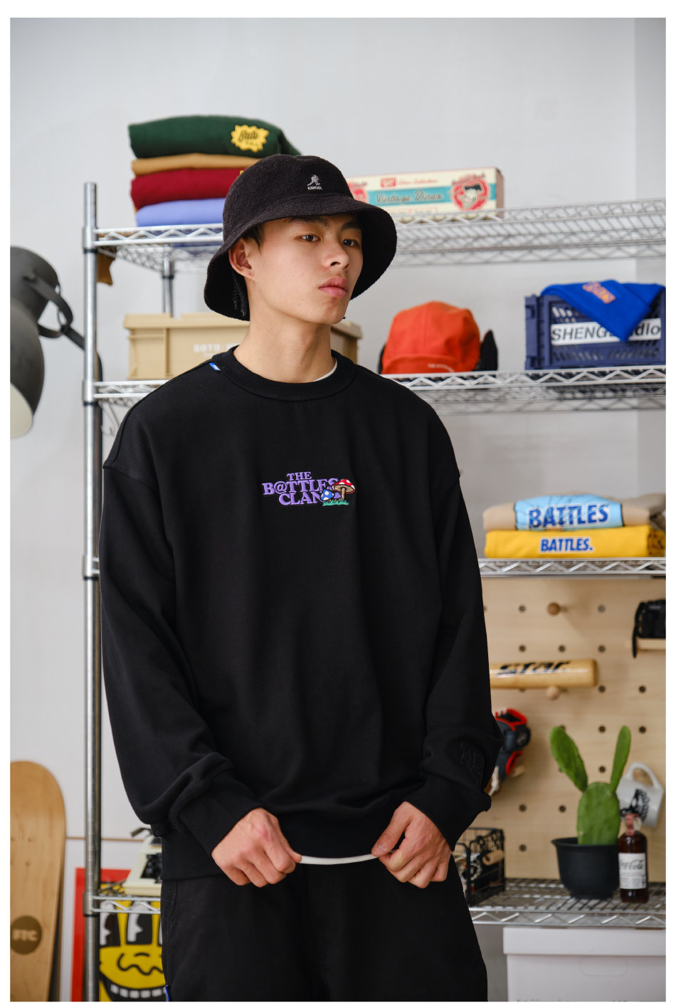 Battles 秋季基礎刺綉重磅毛圈純棉長袖T恤男女薄款衛衣套頭寬鬆