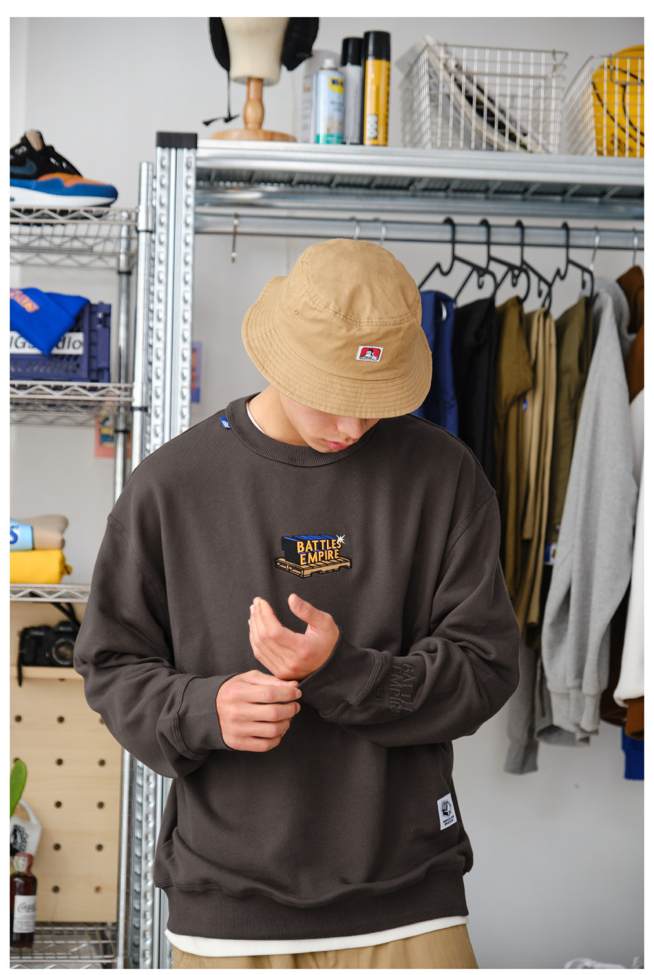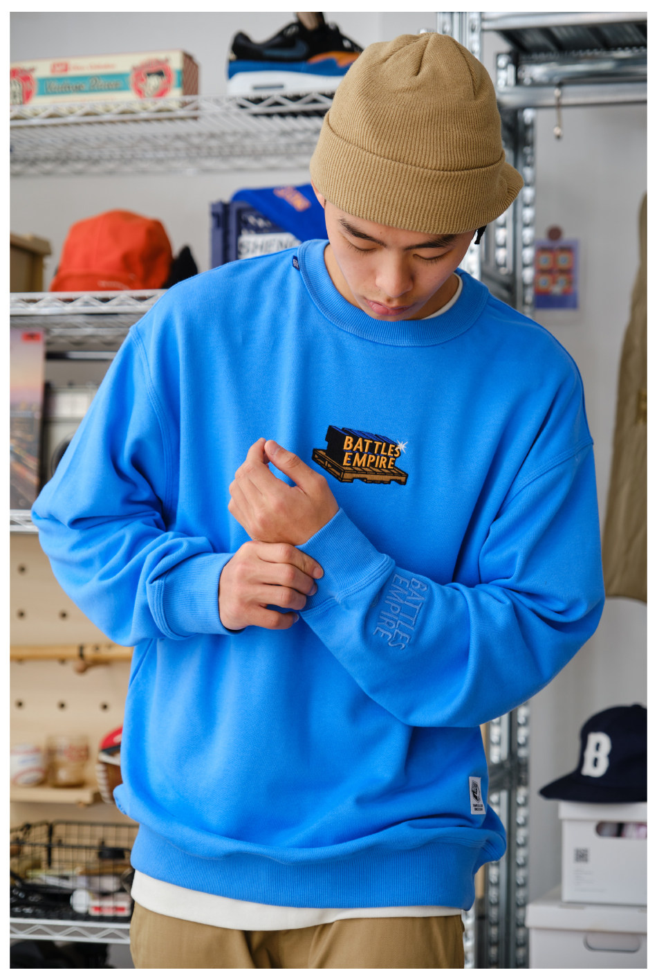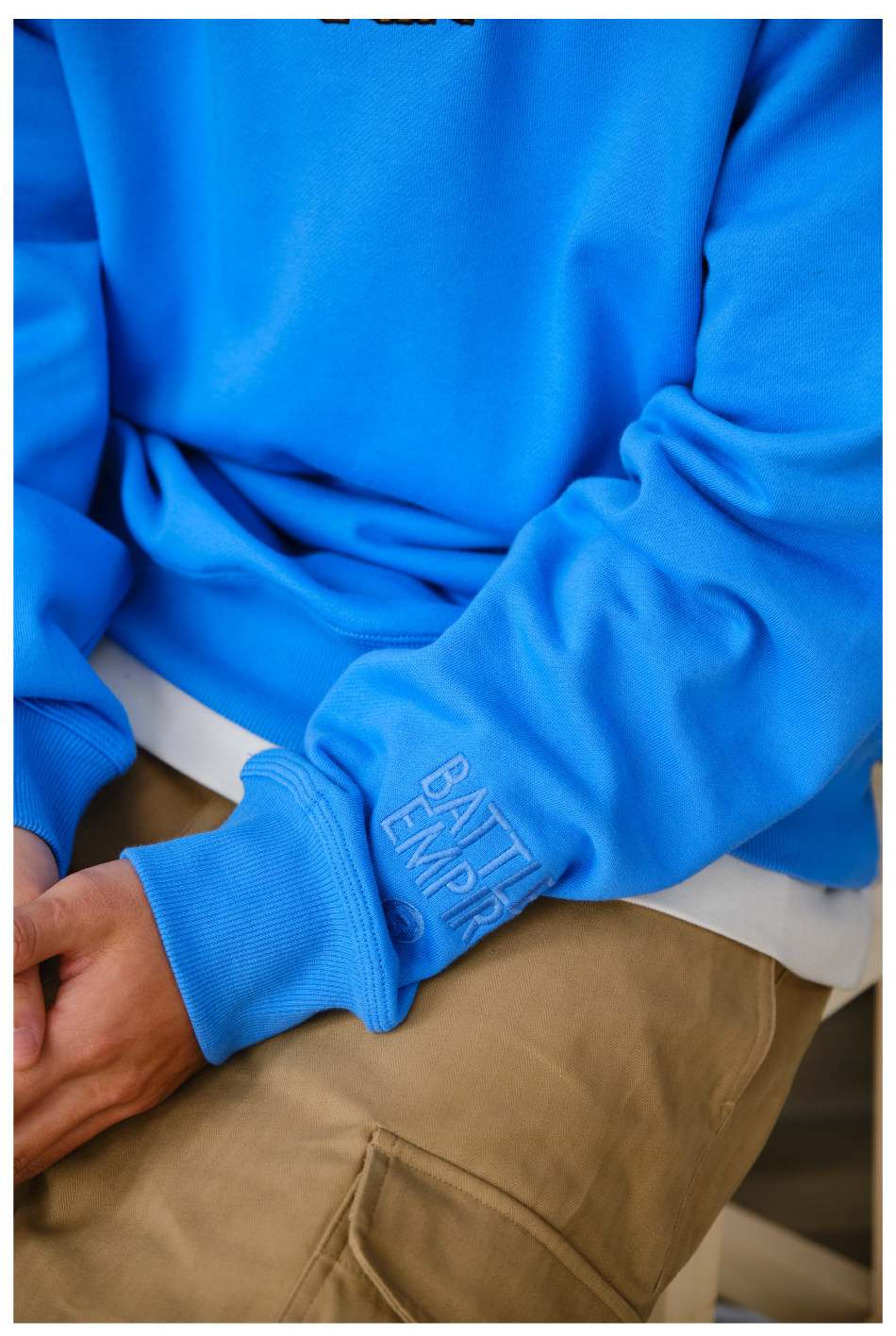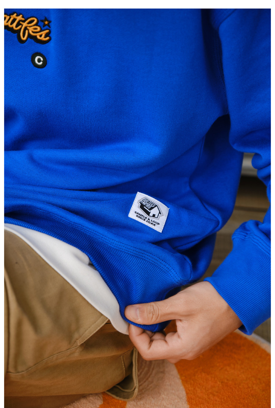 Battles 秋季基礎刺綉重磅毛圈純棉長袖T恤男女薄款衛衣套頭寬鬆