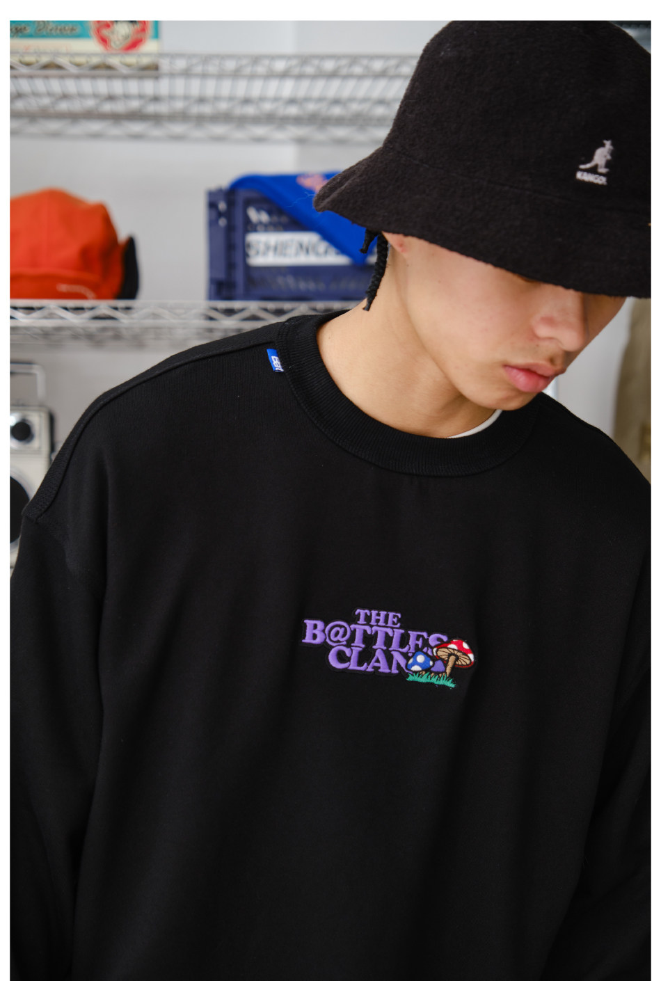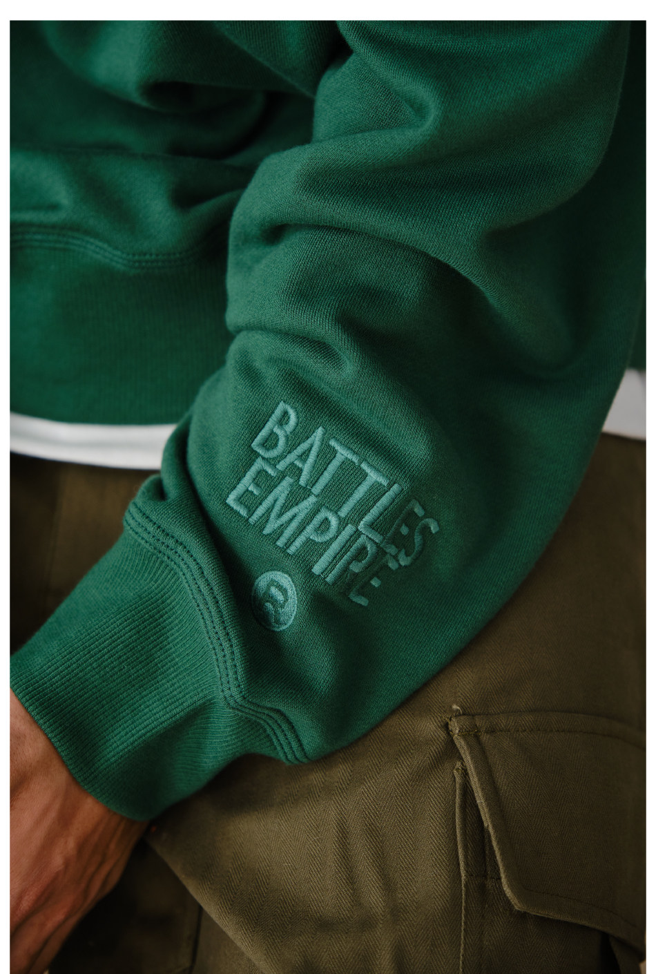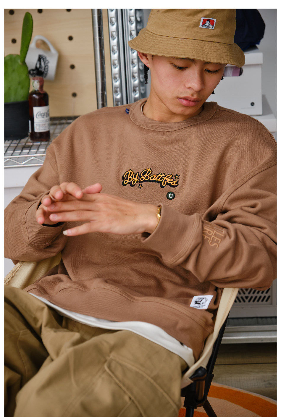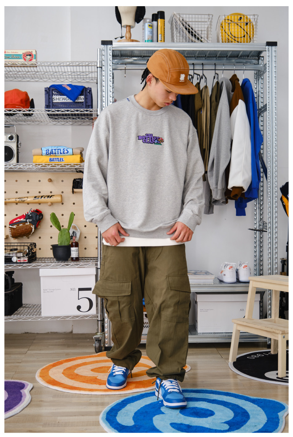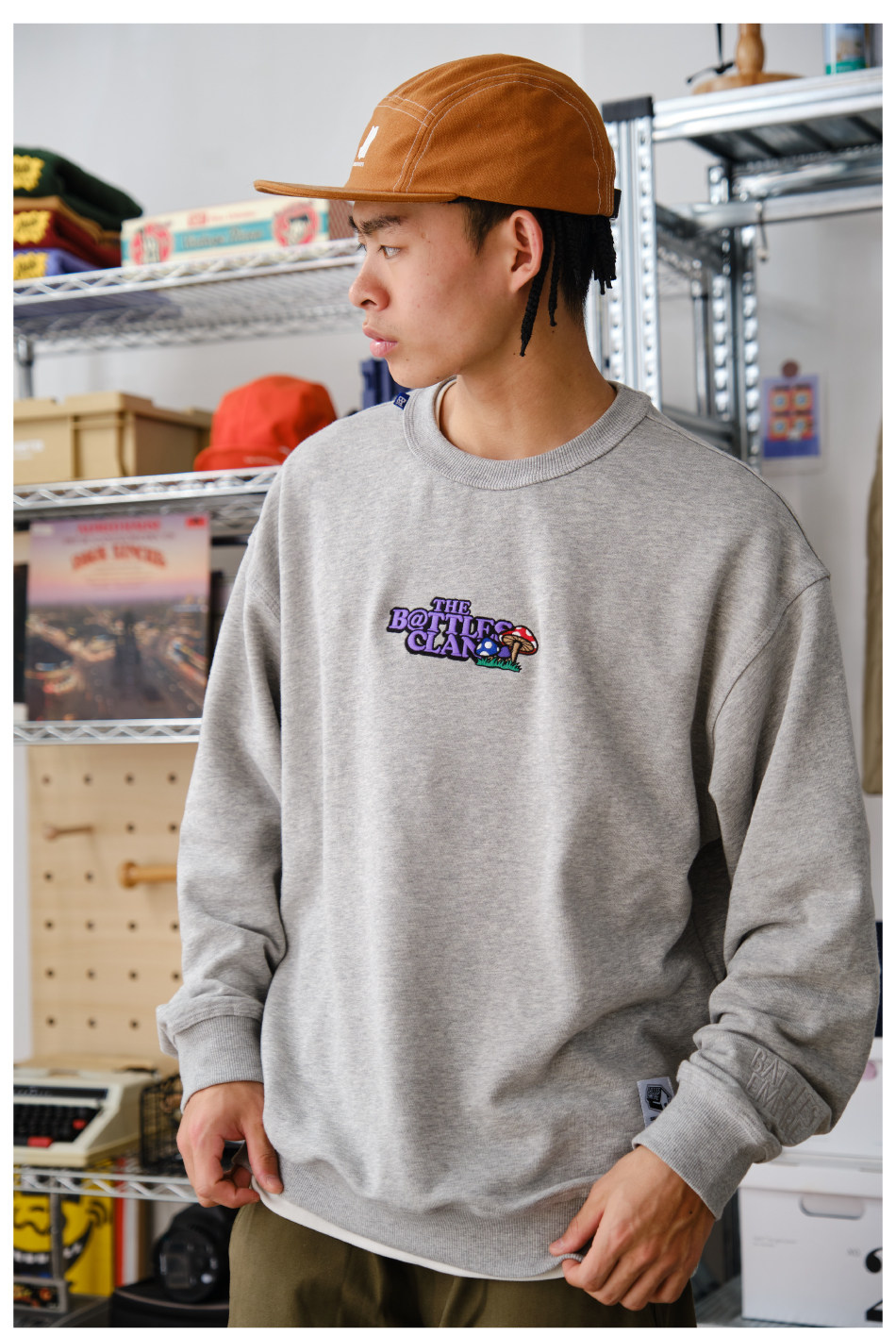 Battles 秋季基礎刺綉重磅毛圈純棉長袖T恤男女薄款衛衣套頭寬鬆